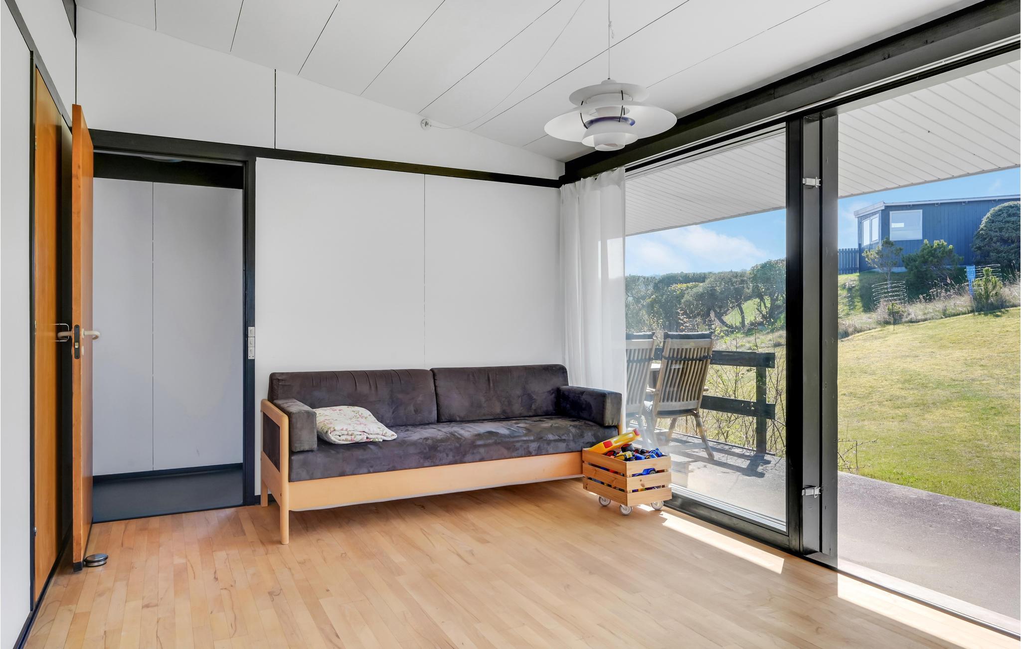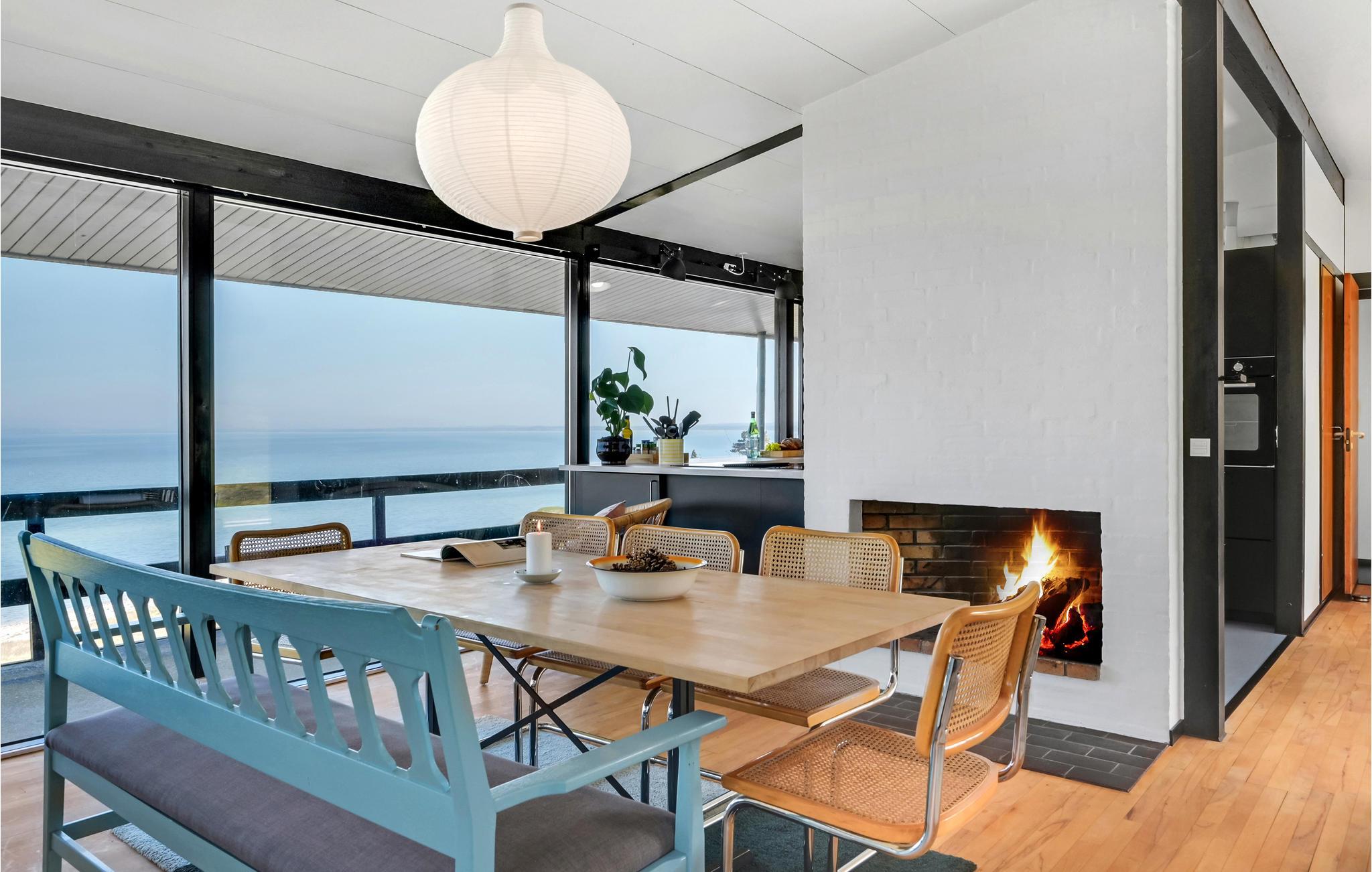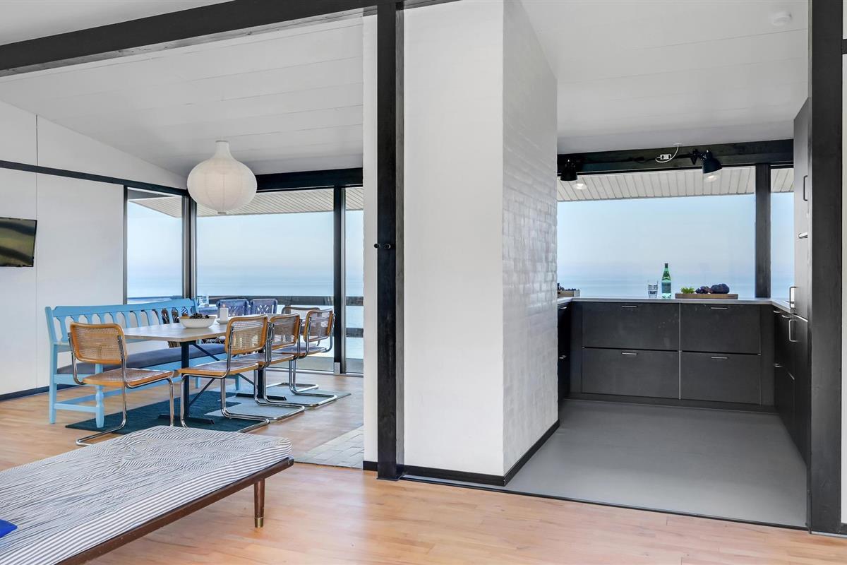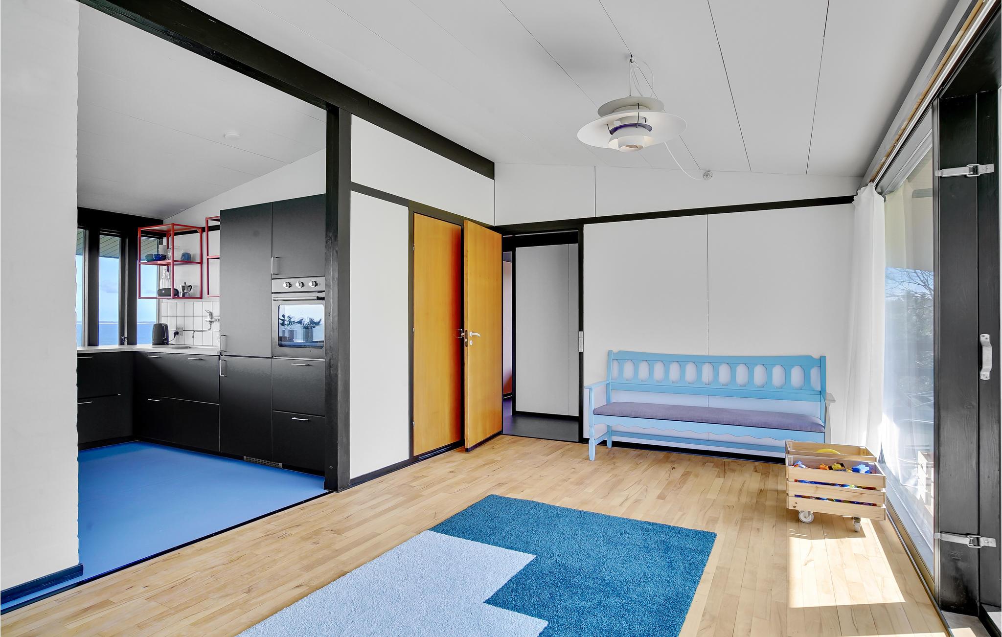 Dit onder architectuur gebouwde vakantiehuis uit de jaren '70 wacht op zijn gasten op een 3000 m² groot perceel dat afloopt naar het strand. In de woonkamer met ramen van vloer tot plafond kunt u genieten van een adembenemend panoramisch uitzicht, en ook het uitzicht vanuit de ramen van de gedeeltelijk open keuken is fantastisch. Een trap leidt naar het huis.