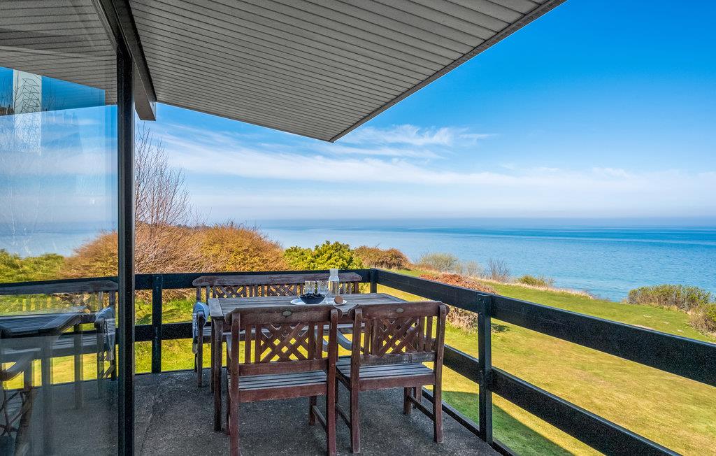 Hooggelegen vakantiehuis met panoramisch uitzicht en directe toegang tot het strand.