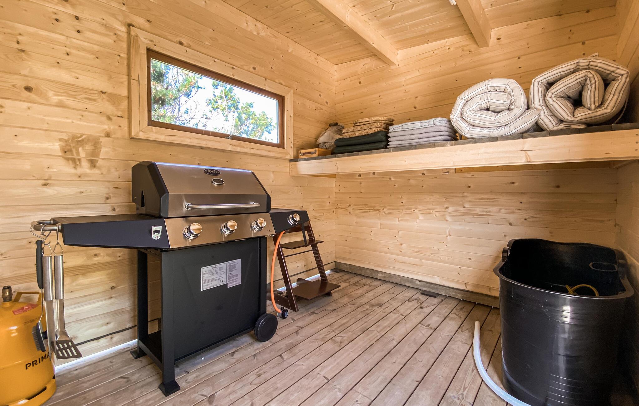 Kijk uit naar een constant panoramisch uitzicht over de baai vanuit dit uitnodigende huis. Het verwelkomt je met een uitgebreide, klassieke inrichting in prachtige kleurencombinaties en biedt je een aangename woonervaring. Je kijkt uit over de boomtoppen naar het water, een landschap om verliefd op te worden. De beste manier om van dit uitzicht te genieten is zittend op het verhoogde terras met een glas van je favoriete drankje in je hand. Je kunt ook genieten van wellnesssessies in de buitensauna op het terras terwijl je geniet van het raam met uitzicht. Daarna biedt de buitendouche in het naburige gebouw je de verfrissing die je nodig hebt. Sluit de avonden af met een barbecue en maak plannen voor je volgende activiteiten.