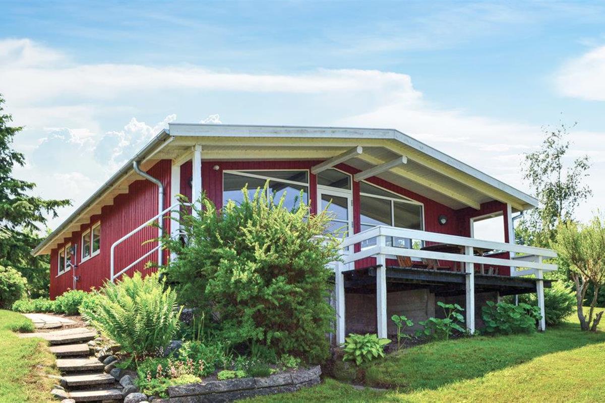 Hoog vakantiehuis met uniek uitzicht op de Sejerø-baai en een overdekt terras in het heuvelachtige Veddinge Bakker.