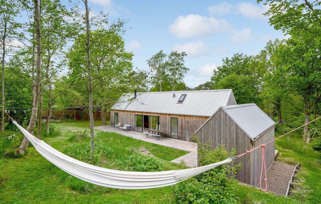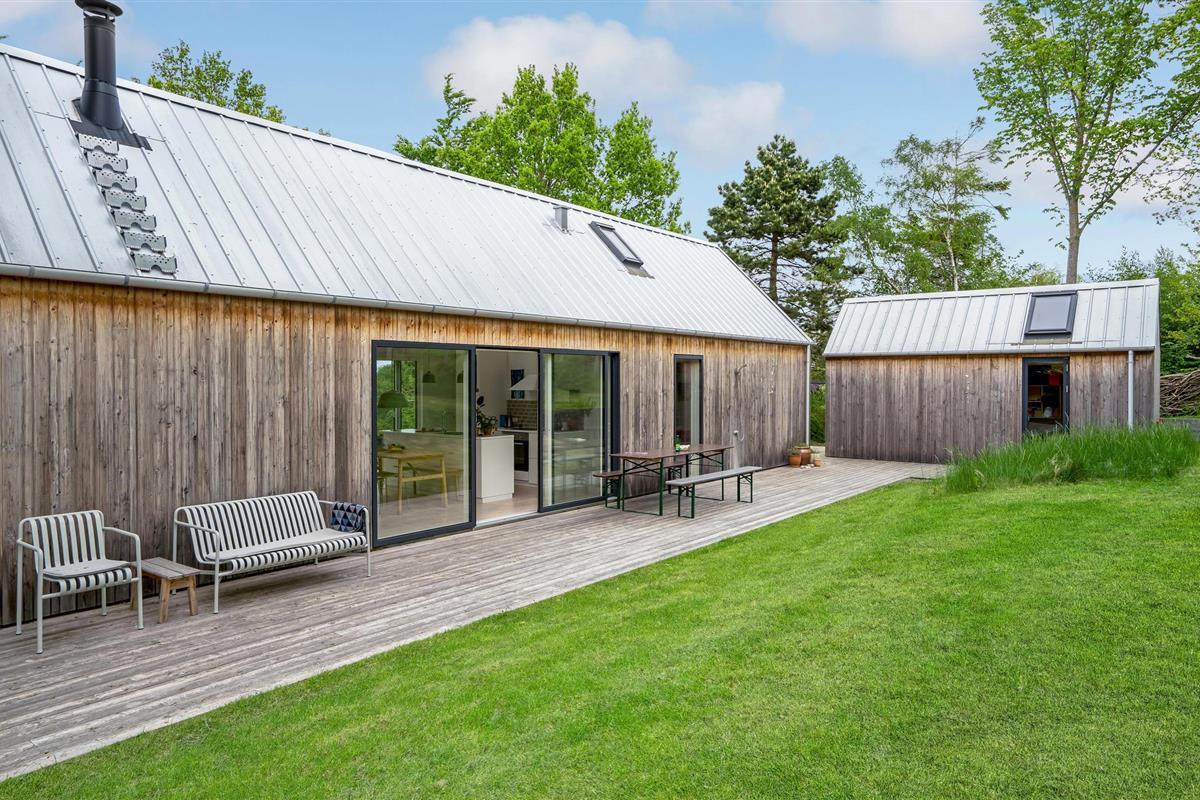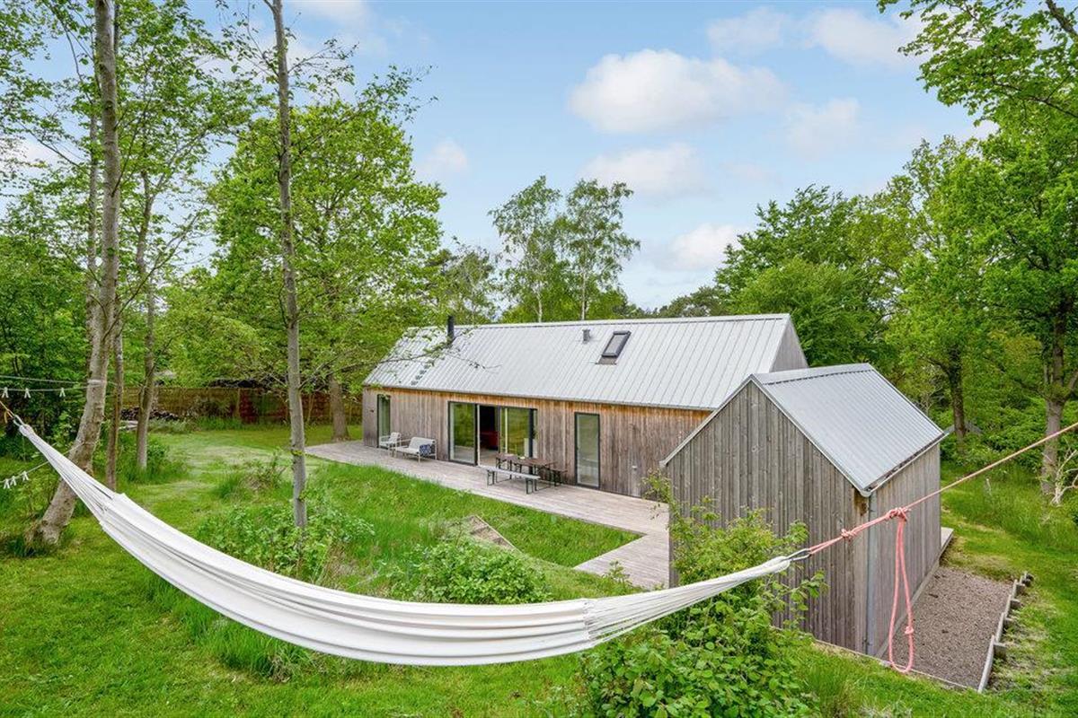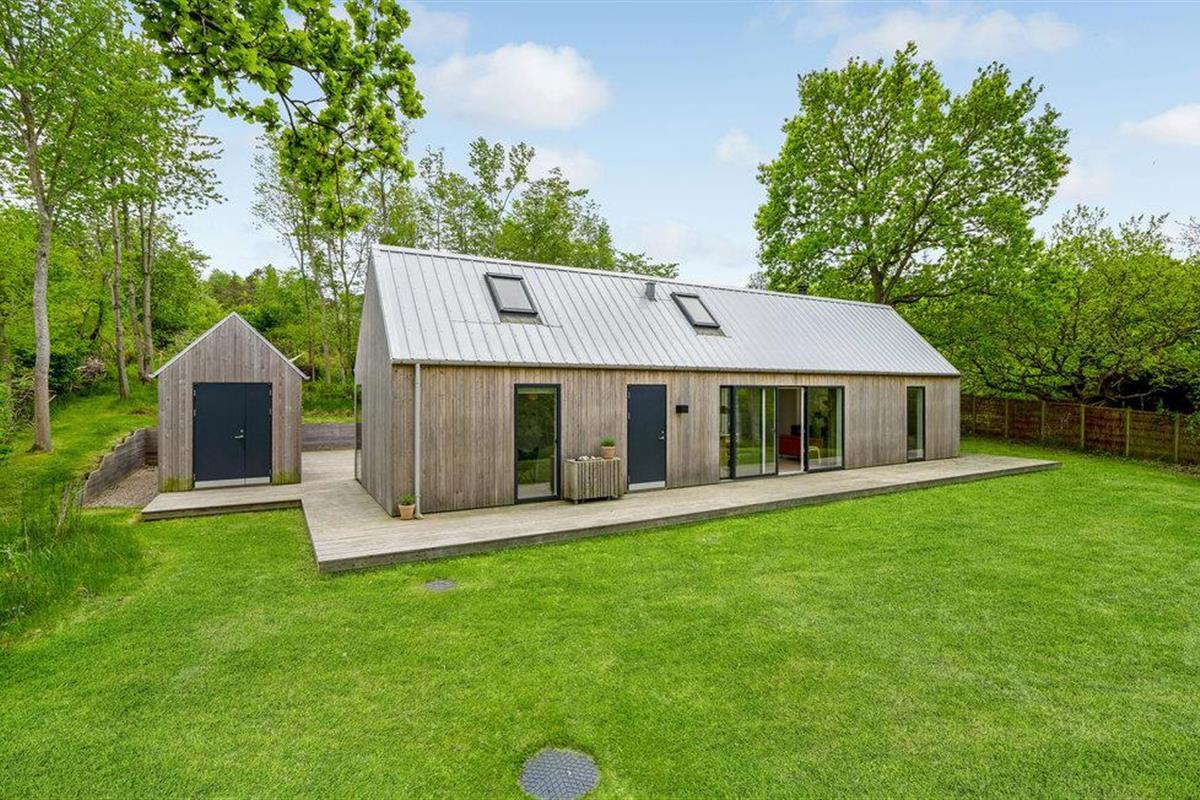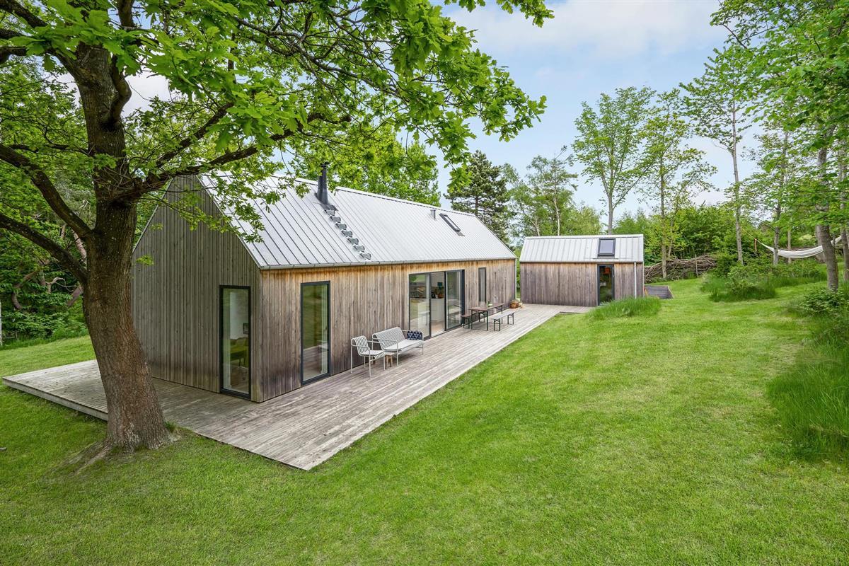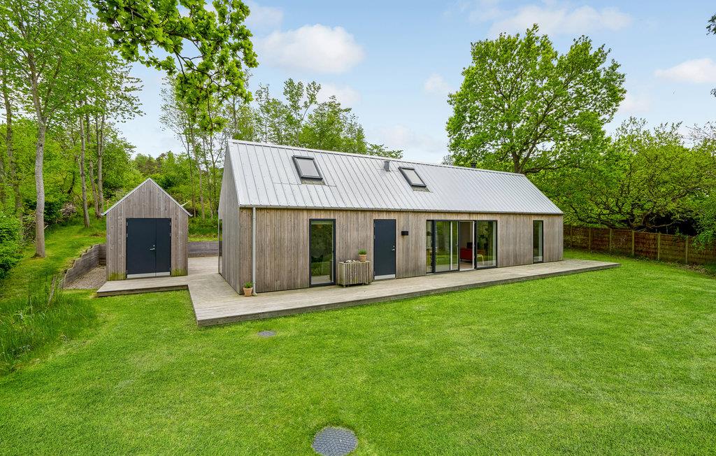Gezellig en energiezuinig houten vakantiehuis nabij het strand in het heuvelachtige Veddinge Bakker, Denemarken.