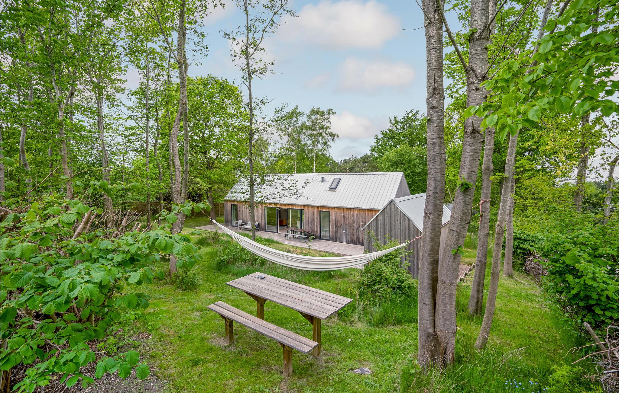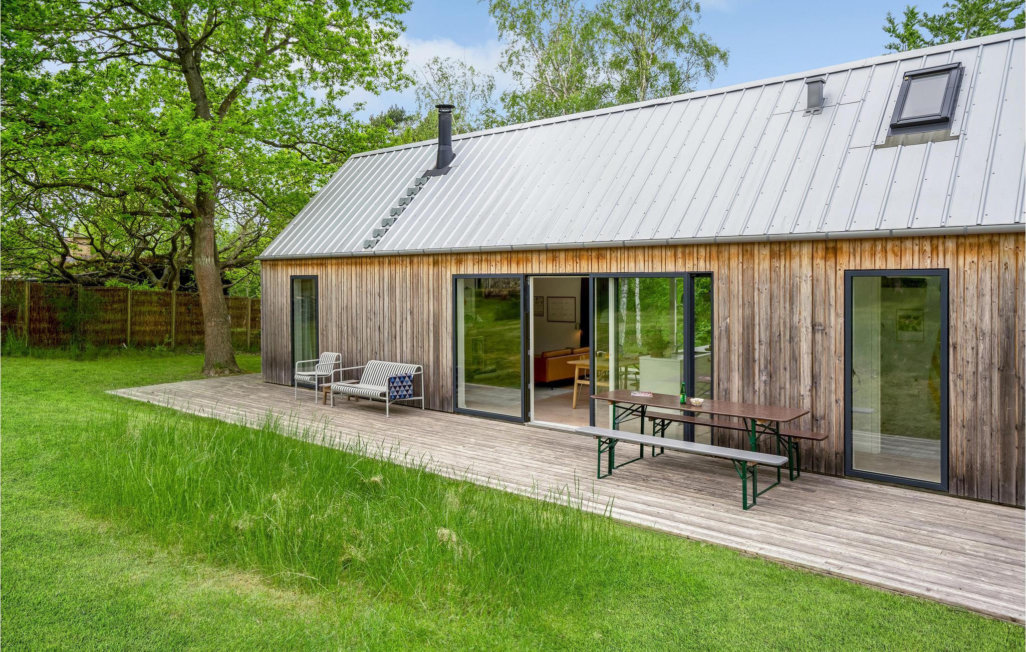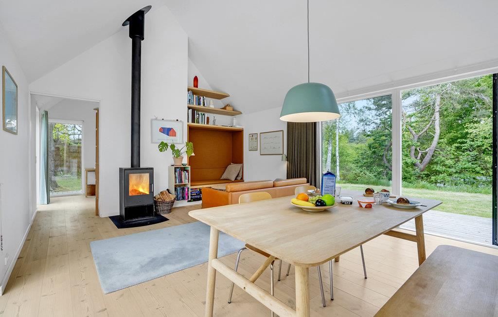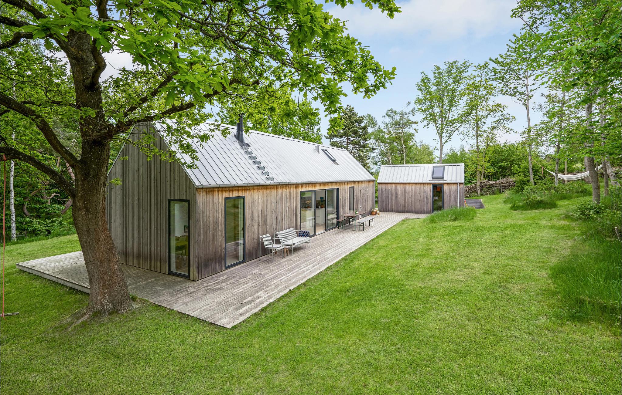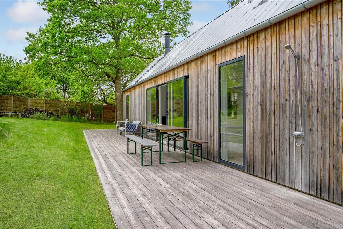Gezellig en energiezuinig houten vakantiehuis nabij het strand in het heuvelachtige Veddinge Bakker, Denemarken.