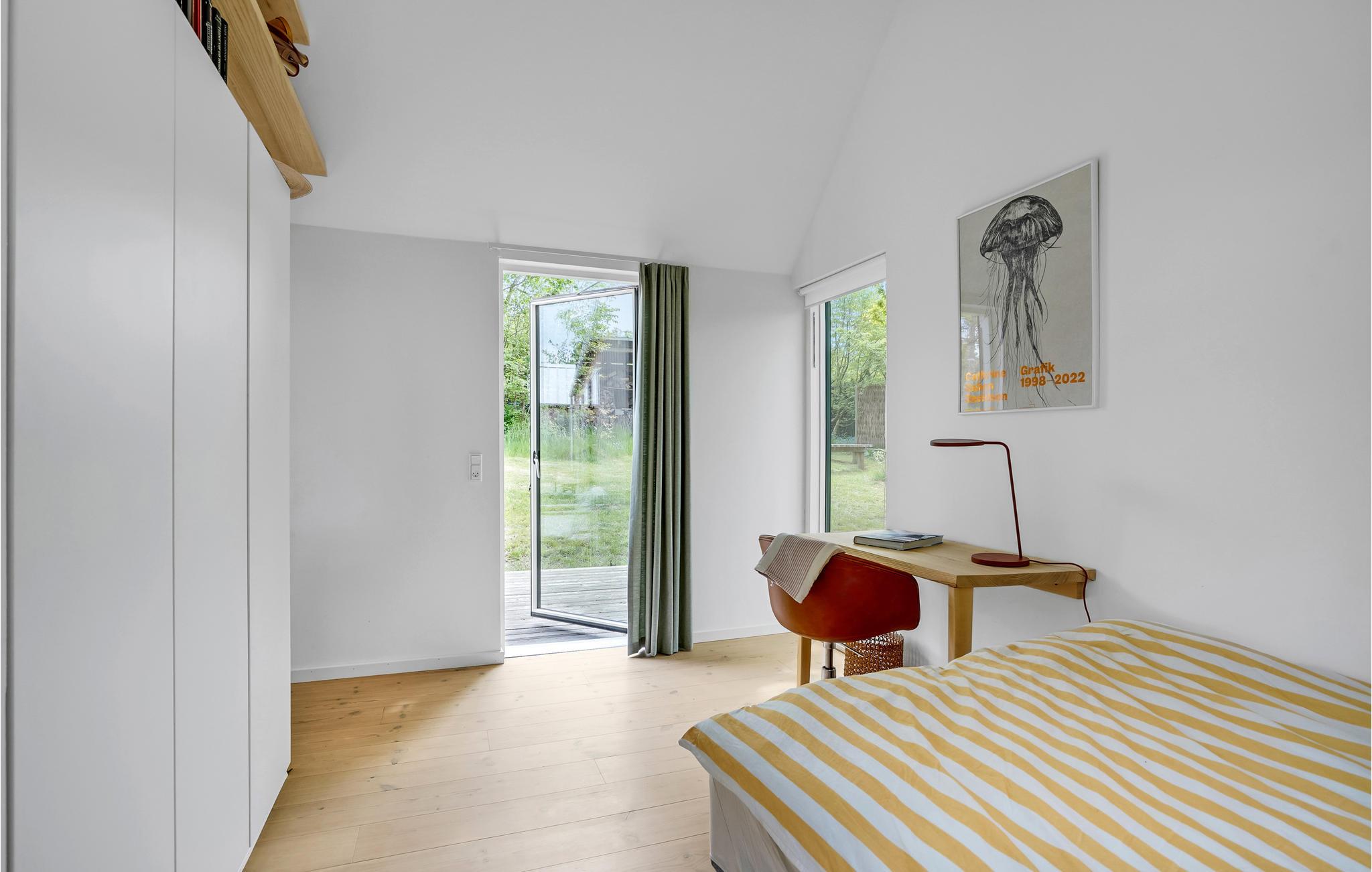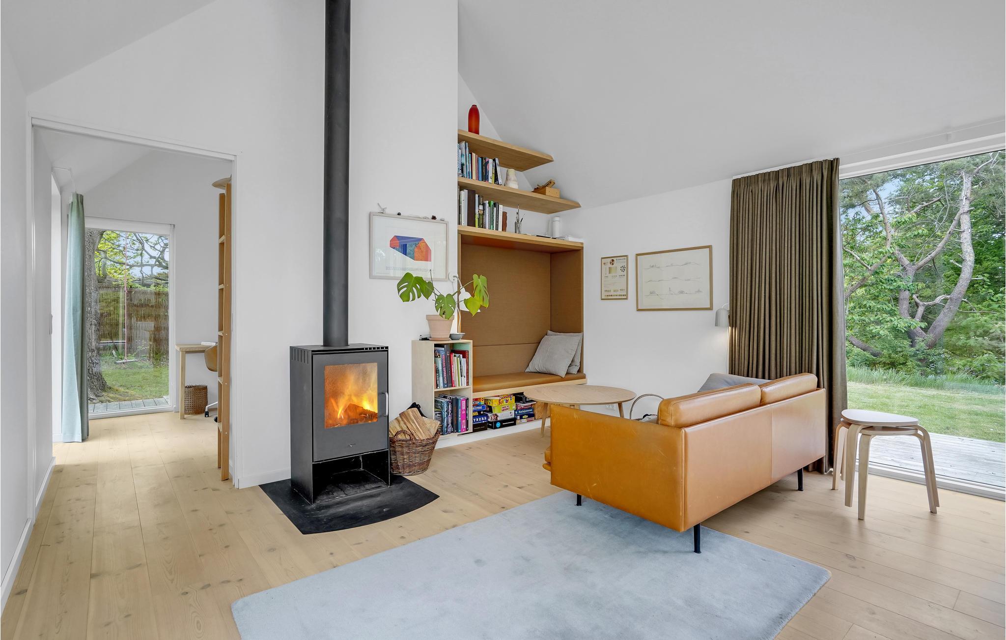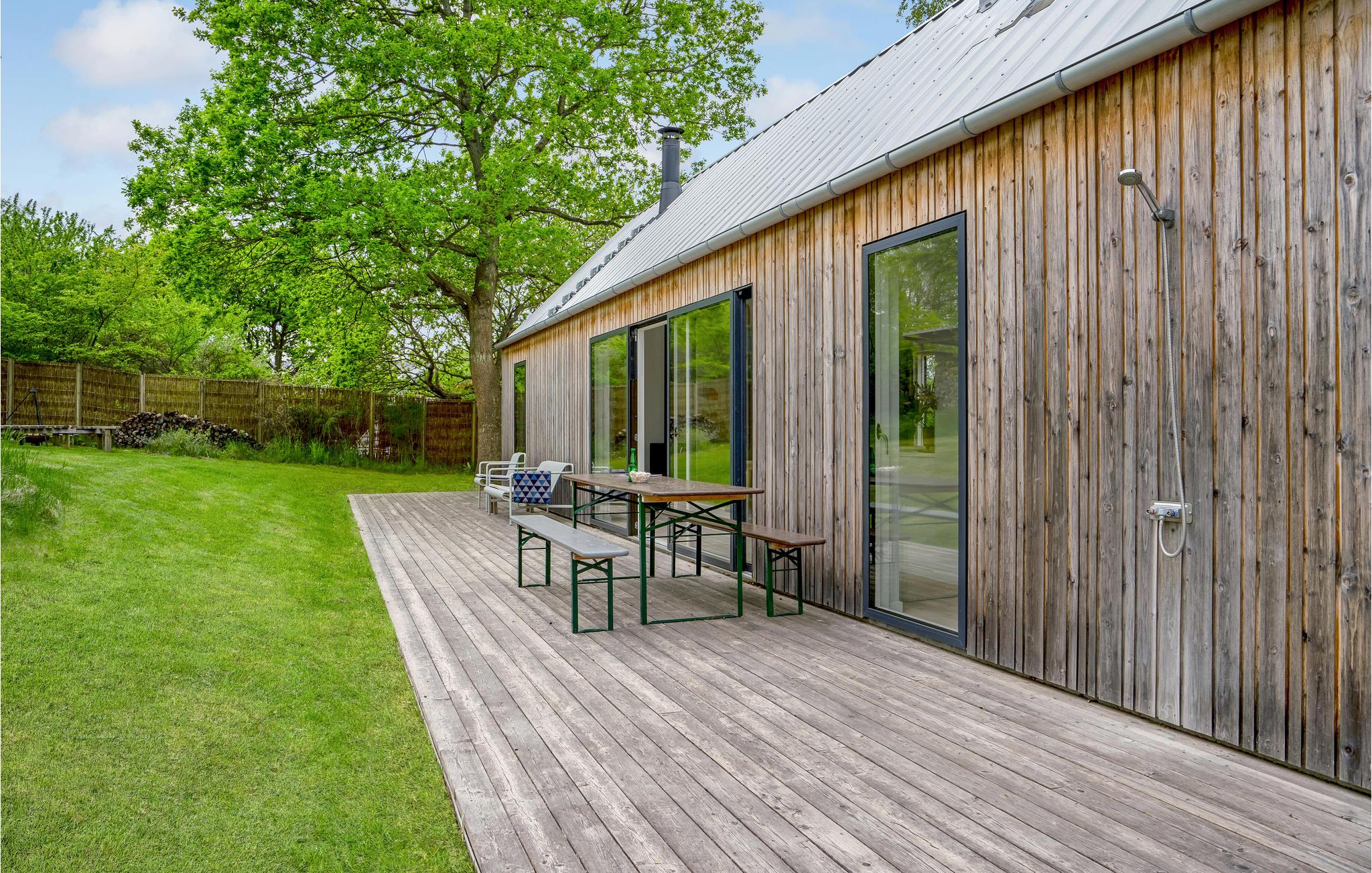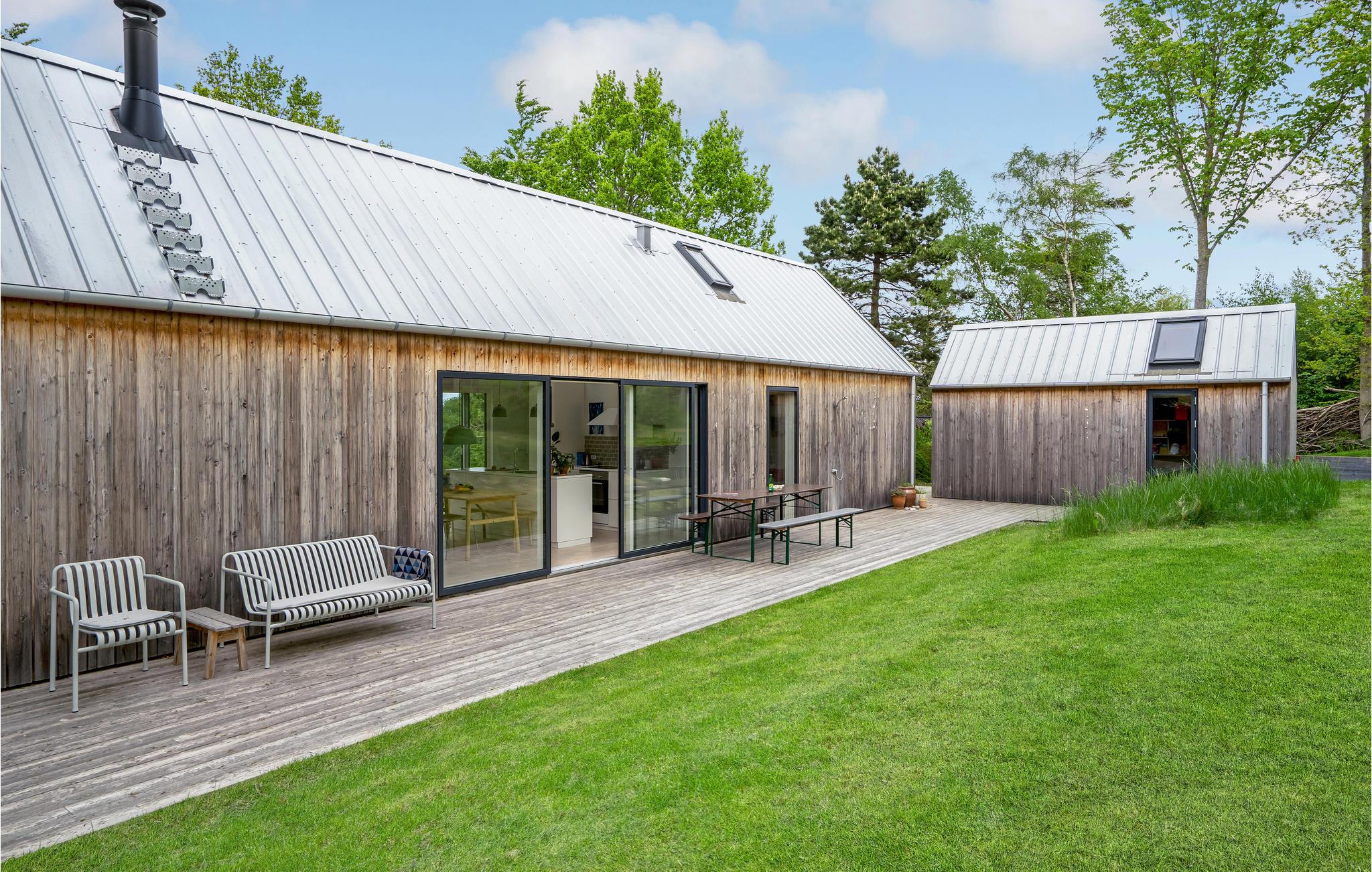 Gezellig en energiezuinig houten vakantiehuis nabij het strand in het heuvelachtige Veddinge Bakker, Denemarken.