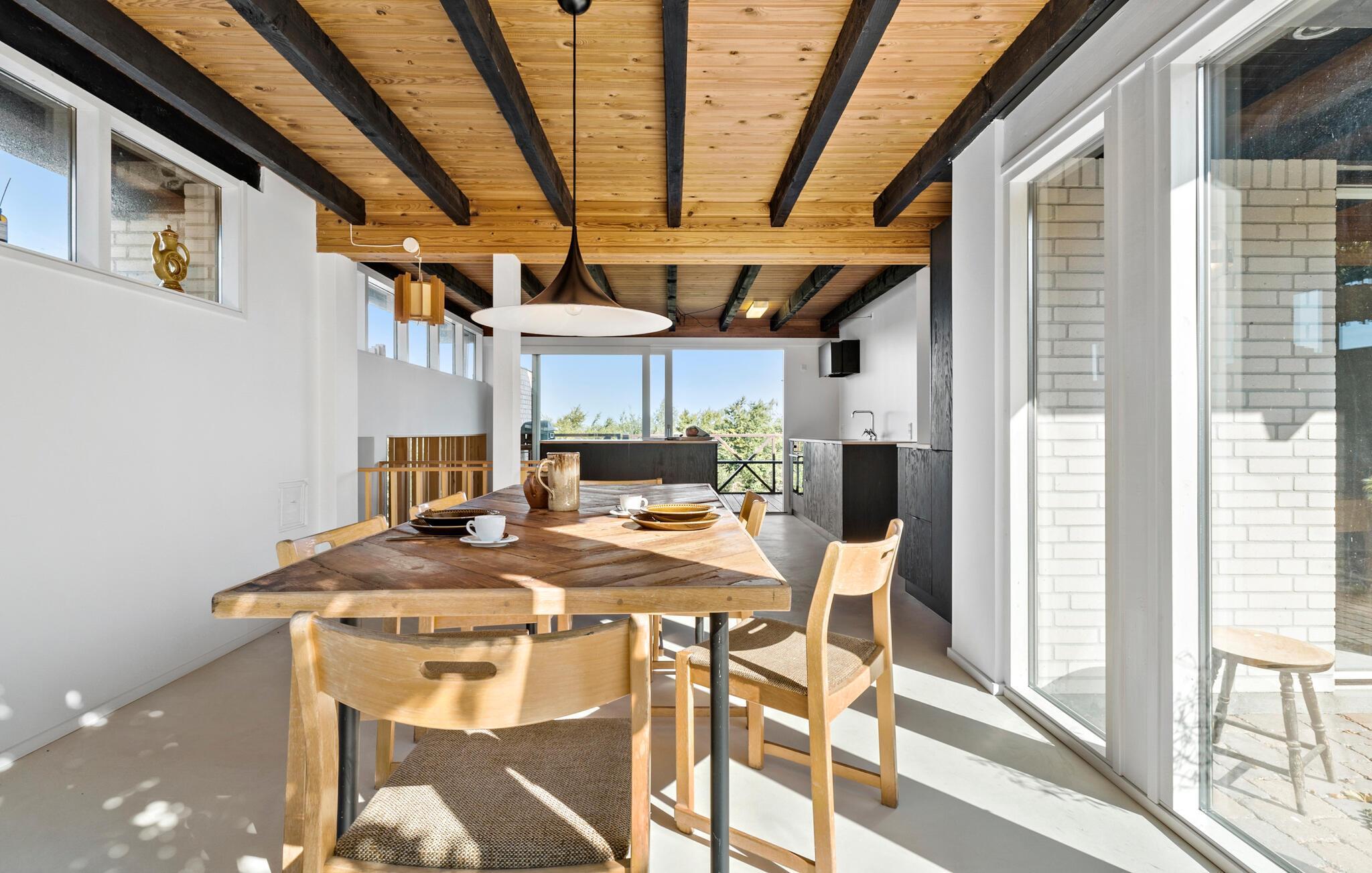 Je mooie vakantiehuis ligt op een heuvel. Dankzij deze verhoogde ligging heb je vanaf je ruime terras een fantastisch uitzicht op het omliggende landschap. En het verleidelijke blauw van de Sejerø-baai glinstert aan de horizon. Het interieur van je vakantiehuis is ook indrukwekkend. De rustieke houten balken aan het plafond creëren een rustieke sfeer die naadloos past bij de verder moderne en stijlvolle uitstraling van het huis.