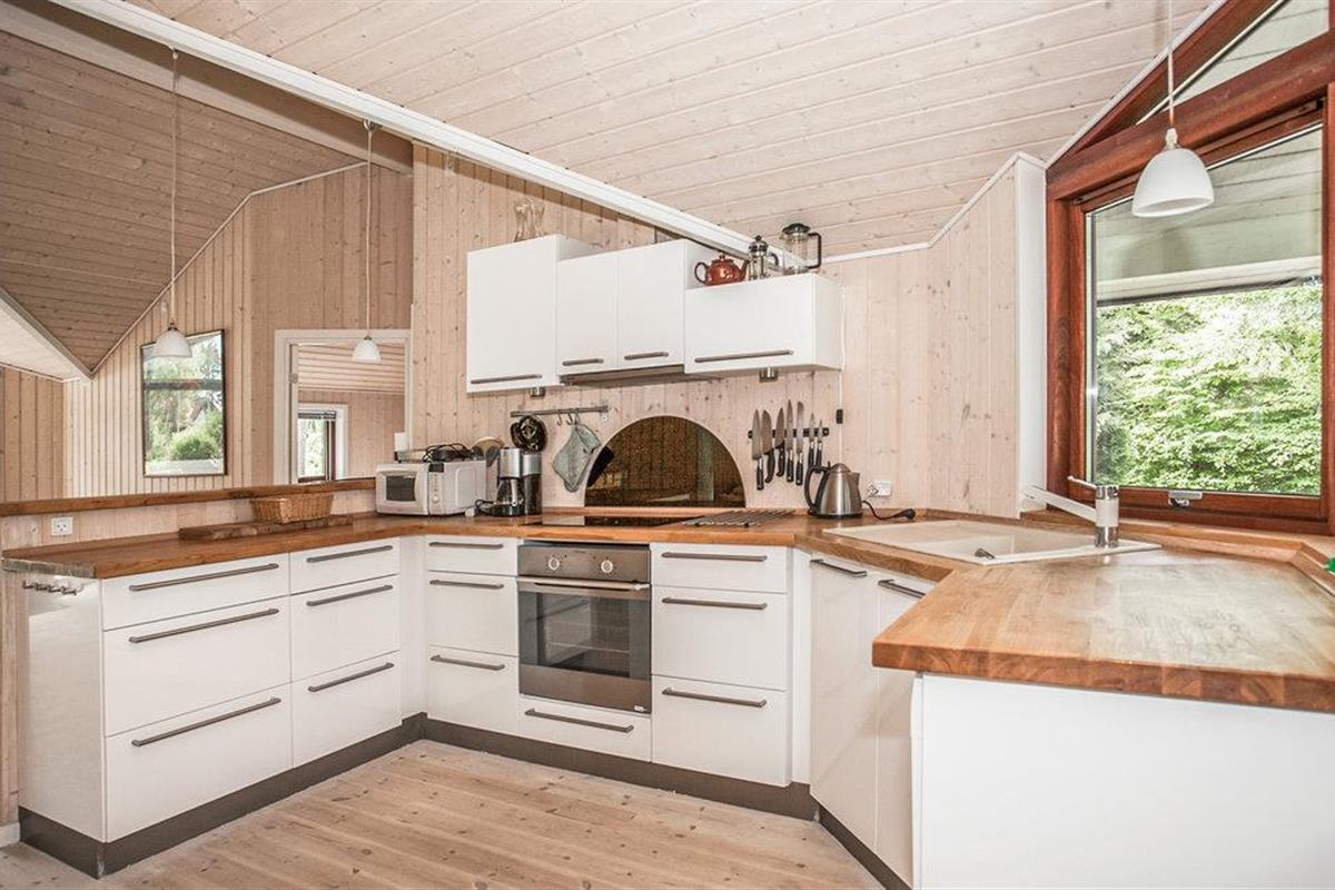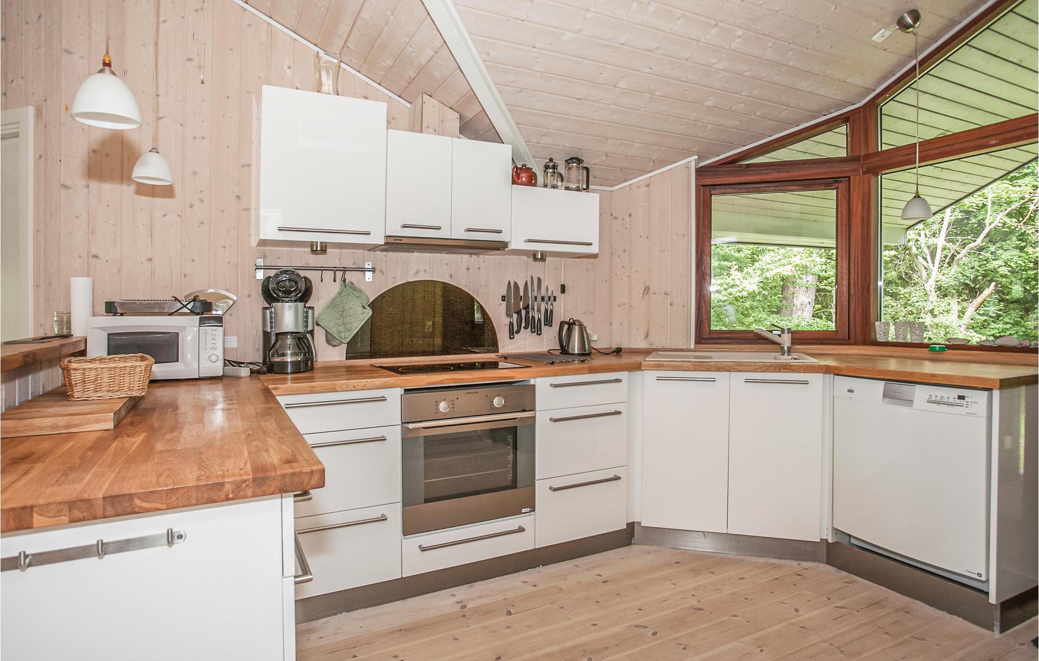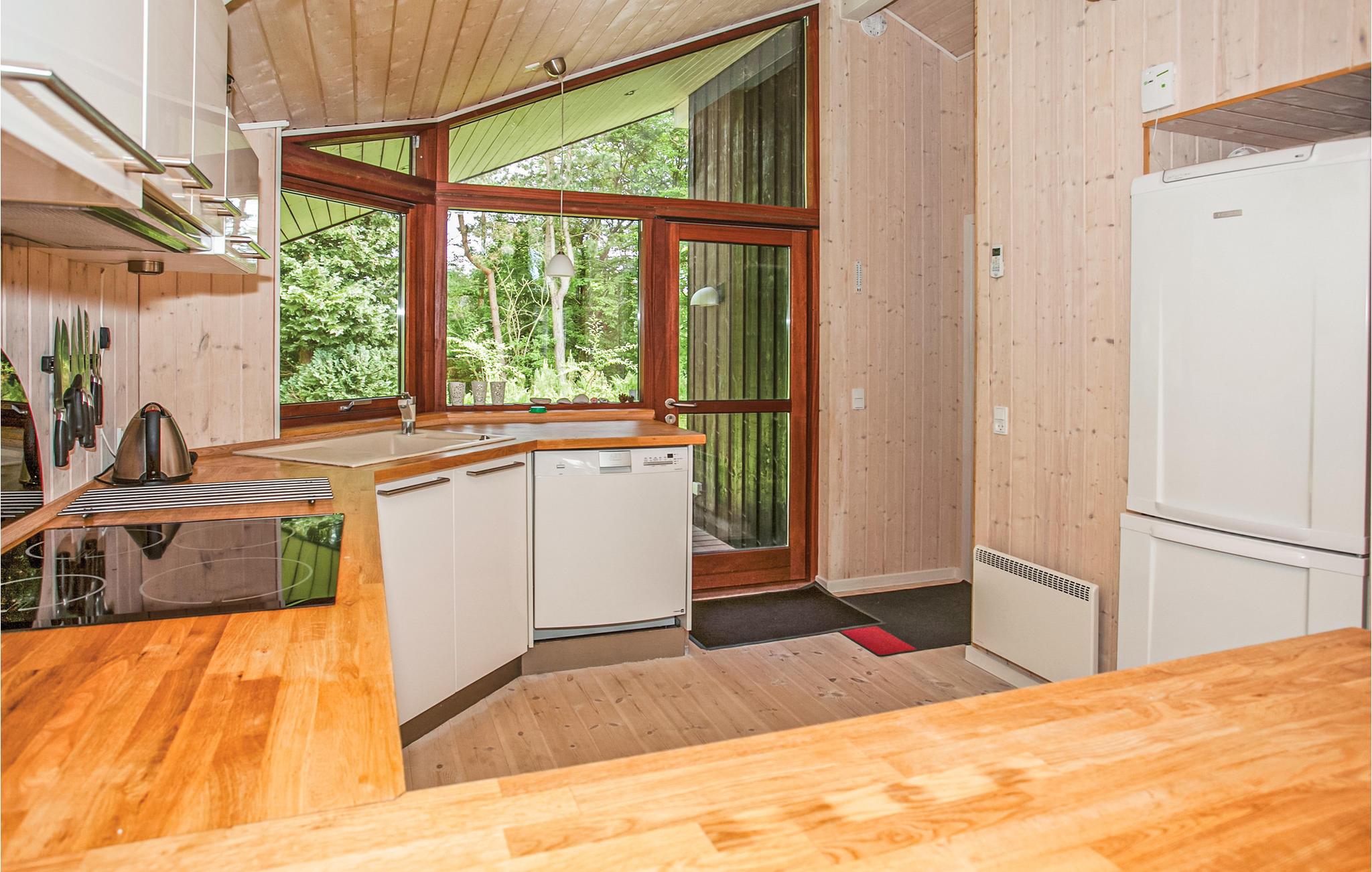 Goed uitgerust vakantiehuis met lichte kamers. Vanaf het gedeeltelijk open terras heb je uitzicht op de baai van Sejerø. U kunt genieten van veel zon en frisse lucht op het terras en 's avonds barbecueën. Je kunt ook proberen zelf gevangen vis te koken terwijl je naar de zonsondergang kijkt. Het huis ligt in het mooie Veddinge Bakker en dicht bij Ordrup met zijn kleine cafés en winkels. Je bent dicht bij het prachtige strand, een 18-holes golfbaan en niet ver van excursiebestemmingen. Bijvoorbeeld het attractiepark Sommerland Sjælland, galerieën en Nykøbing Sjælland. Veddinge Bakker is een uitgestrekt heuvelachtig gebied vlakbij het strand en het bos. Kliffen richting de baai van Sejerø domineren het landschap. Het gebied behoort tot Oddsherred Buerne, een golvend morenelandschap uit de laatste ijstijd. Vanaf de 121 hoge Vejrhøj kun je in totaal 27 kerken zien, waaronder de kathedraal van Roskilde. Er wordt gezegd dat aan de voet van de Vesterhøj onder de berg een draak woont die een gigantische goudschat bewaakt. Op de buitenste top van Ordrup Næ, Næbbet, zijn artefacten uit de steentijd gevonden. In de baai van Sejerø is de kustlijn gevarieerd en gezegend met zandstranden. Veel daarvan zijn kindvriendelijk. Op het schiereiland kun je ook prima fietsen. In het nabijgelegen Ordrup vind je kleine, gezellige cafés en mogelijkheden om te winkelen. Bij Kasteel Dragsholm maakt het restaurant smakelijke gerechten van eigen biologisch geproduceerde ingrediënten. Het attractiepark Sommerland Sjælland, het charmante Rørvig en de galerieën van Nykøbing zijn ook een bezoek waard. Vanuit Havnsø vertrekken veerboten naar de kleine eilanden Sejerø en Nekselø. Op Sejerø vind je prachtige natuur, hunebedden en een kerk met kalkschilderingen, op Nekselø vind je een uniek vogelleven en ook sportvissers kunnen hier uitstekend vissen. Het uitgestrekte heuvelachtige gebied is bebost en heeft steile kliffen tot aan de stranden van de baai Sejerøeran.