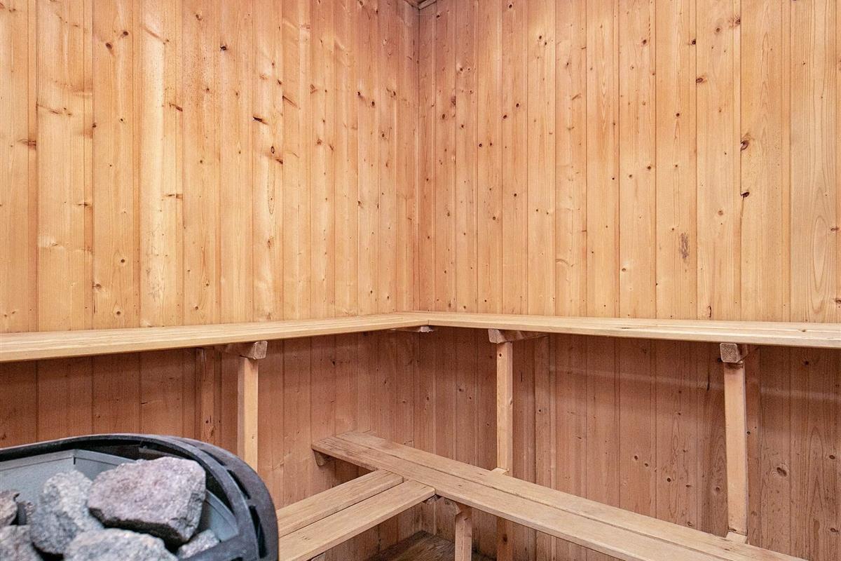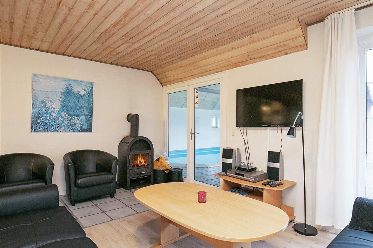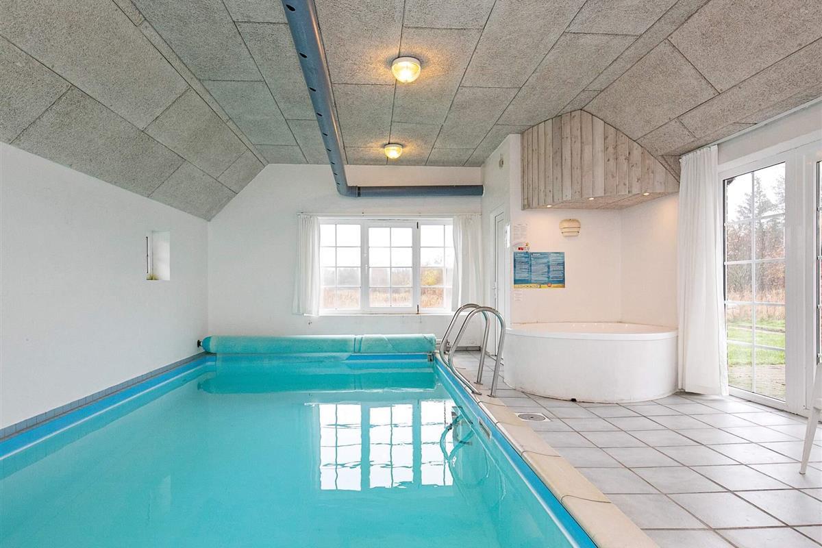 Das Ferienhaus hat einen offenen Küchen-/Wohnbereich für das Familienleben, mit Zugang zum Poolbereich nehenan. Dort gibt es, ganz unabhängig von der Jahreszeit, großen Badespaß für Groß und Klein. Zum Relaxen stehen auch ein Whirlpool für zwei Personen sowie eine Sauna und eine Dusche bereit. Das Wasser im Pool wird über eine energieeffiziente Luft-Wasser-Wärmepumpe kostengünstig erwärmt.