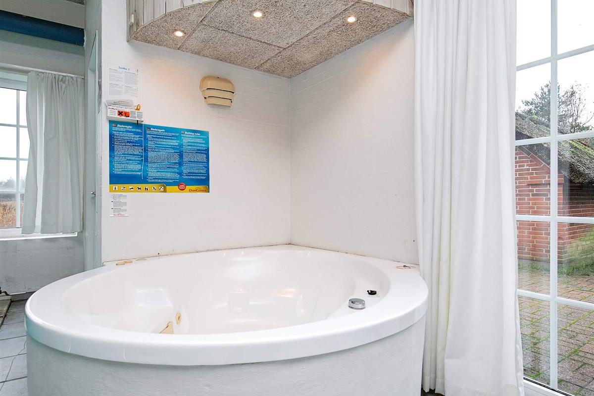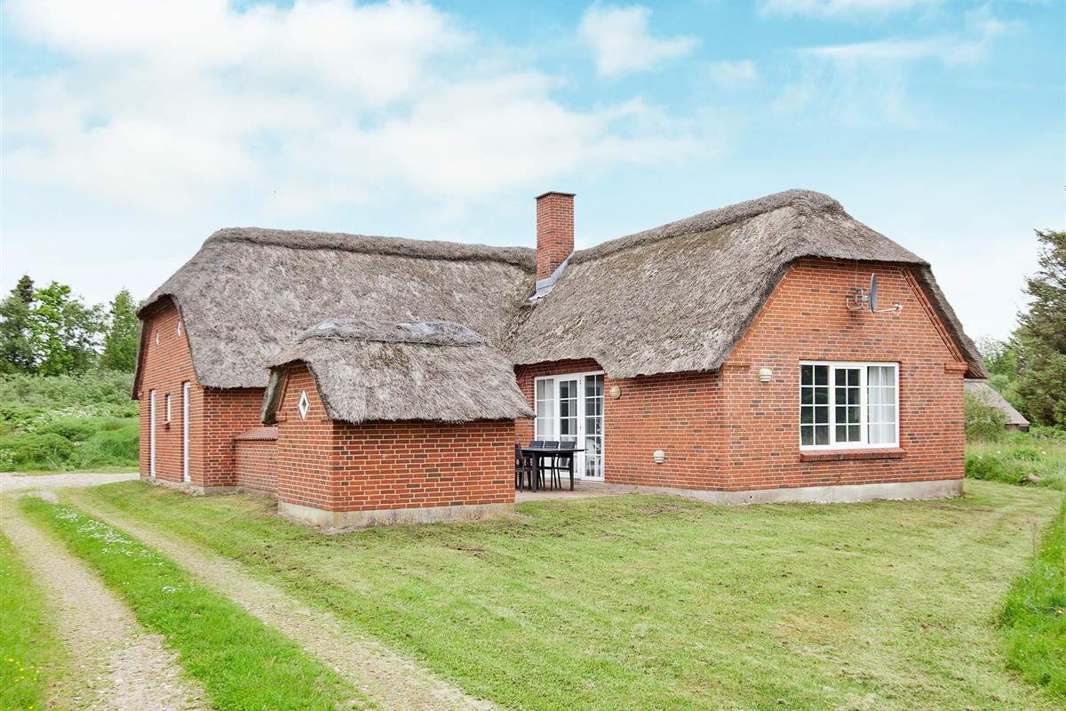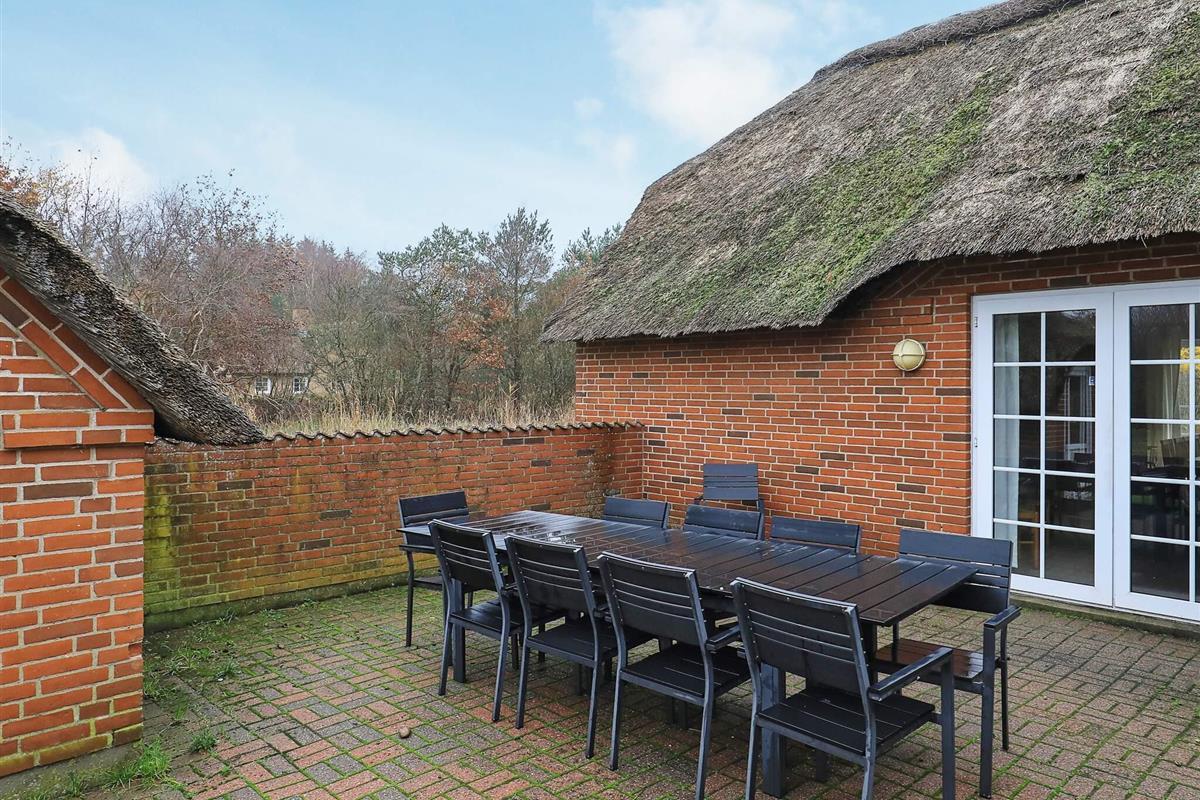 Geräumiges Ferienhaus, aus Ziegelsteinen und mit Reetdach erbaut sowie mit Pool, Whirlpool und Sauna ausgestattet. Liegt im familienfreundlichen Ferienhausgebiet von Vedersø Klit, auf einem 5.500 m² gr. Naturgrundstück mit Rasenfläche für Spiel und Spaß im Freien. Der Baustil des Hauses ist für diese Gegend ganz typisch. Die massiven Ferienhäuser aus Stein halten Wind und Wetter Stand und sind so ganzjährig nutzbar.