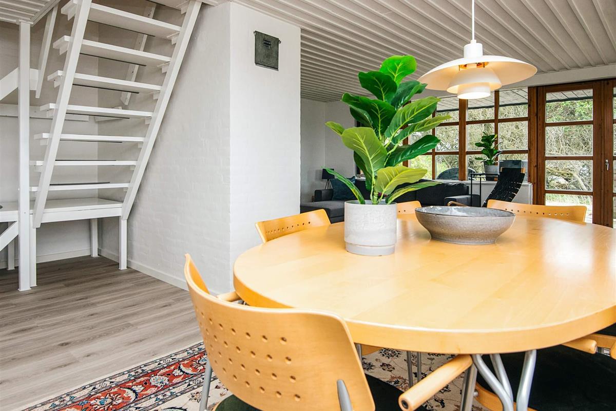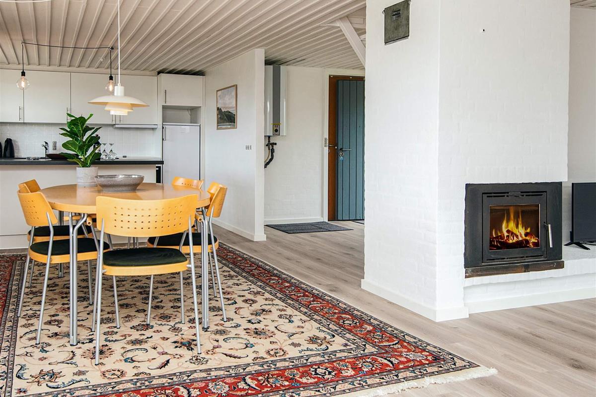 Die Terrasse bietet Blick auf einen schönen Gartenbereich, ideal für Kinder zum sicheren Spielen oder für Erwachsene zum Entspannen mit einem Buch oder einer Tasse Kaffee am Morgen. Vedersø ist nur 50 Meter entfernt und bietet ein Restaurant für bequemes Essen und eine Ladestation für Elektroautos.