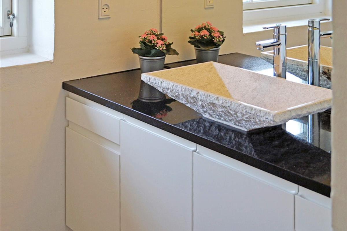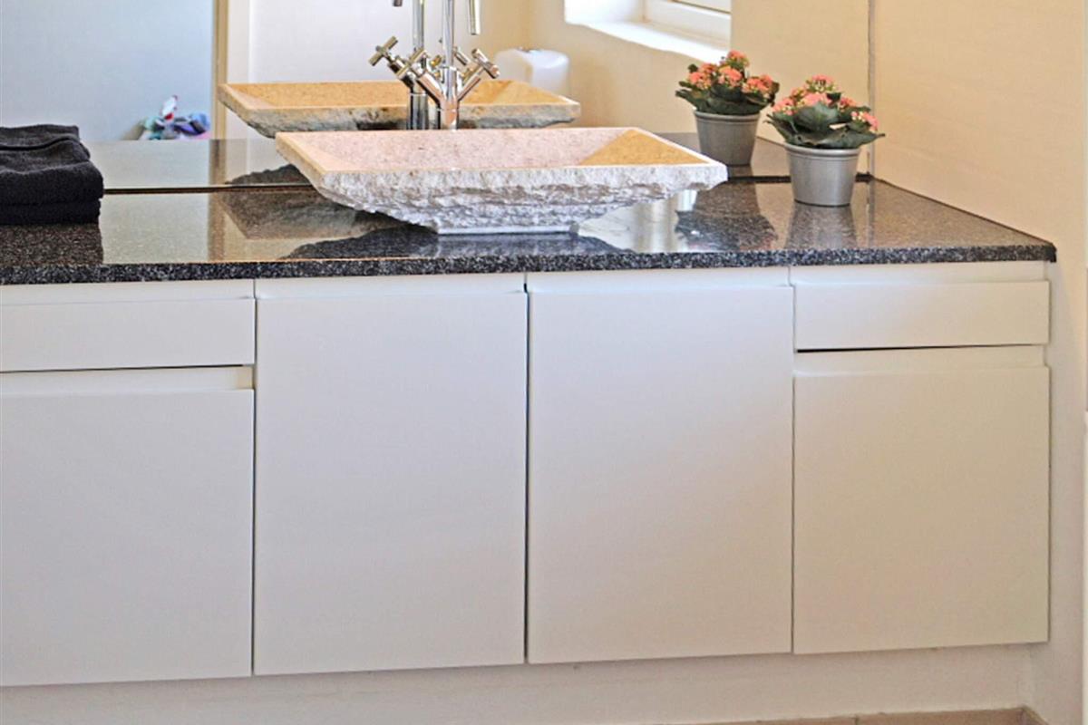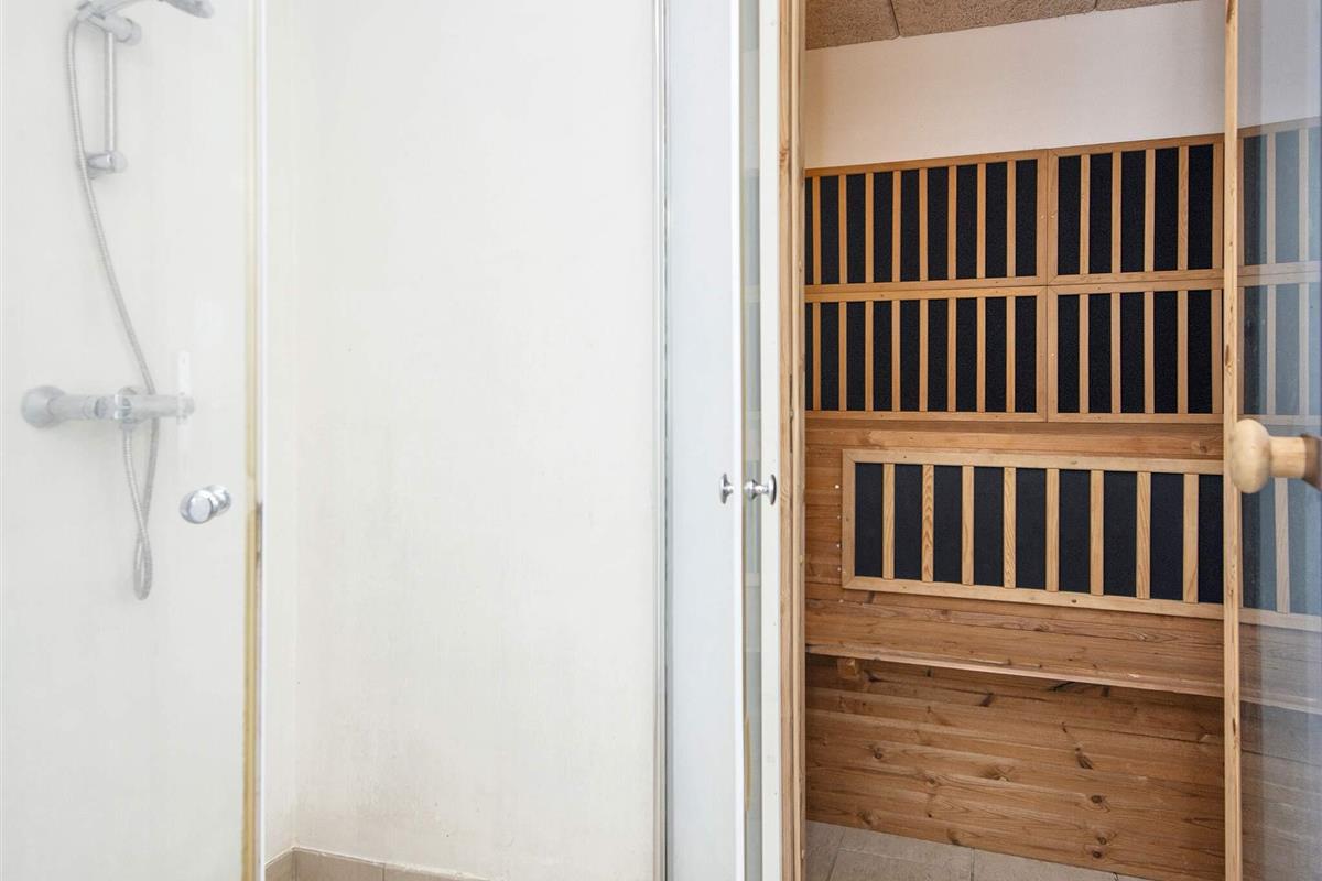 Im Poolhaus gibt es 3 Badezimmer mit Toilette, Waschbecken, Dusche und Fußbodenheizung. Erdwärmeheizung heizt das Haus. Das Poolhaus bietet Schlafplätze für max. 18 Personen: 4 Zimmer mit Doppelbett, 2 Zimmer mit je 4 Kojen in Etagenbetten und 1 Zimmer mit 2 Einzelbetten.