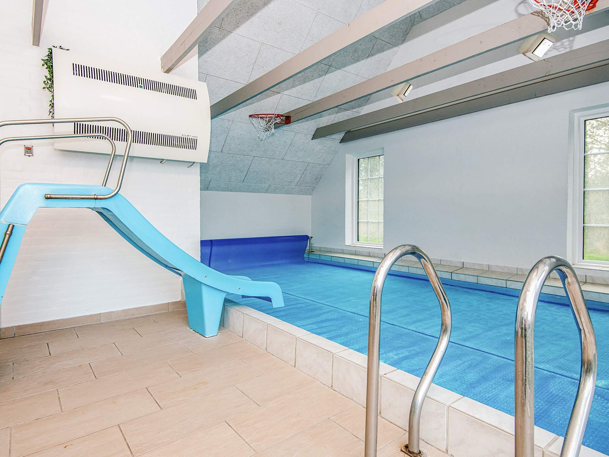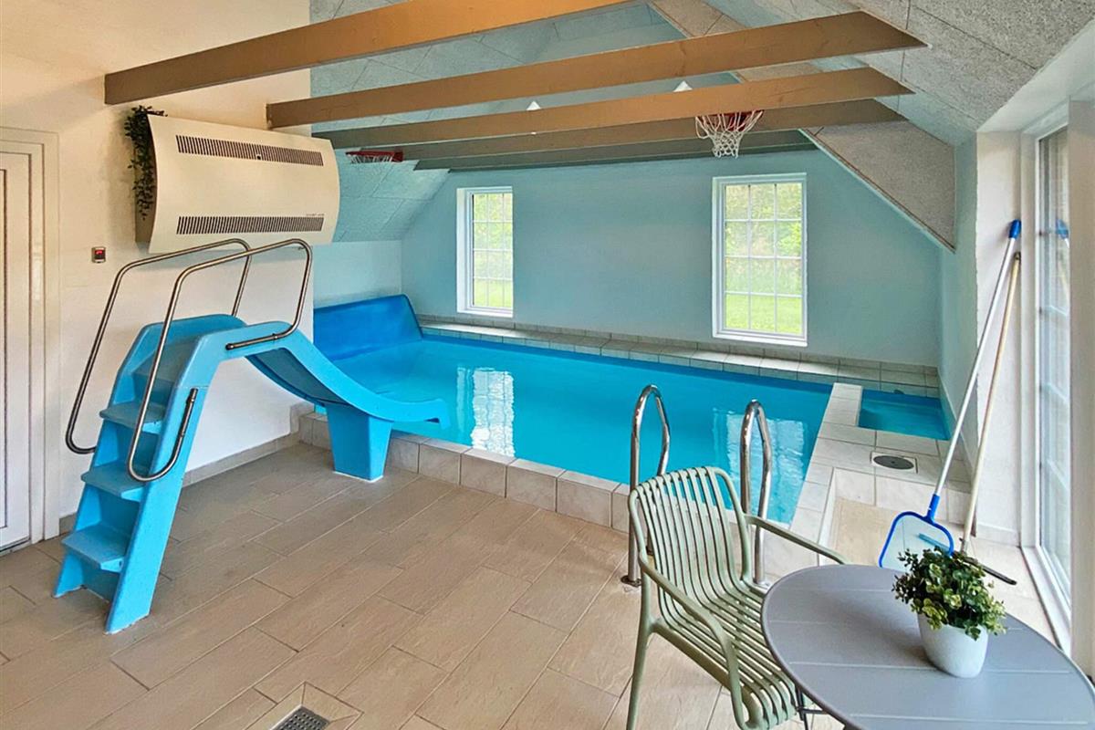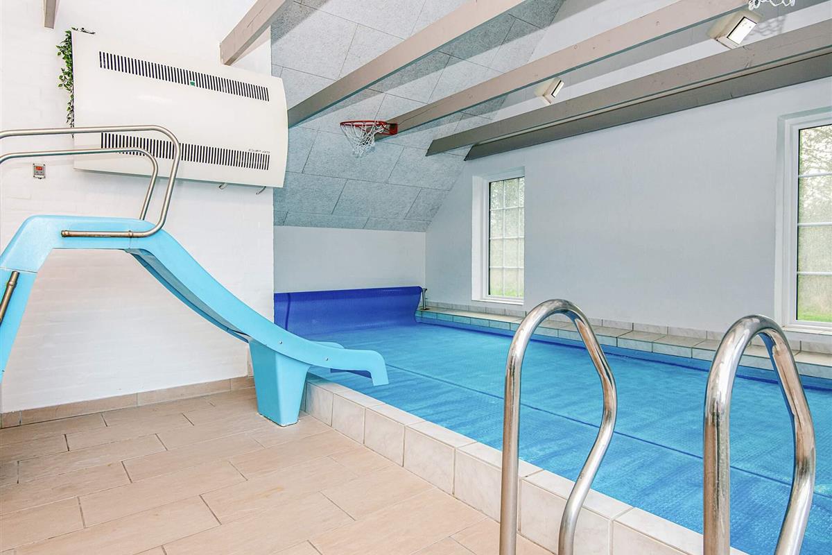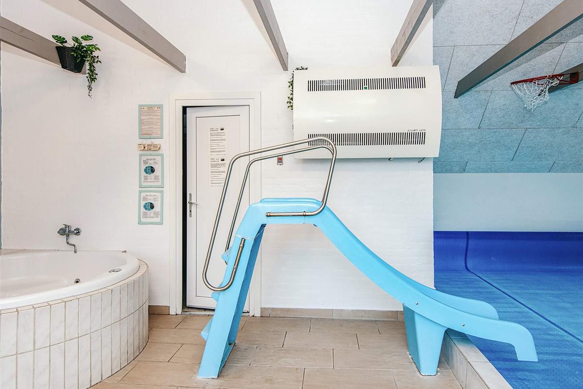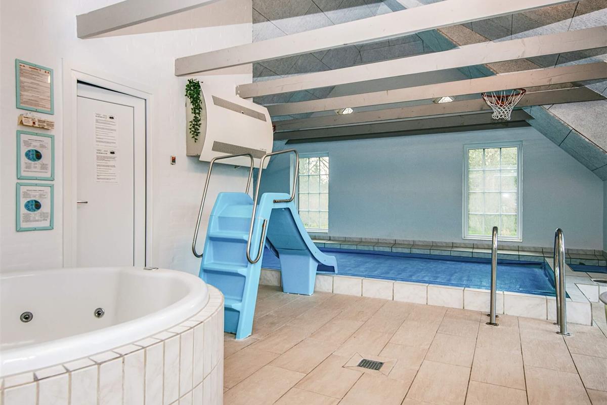 Im herrlichen Poolraum vergnügt sich die ganze Familie im 19 m² großen Pool mit kleinem Kinderbecken, auf der Wasserrutsche oder im großen Whirlpool für 4 Personen. Auf der Terrasse gibt es sowohl einen Grill als auch Gartenmöbel für einen schönen sonnigen Urlaub und für die Kinder gibt es Fußballtore, Schaukeln und einen Sandkasten.