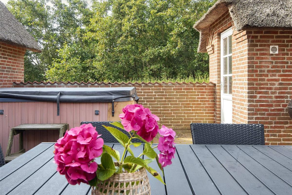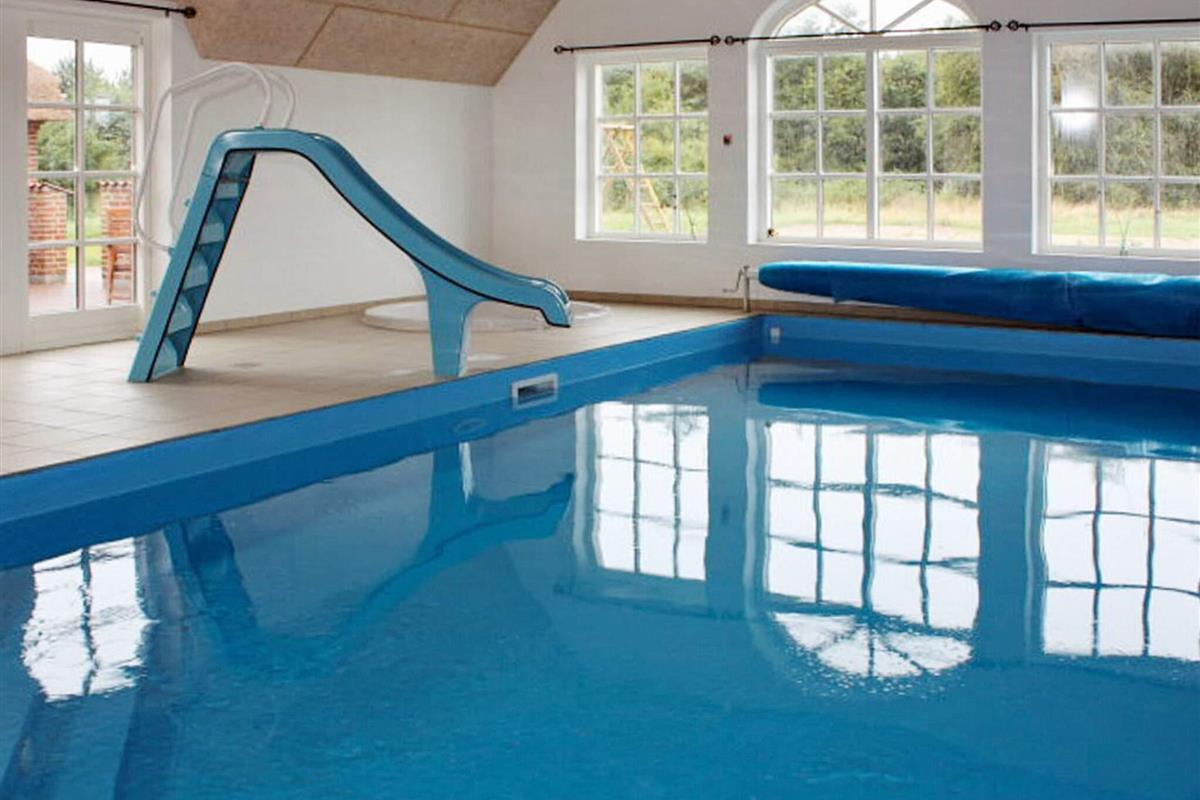Dieses gemütliche, 250 m² große Poolhaus liegt auf einem 3500 m² großen Naturgrundstück mit einem Whirlpool im Freien, Schaukeln und einem Sandkasten für die Kinder. Das Haus wurde 2009 erbaut und liegt ca. 2 km vom rauschenden Nordseeufer entfernt. Im herrlichen Poolbereich kann sich die ganze Familie im großen Pool, auf der Wasserrutsche oder im versenkten Whirlpool vergnügen. Auf der Terrasse steht ein großer Whirlpool für 7 Personen, der das ganze Jahr über genutzt werden kann. Auf der geschlossenen Terrasse befinden sich Gartenmöbel und ein Grill. Das Luxushaus verfügt über 3 Badezimmer mit Toilette, Waschbecken, Duschkabine und Fußbodenheizung. Eine Wärmepumpe und der gemütliche Pelletofen heizen das Haus. Im Poolhaus gibt es 18 Schlafplätze: 4 Zimmer mit Doppelbetten, 2 Zimmer mit jeweils 4 Etagenbetten, 1 Zimmer mit 2 Einzelbetten. 2 Haustiere sind erlaubt. RAUCHEN IST NICHT ERLAUBT Es gibt keinen TV2-Kanal und keine Pay-TV-Kanäle im Haus.