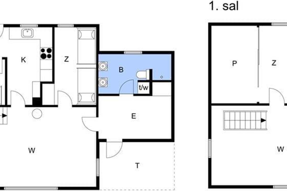 Vom Wohnraum führt dich eine Treppe hinauf ins Obergeschoss, in dem hohe, schräge Decken für eine luftige, helle Atmosphäre sorgen. Das Obergeschoss umfasst einen geräumigen Schlafraum und einen angrenzenden Wohnraum, der mit einem reizvollen Ausblick über die hügelige Dünenlandschaft zu verzaubern weiß.