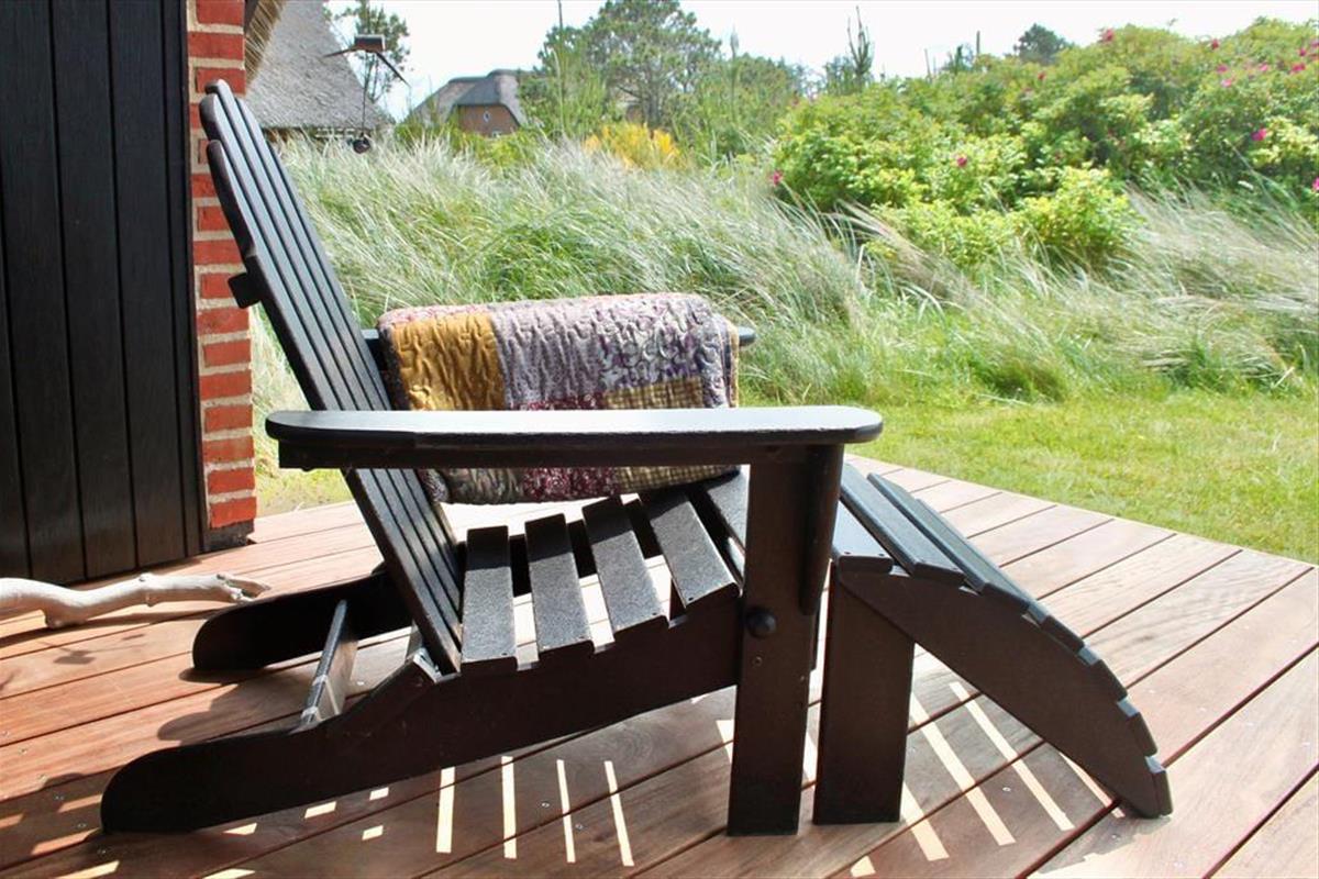 Sie wohnen auf einem leicht kupierten Naturgrundstück, das schön mit dem roten Ziegelsteinen, dem Reetdach und den schwarz gestrichenen Fenstern des Hauses harmoniert. Rund um das Haus gibt es mehrere gemütliche Eckchen und gute Terrassen, die sich gen Süden und Osten an das Urlaubsdomizil schmiegen. Im Schuppen bietet sich angenehm viel Platz zum Unterstellen Ihrer mitgebrachten Fahrräder.