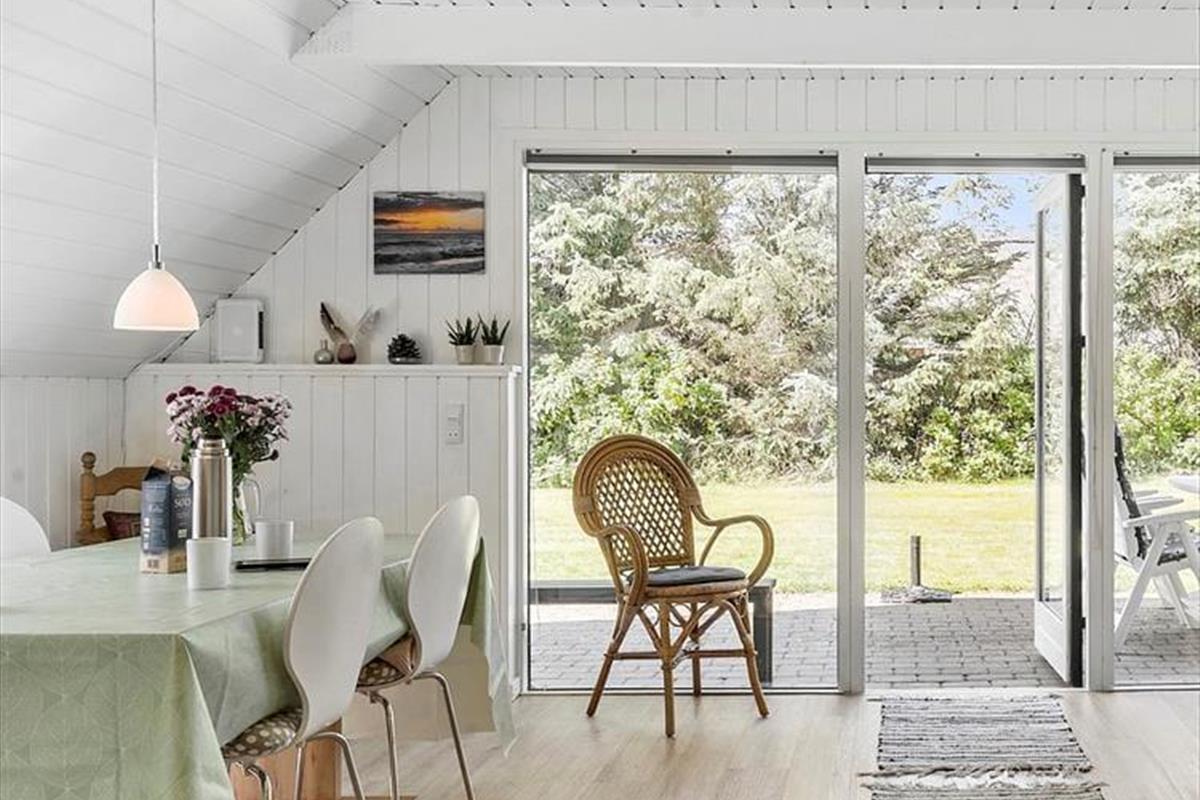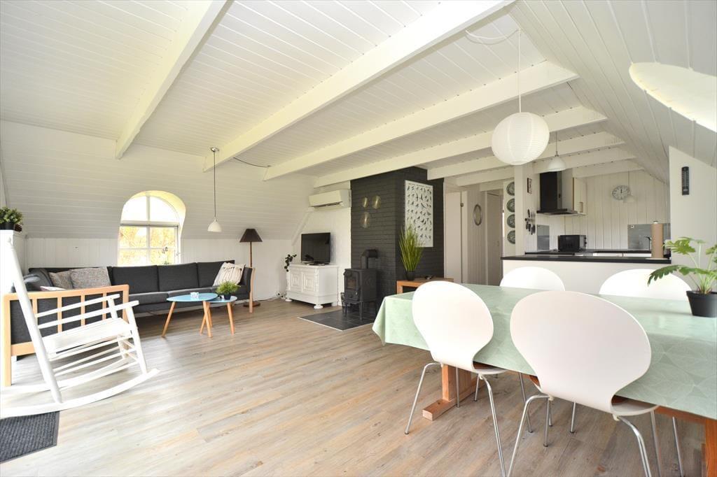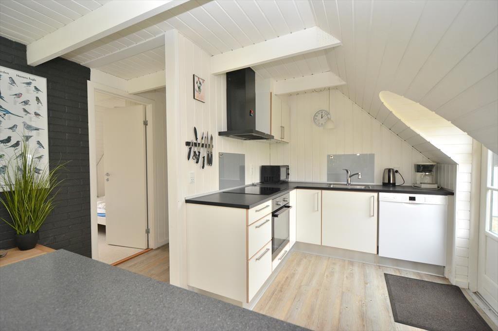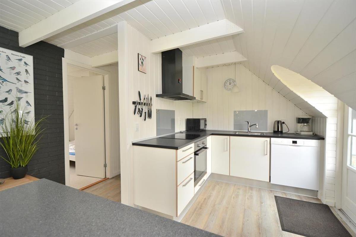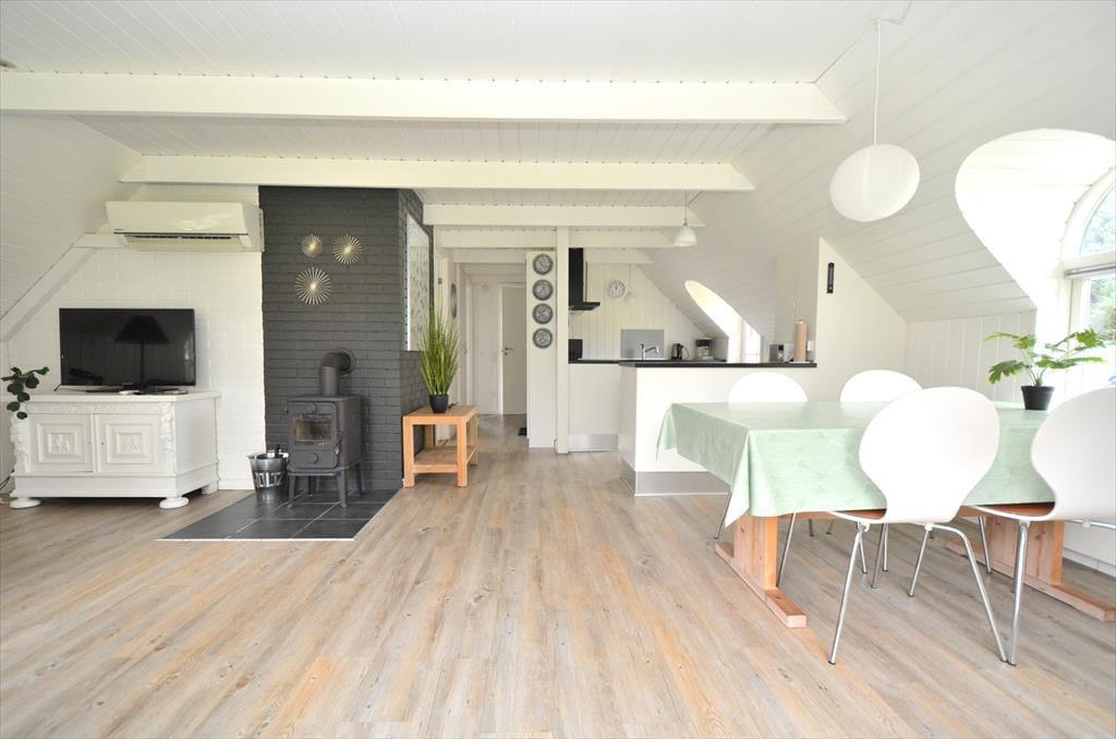 Schönes und helles Ferienhaus, das perfekt für endlose gemütliche Momente für die ganze Familie ist. Treten Sie ein in die wunderschöne Wohnküche, in der auf jedes Detail geachtet wurde und die zusammen mit dem charmanten neuen Holzofen dem Raum eine fantastische Wärme und Gemütlichkeit verleiht. Setzen Sie sich an den schönen Esstisch und genießen Sie den fantastischen Blick auf den Garten durch die großen Fenster, die für angenehmes Licht sorgen. Kochen Sie in der schönen Küche und lassen Sie die frische Luft durch die Terrassentür herein, sodass Sie an einem schönen Sommerabend auch problemlos Ihr Essen nach draußen mitnehmen können.