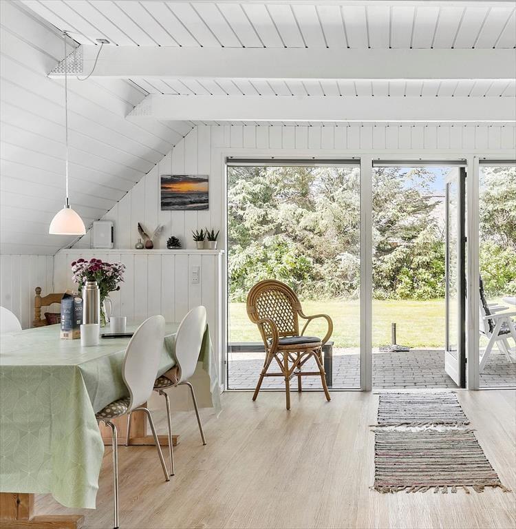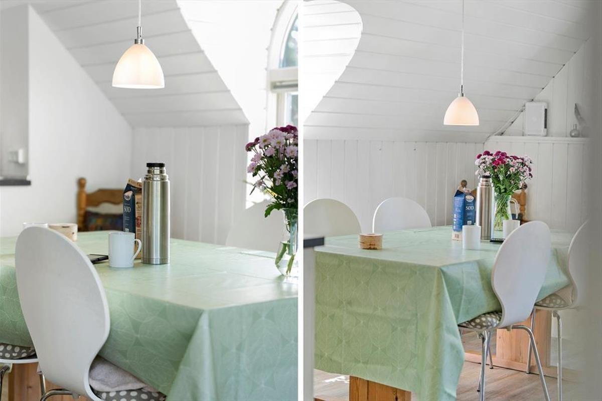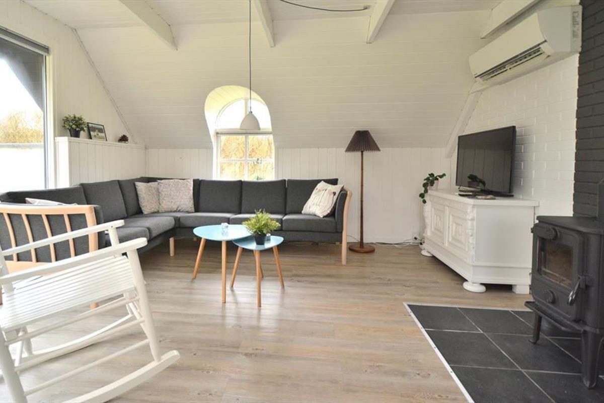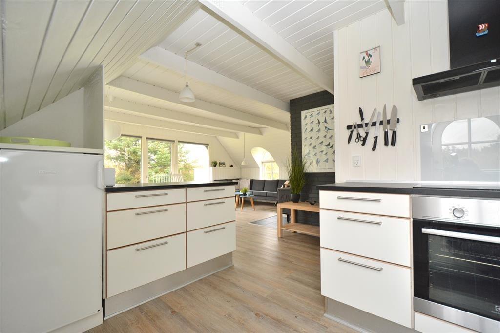 Schönes und helles Ferienhaus, das perfekt für endlose gemütliche Momente für die ganze Familie ist. Treten Sie ein in die wunderschöne Wohnküche, in der auf jedes Detail geachtet wurde und die zusammen mit dem charmanten neuen Holzofen dem Raum eine fantastische Wärme und Gemütlichkeit verleiht. Setzen Sie sich an den schönen Esstisch und genießen Sie den fantastischen Blick auf den Garten durch die großen Fenster, die für angenehmes Licht sorgen. Kochen Sie in der schönen Küche und lassen Sie die frische Luft durch die Terrassentür herein, sodass Sie an einem schönen Sommerabend auch problemlos Ihr Essen nach draußen mitnehmen können.