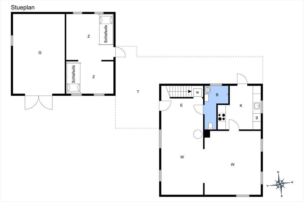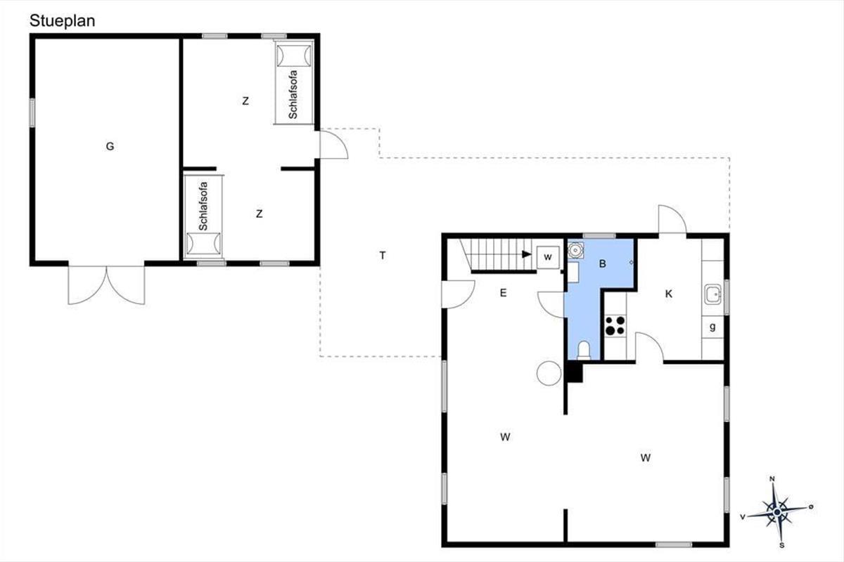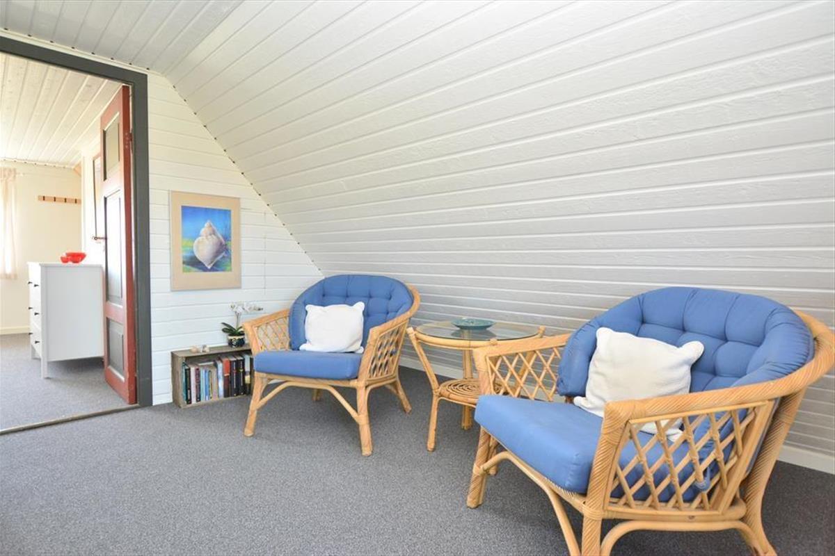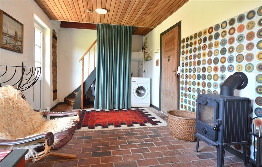 Dieses ältere gemütliche reetgedeckte Ferienhaus verfügt über eine ältere, aber gute und stimmungsvolle Möblierung. Der Kaminofen sorgt im Wohnraum für ein Maximum an Gemütlichkeit und Wärme. Der Wohnraum ist offen mit dem Essbereich und einer gut ausgestatteten Küche verbunden. Das kleinere, ältere Badezimmer umfasst eine Dusche. Auf dem Grundstück befindet sich ein 18 m² großes Nebengebäude mit zwei Einzelschlafsofas in zwei offen miteinander verbundenen Räumen. Mit Ausnahme des Essbereichs verfügt das Erdgeschoss über Steinfußböden. Der Essbereich ist mit einem schönen Holzboden versehen. Im Obergeschoss erwarten Sie zwei Schlafräume. Gegen Zahlung einer Haustiergebühr in Höhe von EUR 28,00 dürfen Sie gerne Ihren Hund mitbringen.