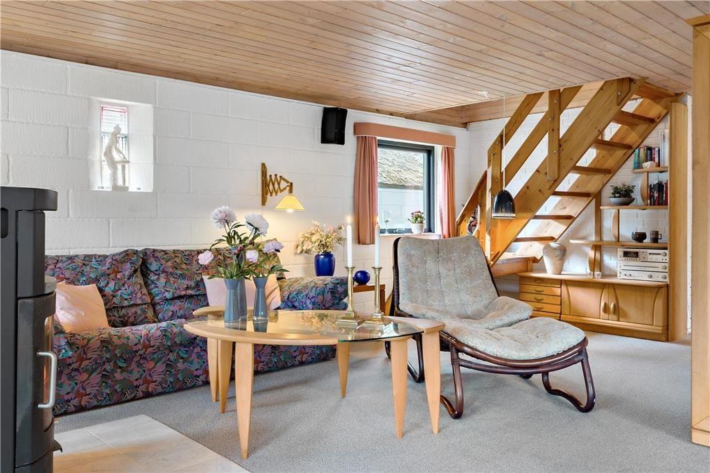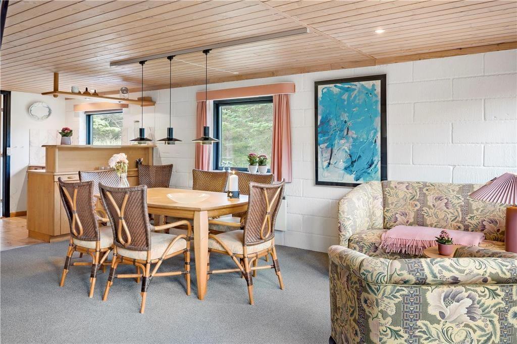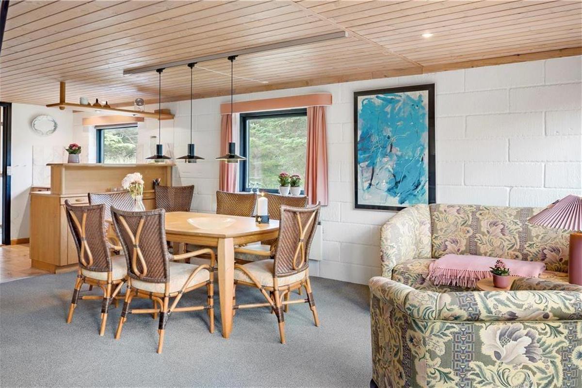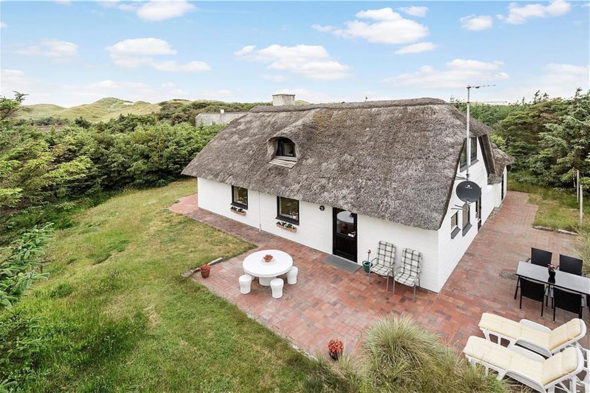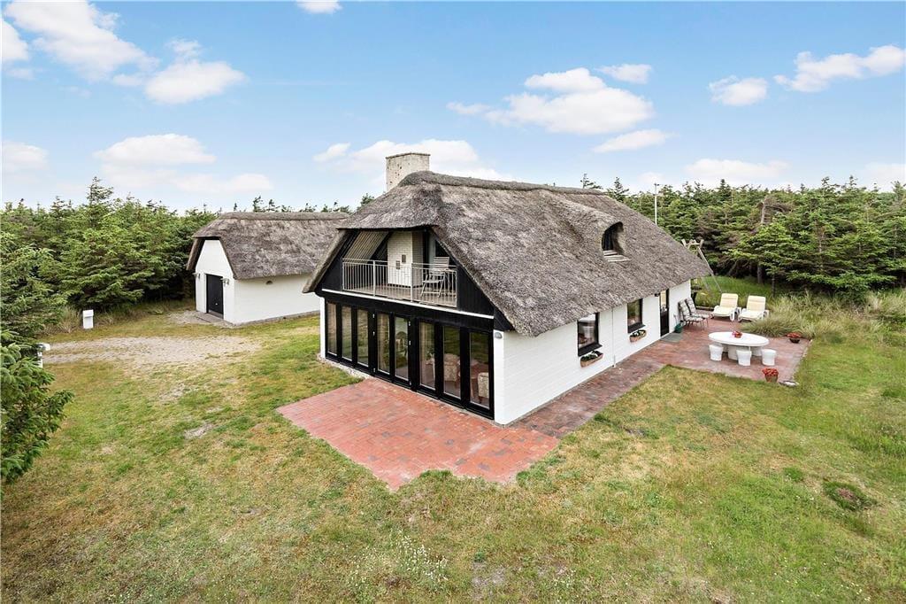 In Vedersø Klit erwartet Sie dieses außerordentlich schön platzierte, reetgedeckte Ferienhaus. Das Haus begrüßt Sie mit einer ansprechenden, komfortablen Möblierung und hellen, gemütlichen Räumlichkeiten. Die schöne Küche ist offen mit dem Wohn- und Essbereich verbunden. Von hier aus genießen Sie einen reizvollen Blick auf die Dünen. Ihnen stehen zwei WCs zur Verfügung. Eines beinhaltet eine Dusche. Im Obergeschoss befinden sich zwei Schlafräume, von denen einer mit zwei Einzelbetten eingerichtet ist. Der zweite Raum verfügt über ein Doppelbett und einen Zugang zum Westbalkon, auf dem Sie mit einem wunderbaren Ausblick auf die Natur verwöhnt werden. Ein dritter Schlafraum ist im Erdgeschoss untergebracht. Insgesamt bietet dieses Ferienhaus einen gemütlichen Rahmen für schöne und erholsame Urlaubstage im Familienkreis.