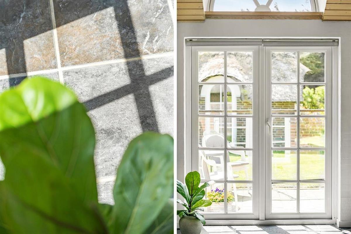 Freuen Sie sich auf dieses erstklassige, architektengezeichnete Reetdachhaus für 5 Personen! Vom Wohnraum gelangen Sie hinaus auf eine große Terrasse mit Windschutz. Das Urlaubsdomizil präsentiert sich hell, freundlich und stimmungsvoll. Weiß gestrichene Steinwände, Holzdecken und ein guter Tageslichteinfall sorgen im Wohnraum für eine richtig schöne Wohnatmosphäre. Gemütliche Stunden genießen Sie auf ansprechenden Polstermöbeln vor dem Kaminofen. Die gut ausgestattete, helle Küchenecke beinhaltet unter anderem einen Geschirrspüler, einen Kühlschrank mit Gefriermöglichkeit und eine Mikrowelle. Traumhaft erholsame Momente genießen Sie im tollen, hellen Badezimmer, das ausgestattet ist mit Whirlpool, Sauna und Dusche. Ein Gäste-WC ist praktischerweise vorhanden. Im Eingangsbereich stehen Ihnen eine Waschmaschine und ein Wäschetrockner zur Verfügung. Der Wasserverbrauch ist nicht im Mietpreis inbegriffen. Es ist leider nicht gestattet, E-Autos am Haus zu laden.