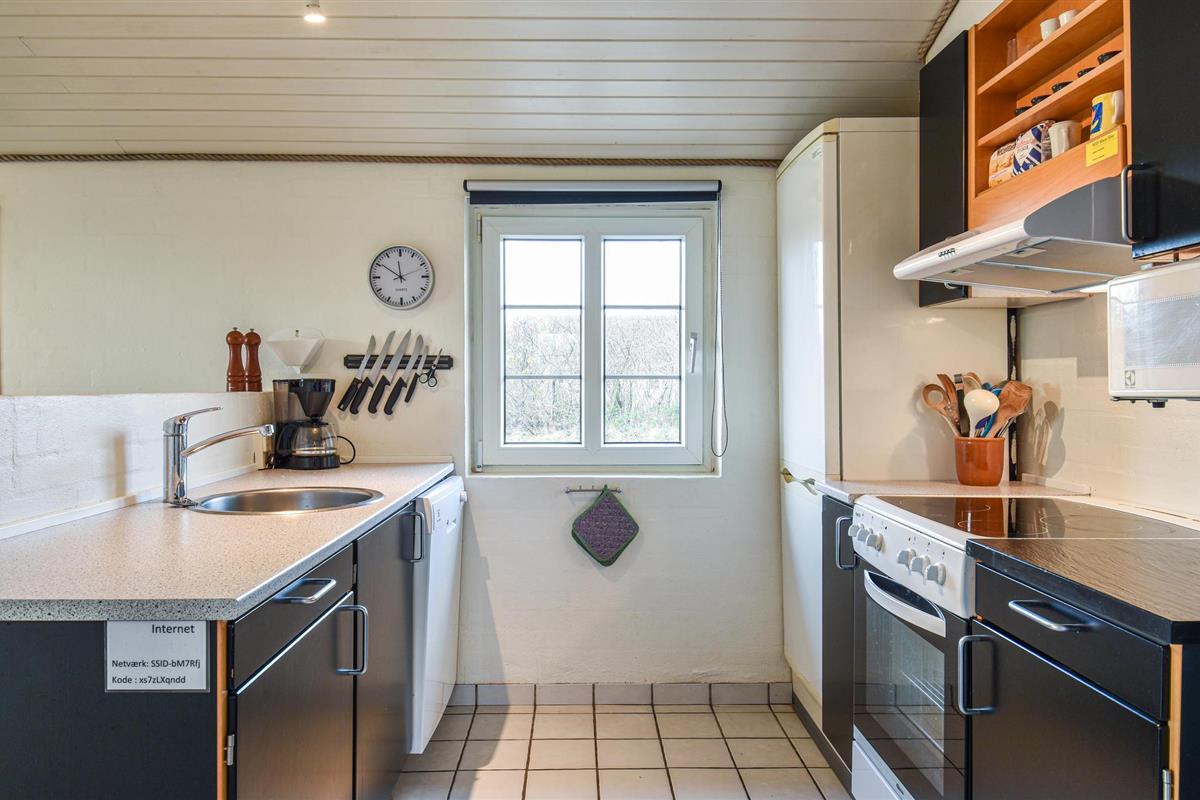 In het oude Vedersø Klit ligt dit mooie rietgedekte vakantiehuis. De grote woning biedt veel privacy. Het vakantiehuis bevat een lichte woonkamer met uitgang naar het terras, deze staat in open verbinding met de keuken. Er zijn drie goede slaapkamers en een grote badkamer met sauna en massagebad. Een andere badkamer is uitgerust met een douche. Het internet is snel dankzij de glasvezelverbinding. Dit gebied is gezegend met gevarieerde seizoenen. U ervaart hier allerlei natuurgeluiden, van een absoluut stille omgeving, tot vogelgezang en het flapperen van de vleugels van trekvogels, tot het ruisen van de gure westenwind. Na een stormachtige dag kunt u amber vinden op het strand. In dit gebied kunt u een wandeling maken onder de bomen in het bos van Græm Skov. Verschillende lange, gemarkeerde paden zullen u begeleiden. Er is ook een kruidenierswinkel op loopafstand van het huis. Het restaurant is ook niet ver weg. Legoland en Givskud Zoo liggen op minder dan een half uur rijden.