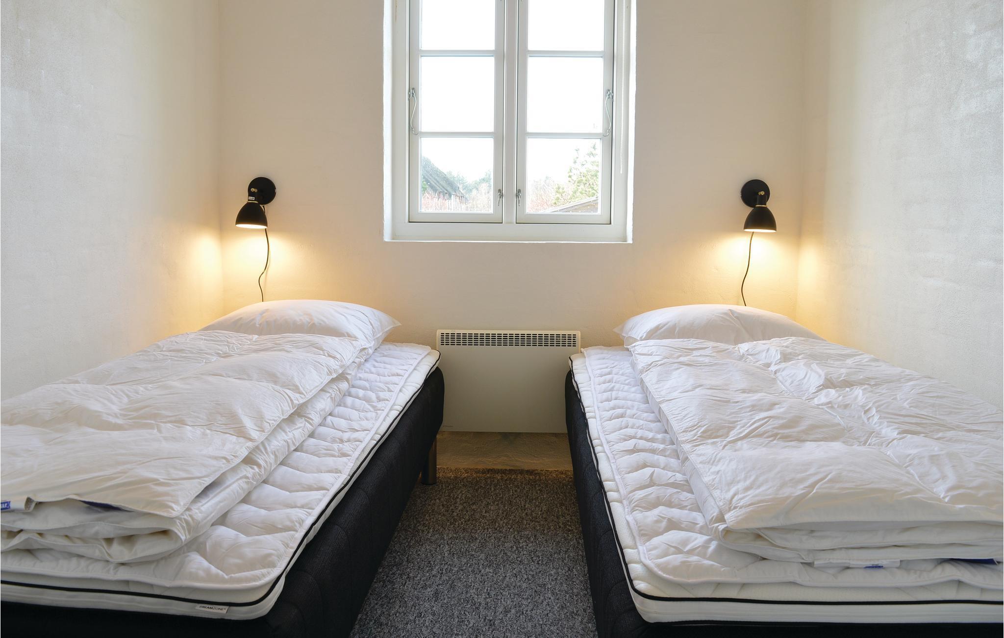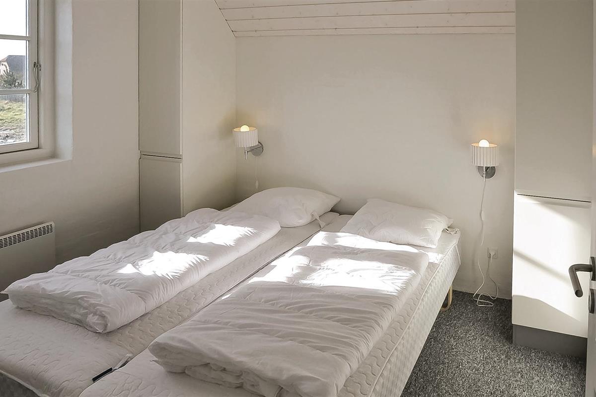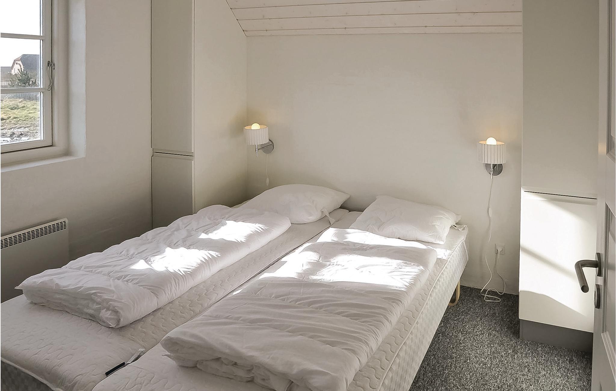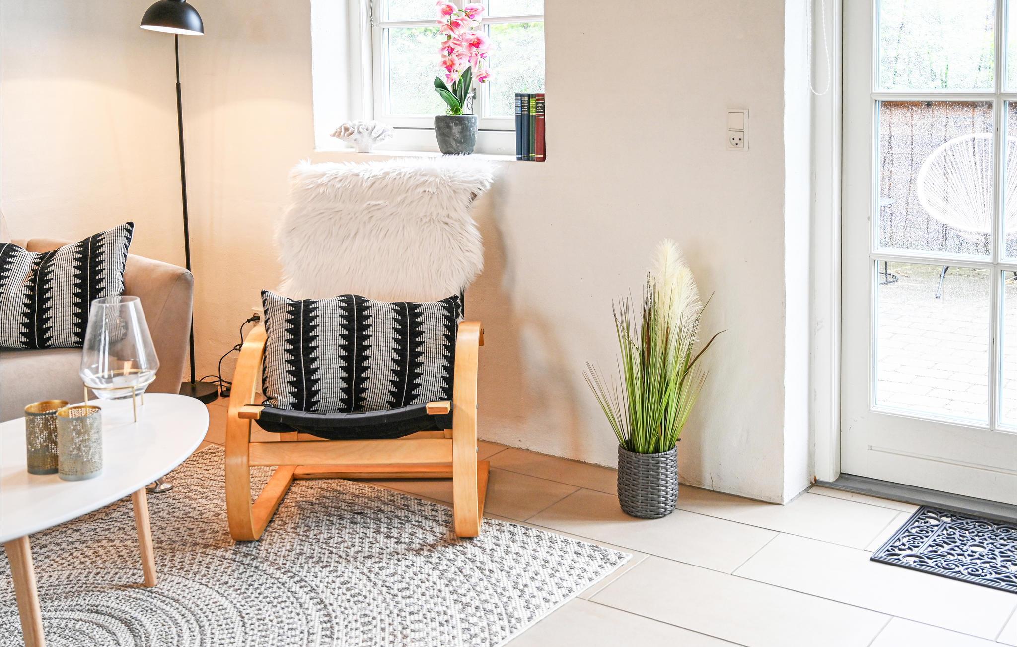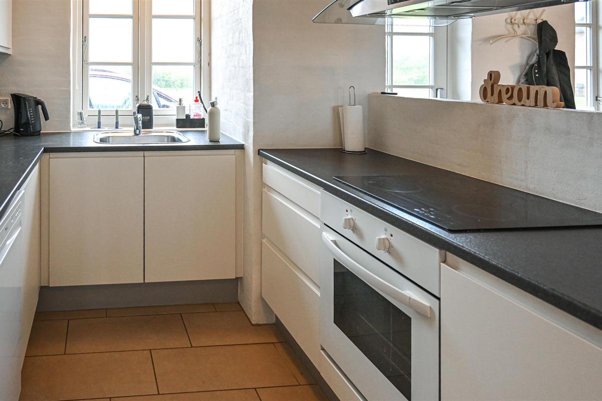 Het hart van het huis is de woonkeuken, die het huis in tweeën deelt. Het huis heeft een moderne keuken die alles heeft voor een geslaagde vakantie. Door de open verbinding met de woonkamer bent u altijd samen, ook als het eten wordt bereid. De kamer heeft vloerverwarming en een houtkachel. Vanuit de woonkamer heeft u toegang tot een groot, afgesloten terras op het zuidwesten, waar u heerlijk kunt dineren en zonnen. Als u ooit uit eten wilt, is er een restaurant, een winkel, een buitenzwembad en minigolf op slechts 5 m van het huis.