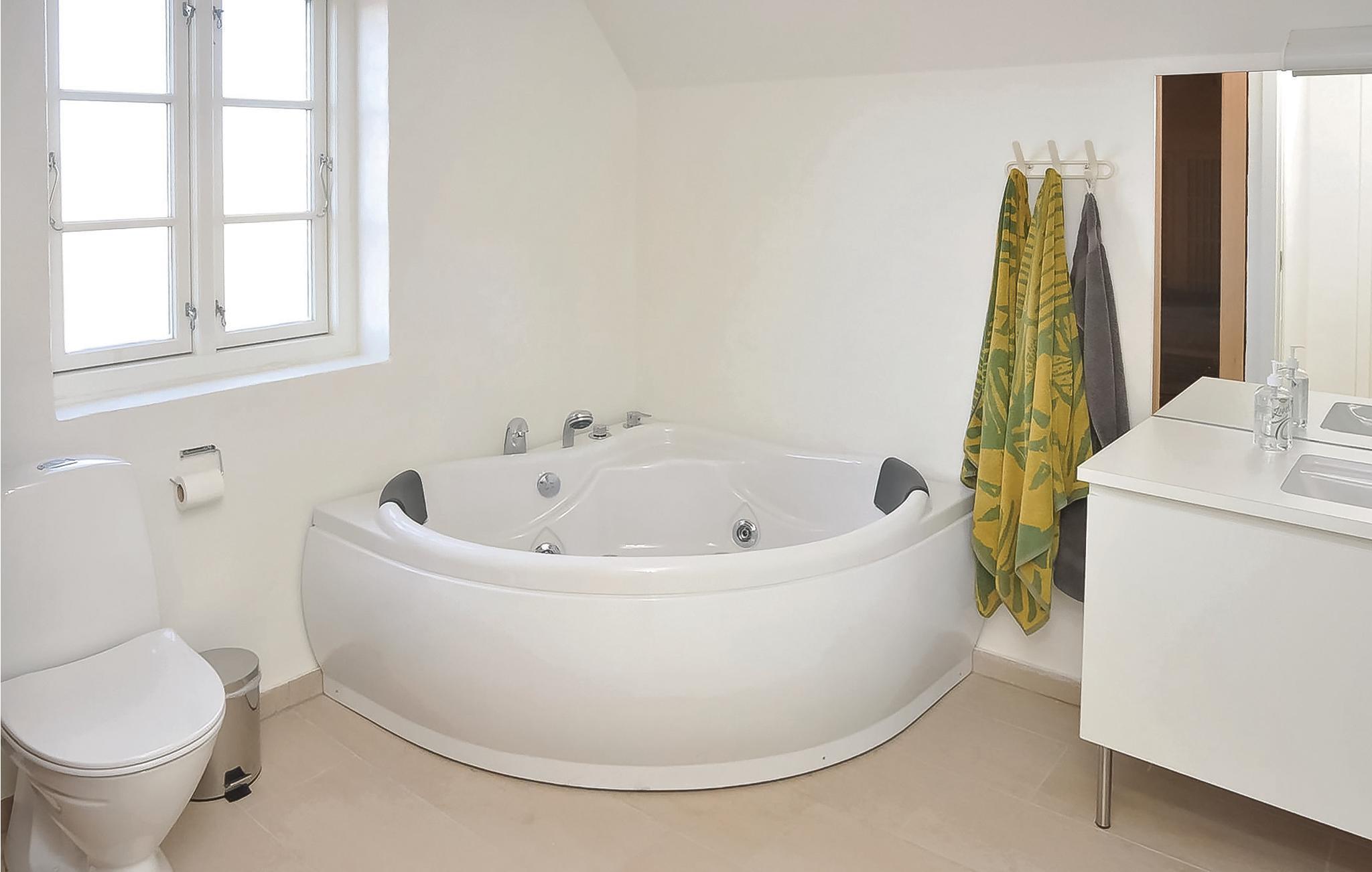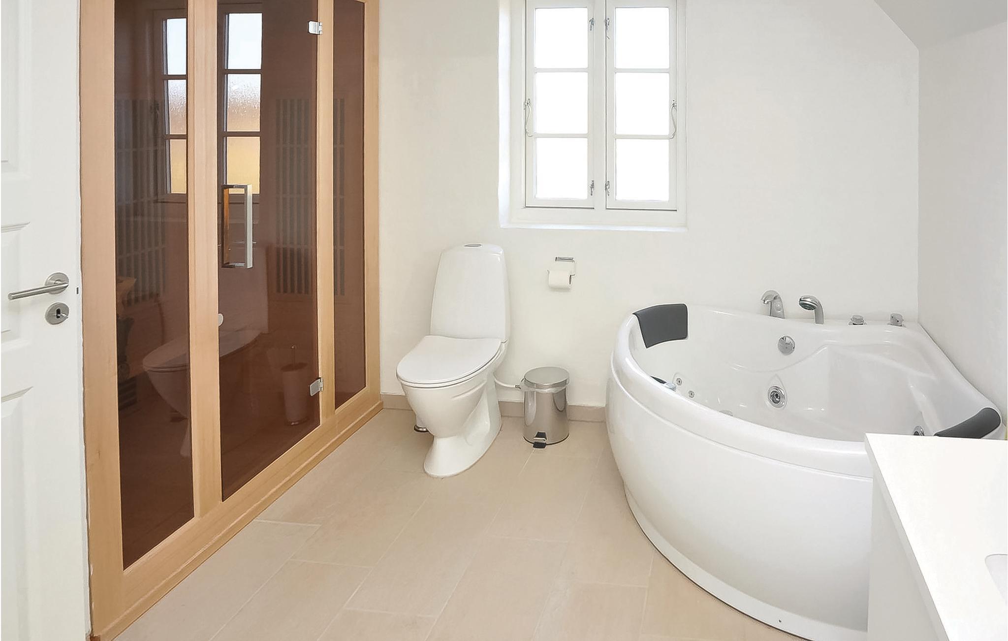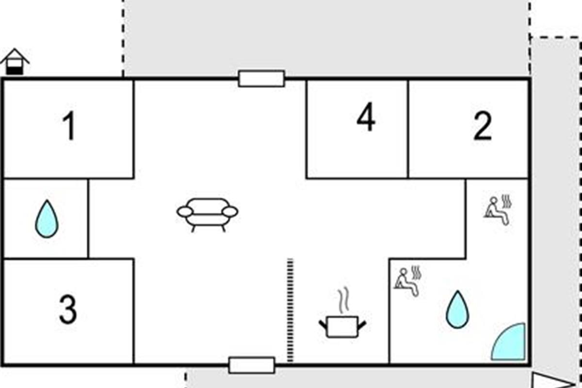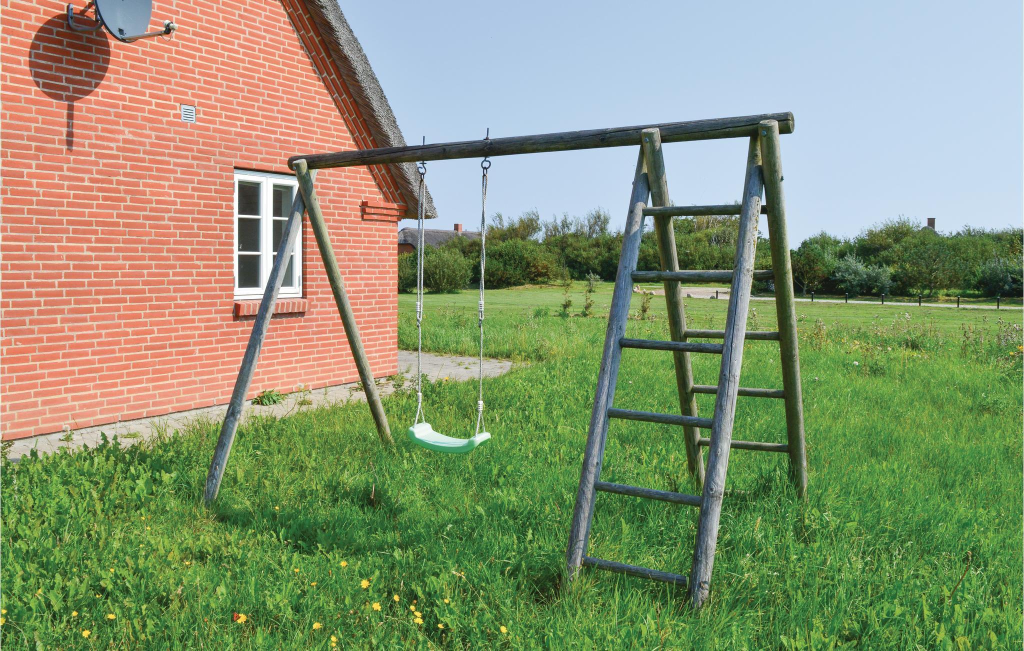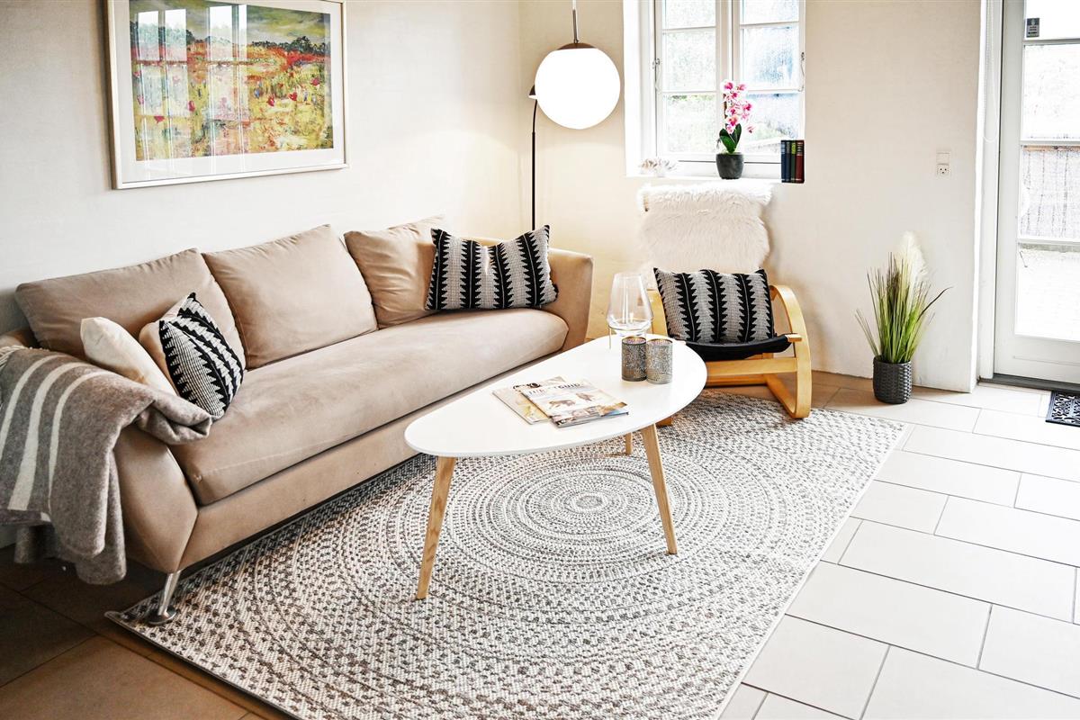 Het hart van het huis is de woonkeuken, die het huis in tweeën deelt. Het huis heeft een moderne keuken die alles heeft voor een geslaagde vakantie. Door de open verbinding met de woonkamer bent u altijd samen, ook als het eten wordt bereid. De kamer heeft vloerverwarming en een houtkachel. Vanuit de woonkamer heeft u toegang tot een groot, afgesloten terras op het zuidwesten, waar u heerlijk kunt dineren en zonnen. Als u ooit uit eten wilt, is er een restaurant, een winkel, een buitenzwembad en minigolf op slechts 5 m van het huis.