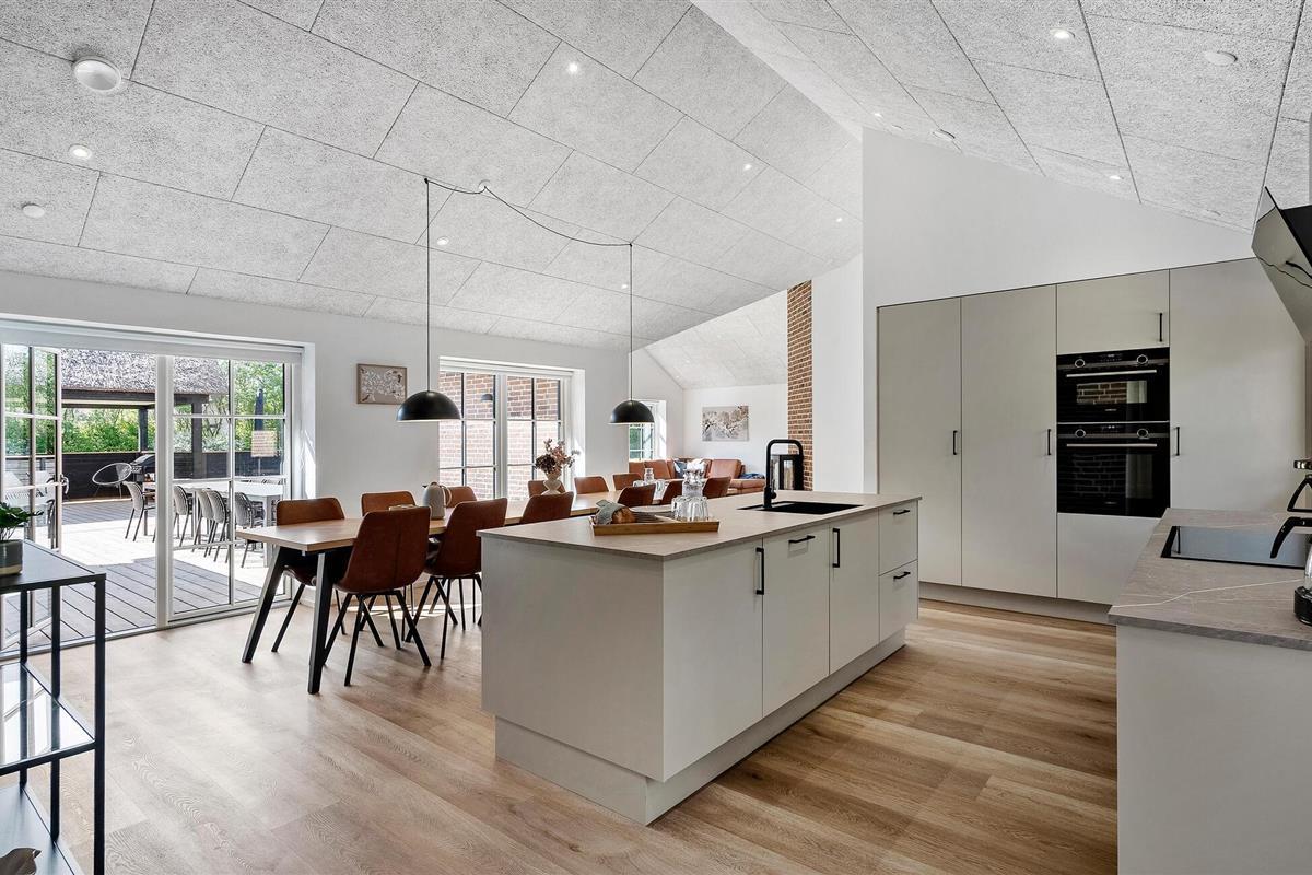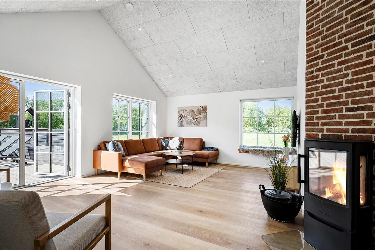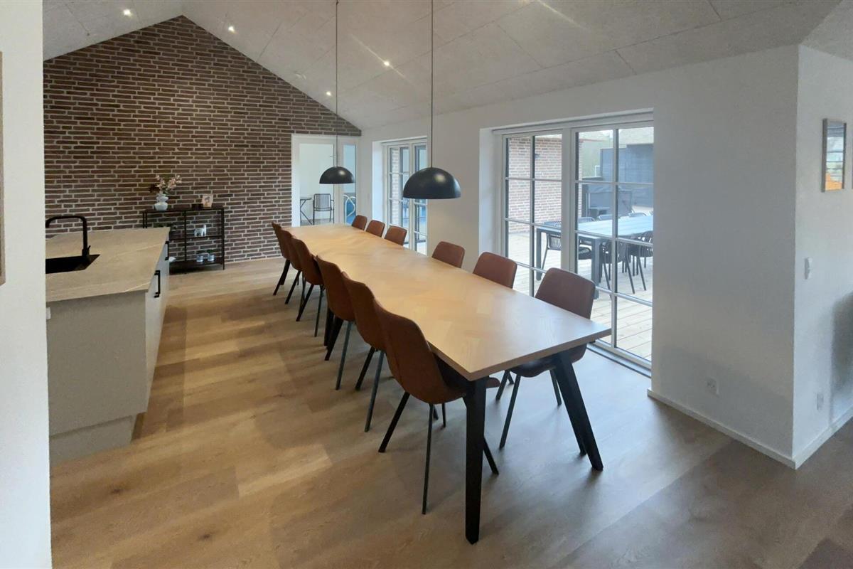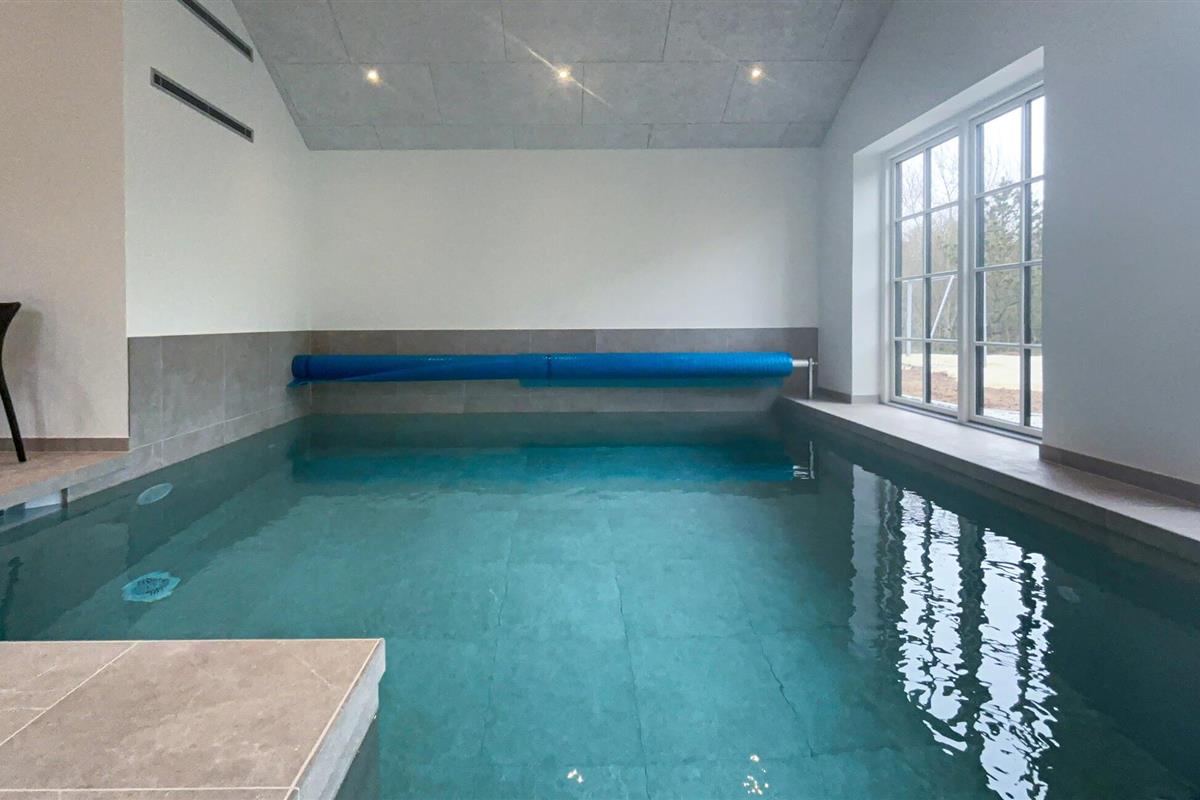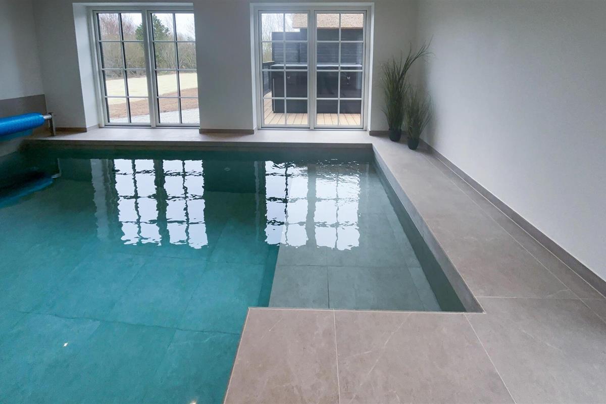 Je huis maakt indruk met een open, licht woonconcept, heldere lijnen en hoogwaardig meubilair. De stijlvolle keuken met royaal kookeiland biedt voldoende ruimte om samen te koken en van de maaltijden te genieten. De aangrenzende eethoek is ideaal voor lange maaltijden en gezellig samenzijn. In de woonkamer zorgen houten vloeren, een houtkachel en comfortabele banken voor een warme, gezellige sfeer, ideaal om te ontspannen na een veelbewogen dag. Een echt hoogtepunt wacht binnen op je met het zwembad en de eigen sauna.