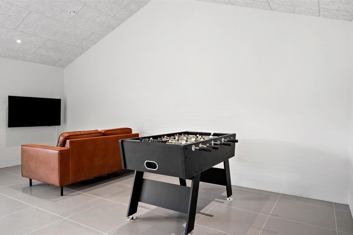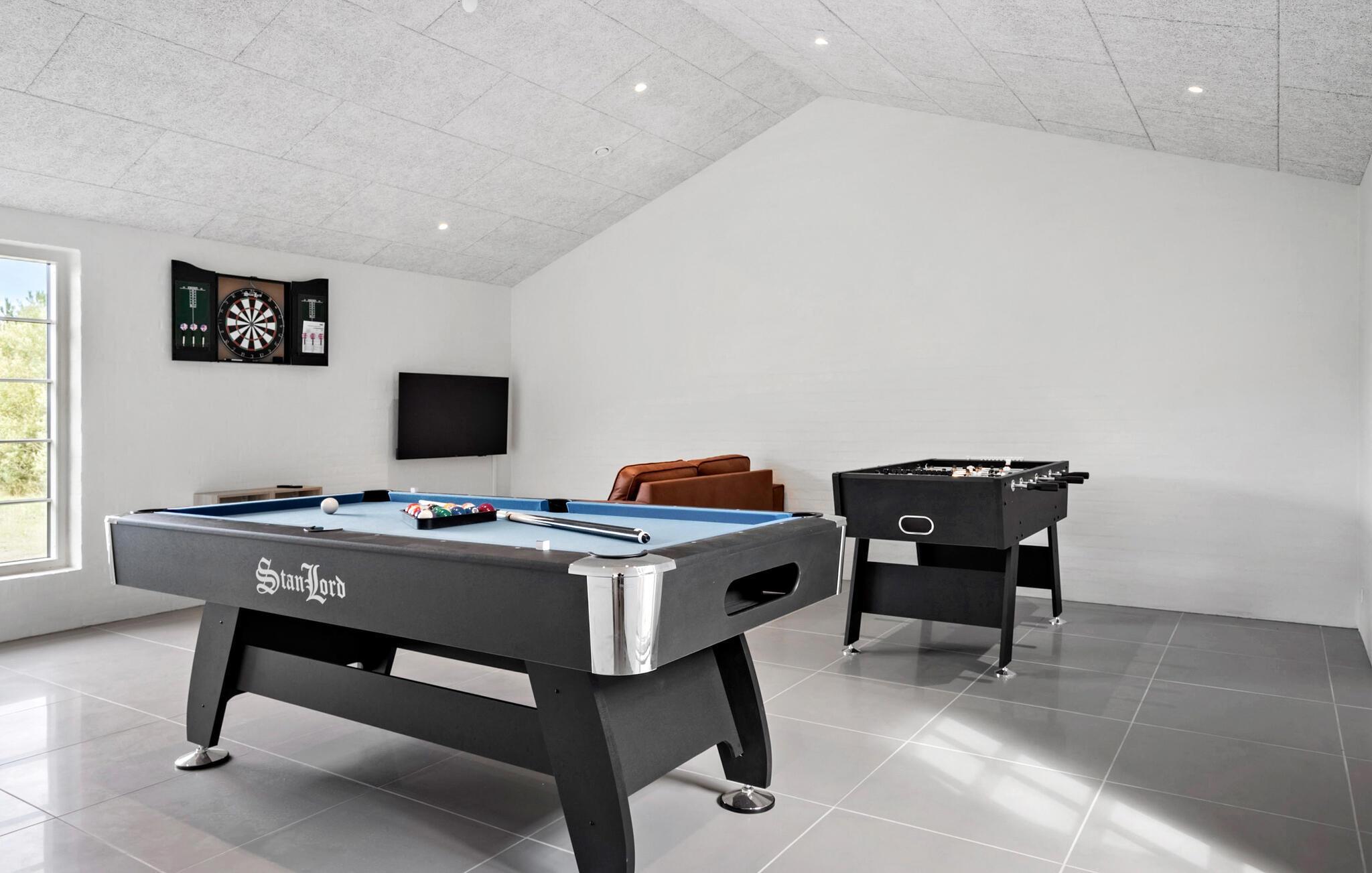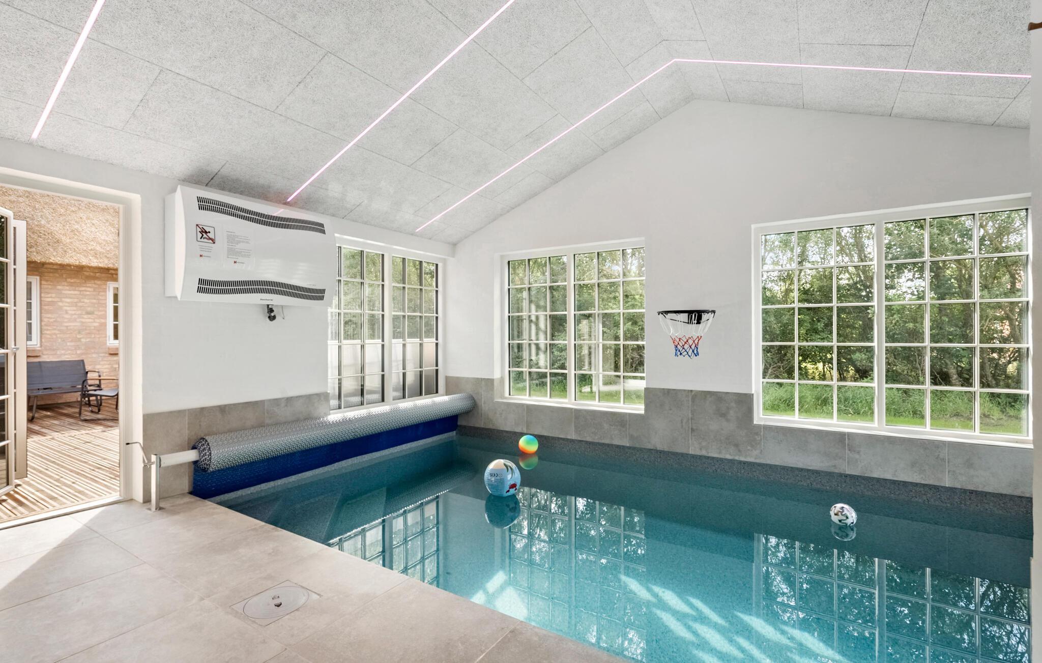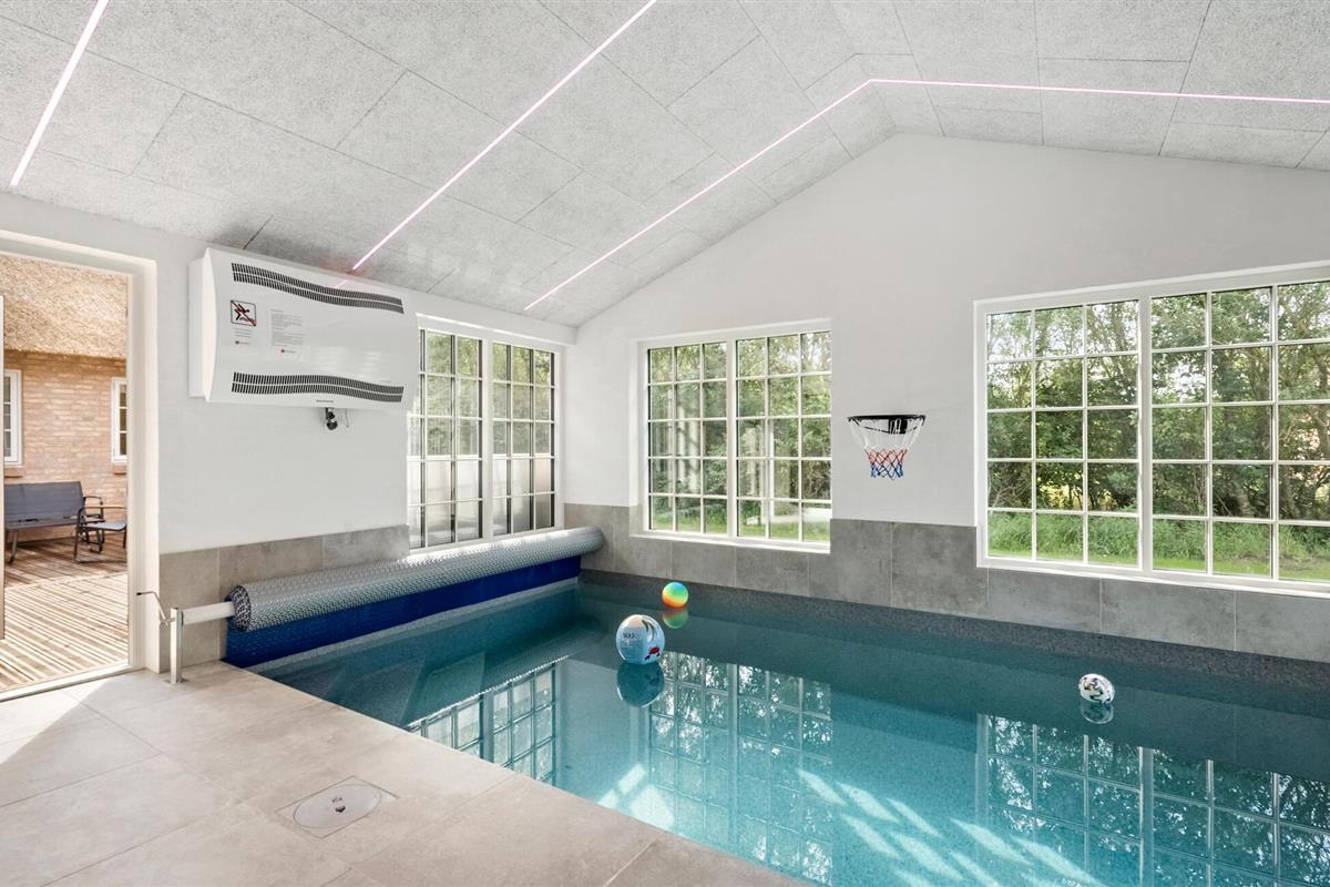 Dit betoverende huis met rieten dak biedt je alle ruimte voor een langverwachte familiereünie of een gezellig samenzijn met vrienden. Ontspanning staat hier voorop. Trakteer jezelf op gezellige momenten in de sauna, leer je kinderen zwemmen in het binnenzwembad en praat over vervlogen tijden tijdens vrolijke kookavonden. Daag jezelf uit aan de tafelvoetbaltafel, pooltafel, tafeltennistafel of het dartbord of kom samen voor een gezellige filmavond.