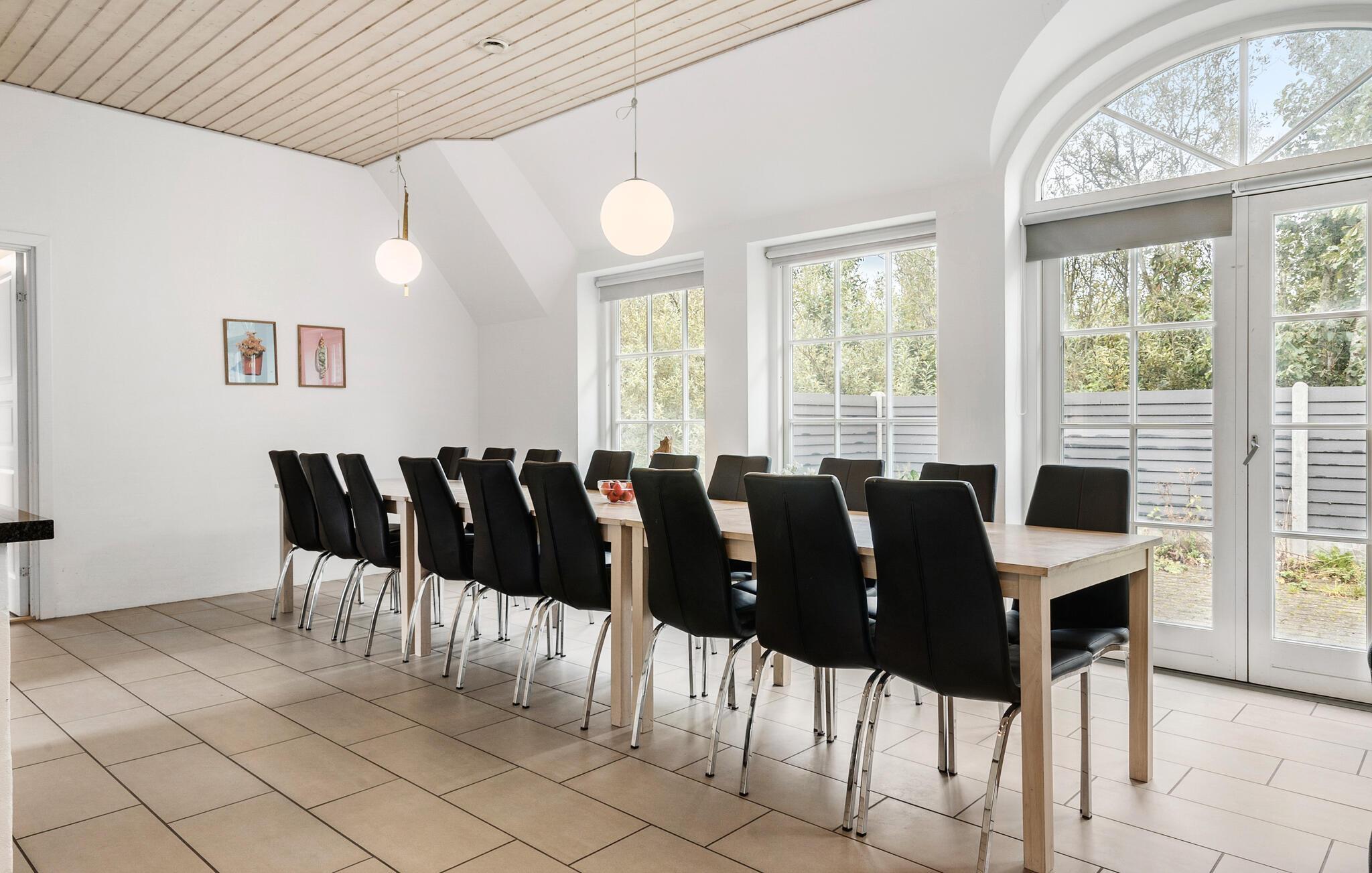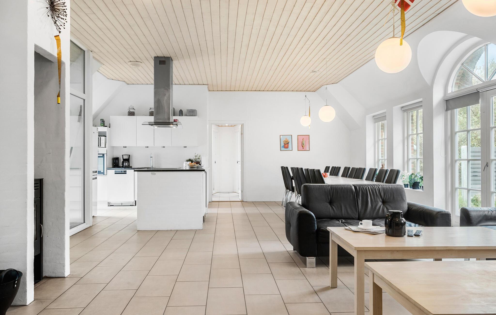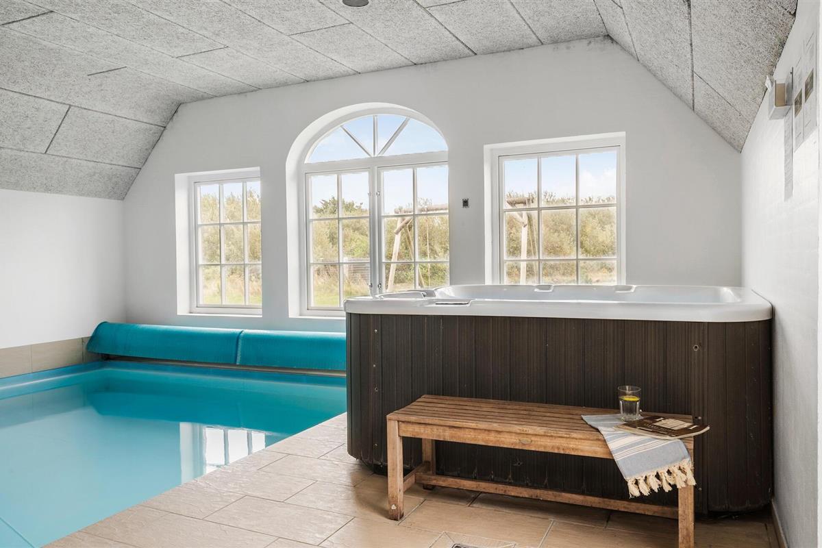 Je vakantiehuis in Vedersø Klit biedt veel ruimte voor maximaal drie gezinnen of een grotere groep en belooft onvergetelijke momenten. De uitnodigende sfeer en stijlvolle, open keuken zijn perfect voor gezellige kookavonden. Na een heerlijke maaltijd kun je ontspannen in de gezellige zithoek en samen een film kijken. Het zwembadgedeelte is een bijzonder hoogtepunt van het huis, met een groot zwembad, een ruime whirlpool en een rustgevende sauna, ideaal voor ontspannende uren.