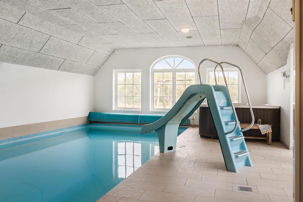 Ruim en stijlvol vakantiehuis met zwembad, sauna en speelruimte in Vedersø Klit, ideaal voor grote gezinnen.