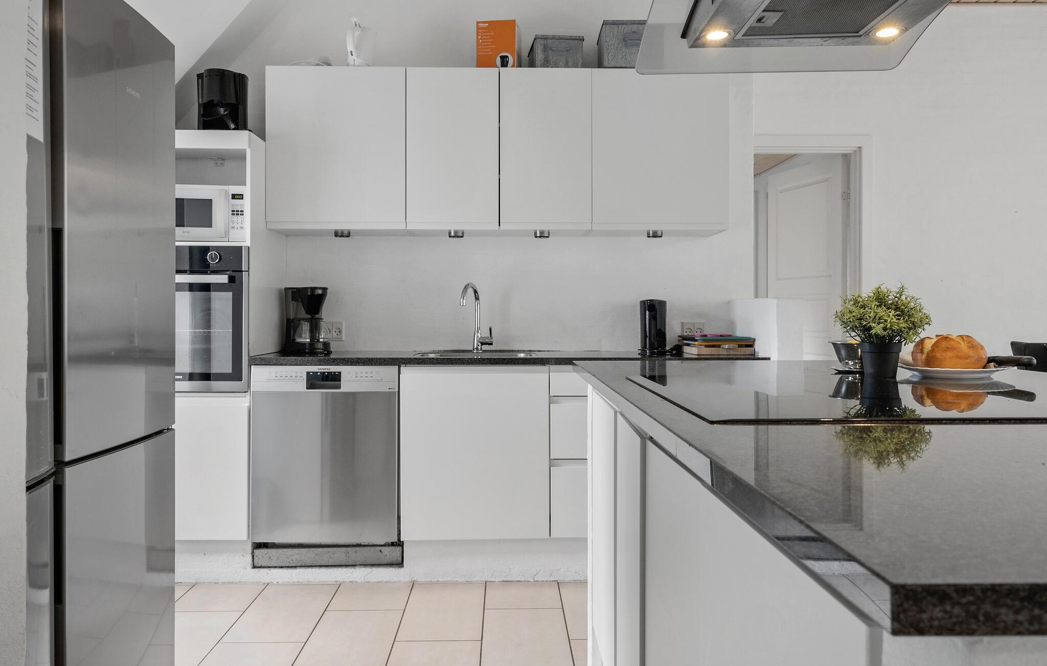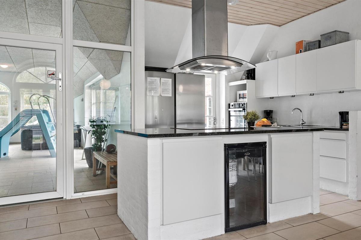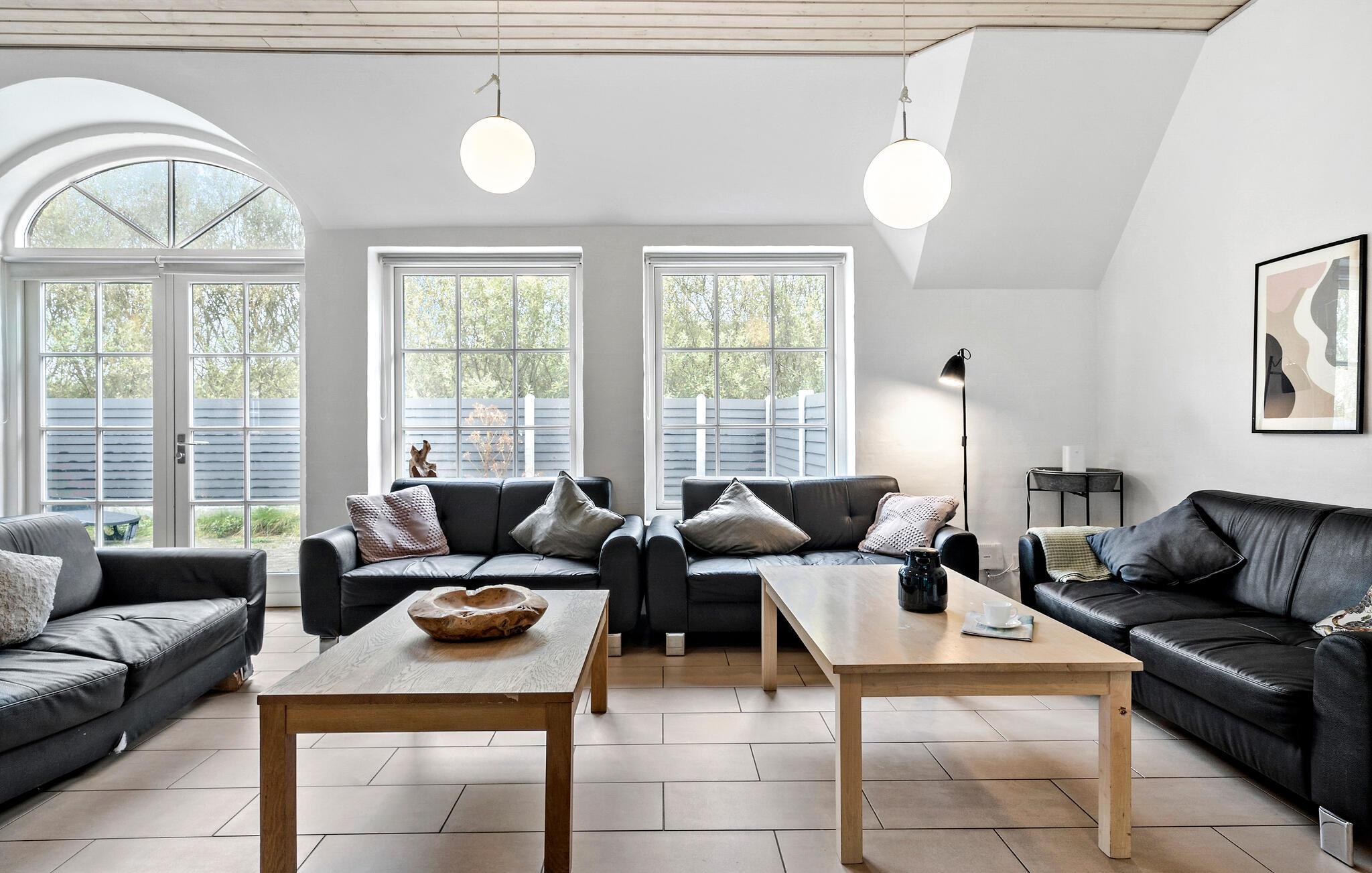 Je vakantiehuis in Vedersø Klit biedt genoeg ruimte voor maximaal drie gezinnen of een grotere groep en belooft onvergetelijke vakantie-ervaringen. De gezellige sfeer van het huis en de open, elegante keuken nodigen uit om samen te koken. Na het eten kun je het jezelf gemakkelijk maken in de stijlvolle zithoek en samen een goede film kijken. Een bijzonder hoogtepunt is het zwembadgedeelte, dat naast het zwembad een ruime whirlpool biedt. Er is ook een rustgevende sauna, ideaal voor ontspannende uren.