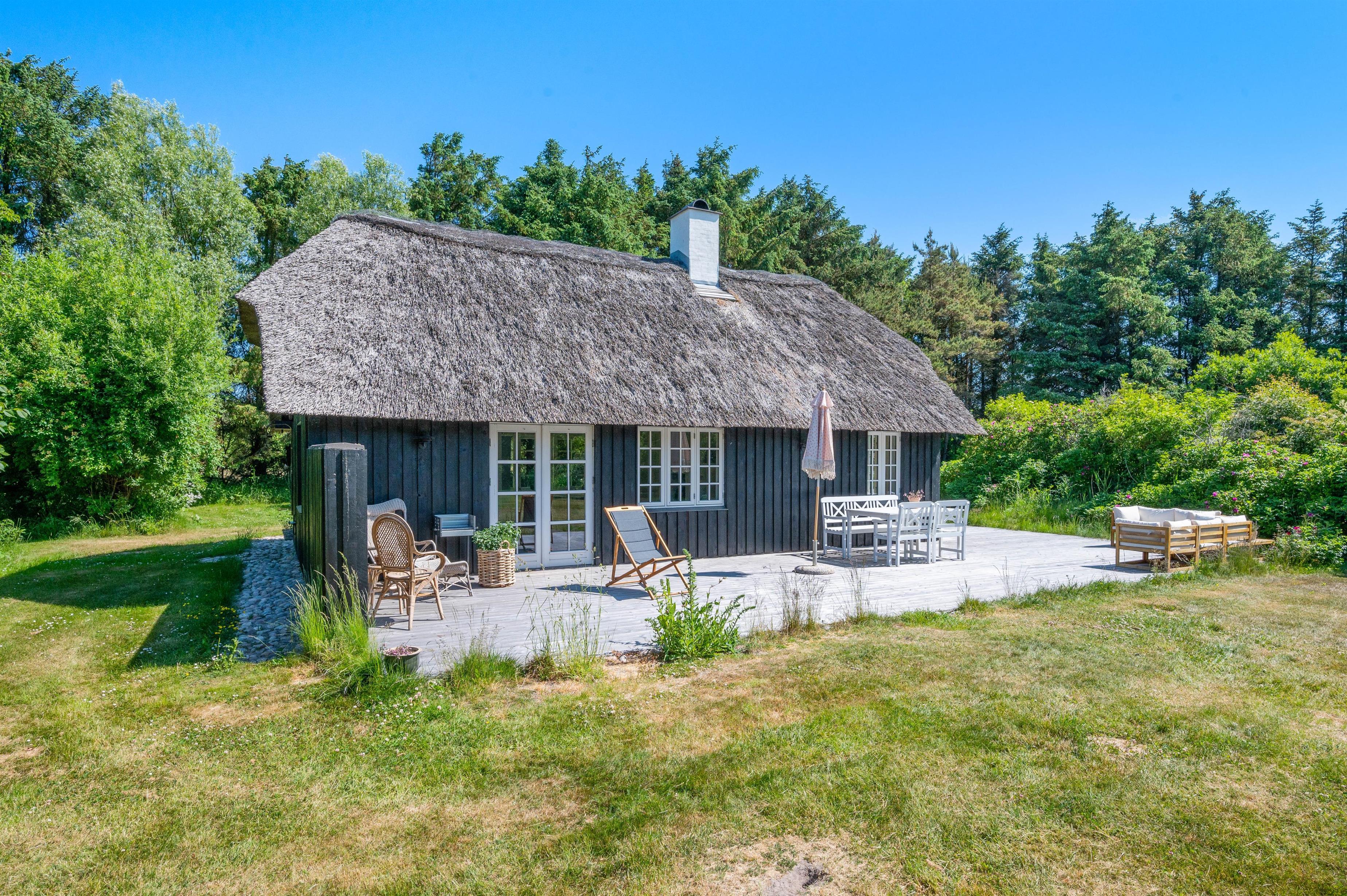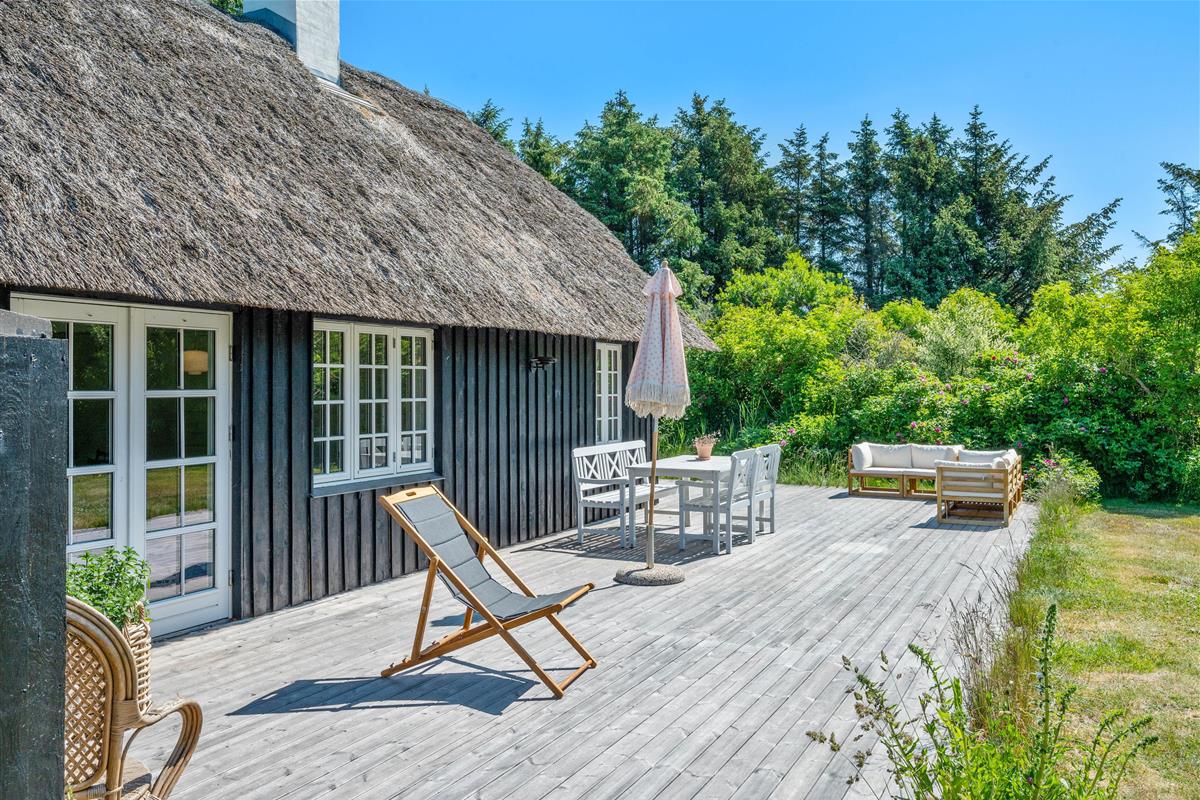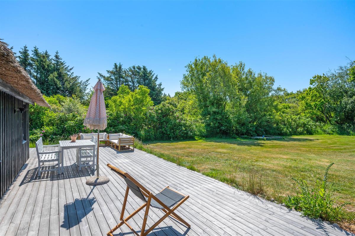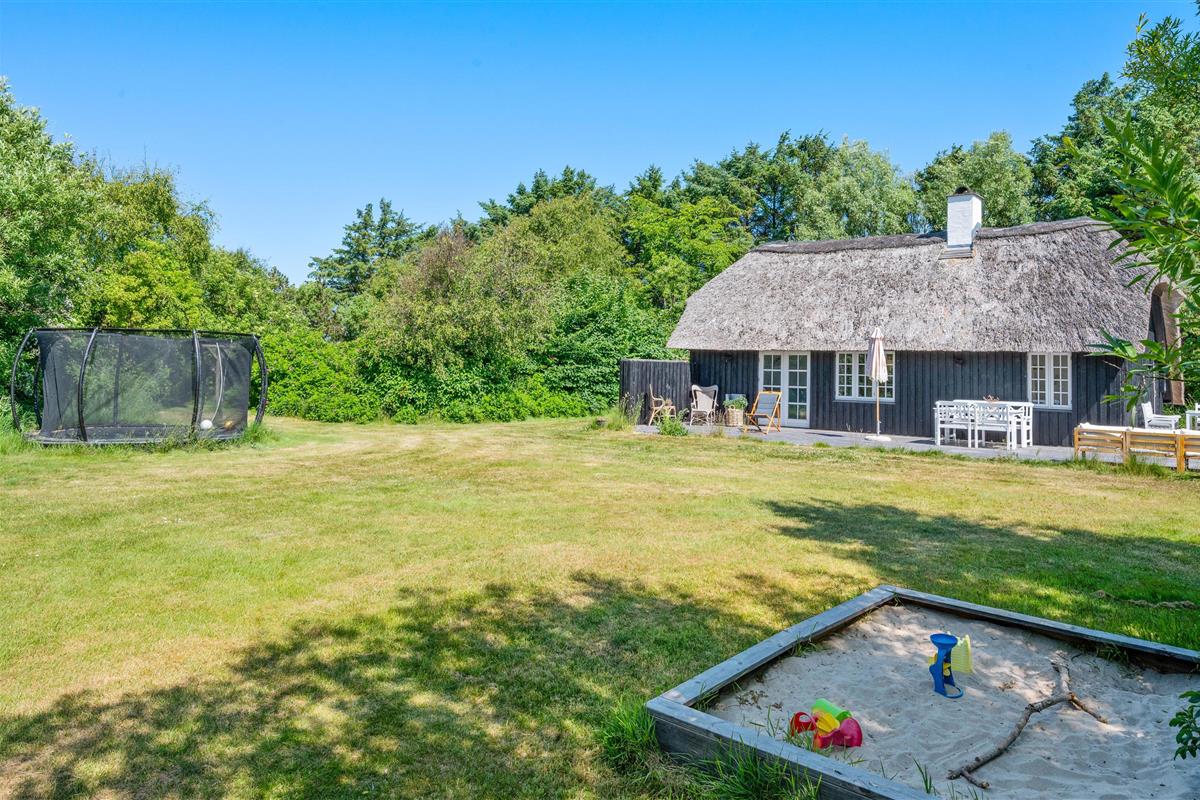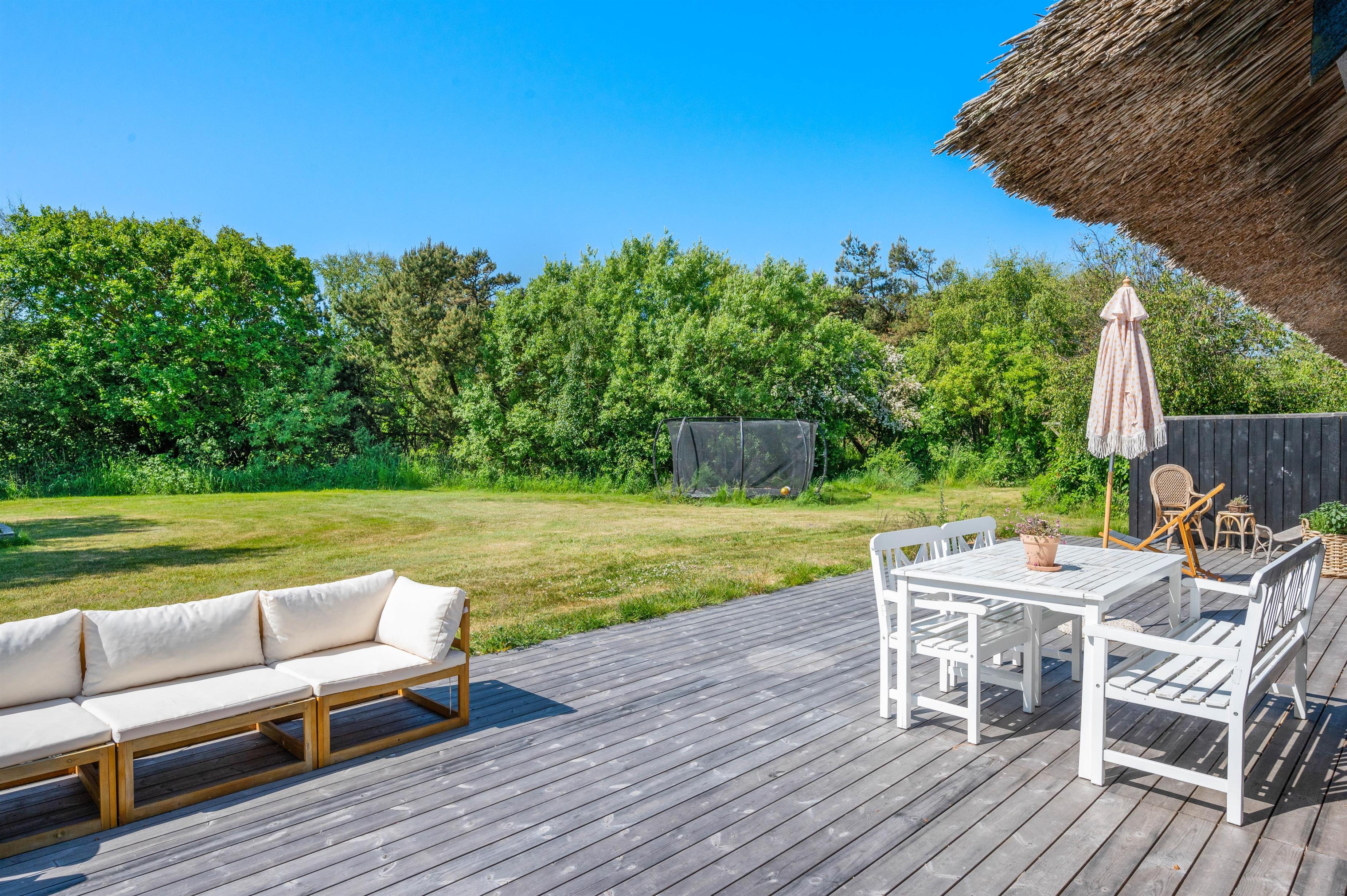 The holiday home at Øhusevej 15 sits on a natural plot of approximately 1.36 acres (5,500 square metres), offering plenty of space for your dog to play and run around. Children will love the outdoor area, which features both a trampoline and a sandpit. The holiday home is surrounded by a wooden terrace with garden furniture, barbecue and sun loungers. At the gable end, you'll find a convenient outdoor shower for rinsing off sandy feet after beach walks. Please note: to prevent frost damage, the outdoor shower is only available from April to November. This is truly a place for relaxation, perfect for sitting in the sun with a good book or enjoying a cool drink.