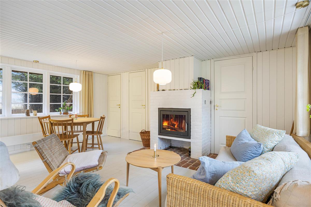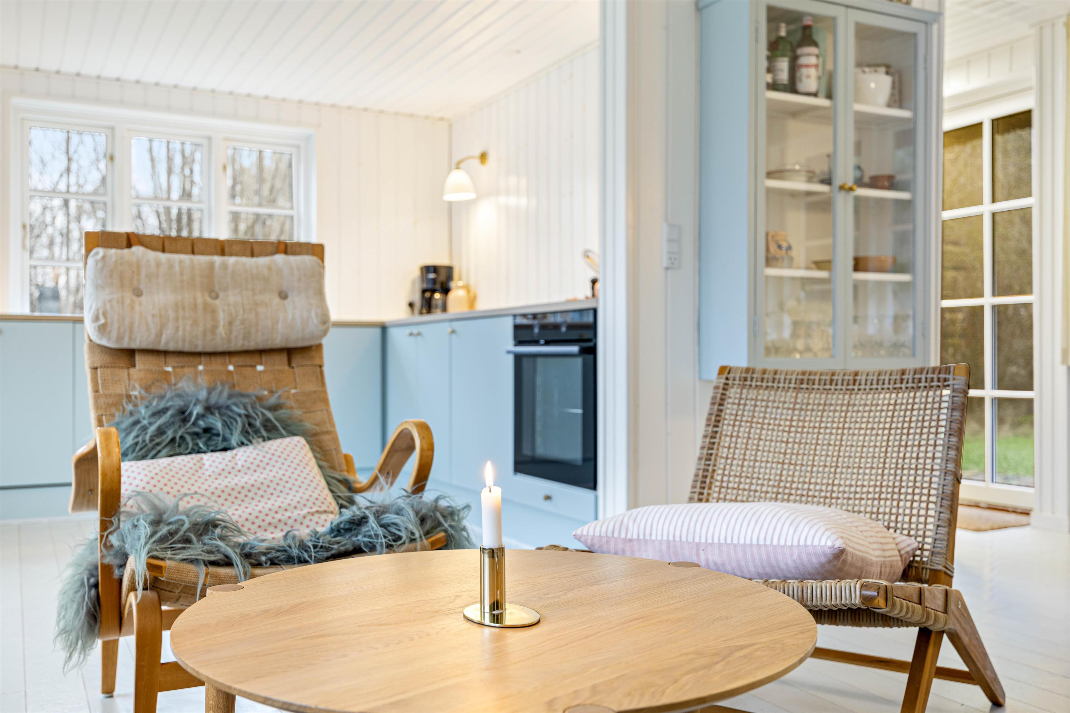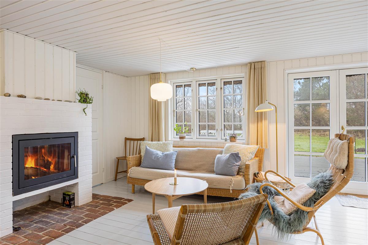Upon entering this holiday home, you'll immediately notice the authentic country house style with light wood panelling and flooring. The holiday home at Øhusevej 15 features two bedrooms. The bright and practical kitchen opens onto the living room, which provides access to the wooden terrace. The living room houses a wood-burning stove, creating that quintessential holiday home atmosphere and providing welcome warmth on cooler days. The holiday home also includes a dishwasher, flat-screen TV and complimentary fibre optic internet, ensuring reliable high-speed connectivity during your stay.
