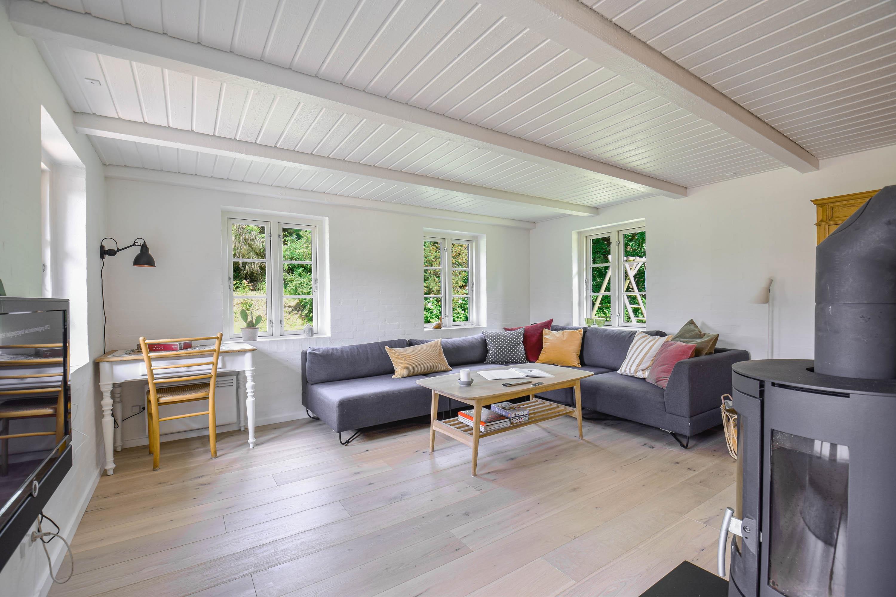 The small entrance hallway leads you into the dining area and through the open-plan kitchen into the beautiful living room. Here you will find cosy, modern, bright and friendly furnishings and a good wood-burning stove. The small workspace is also practical if you want to write something or the children want to draw. There are three bedrooms in total, two with a double bed and one with two single beds. The bright, modern bathroom has a shower cubicle and underfloor heating.