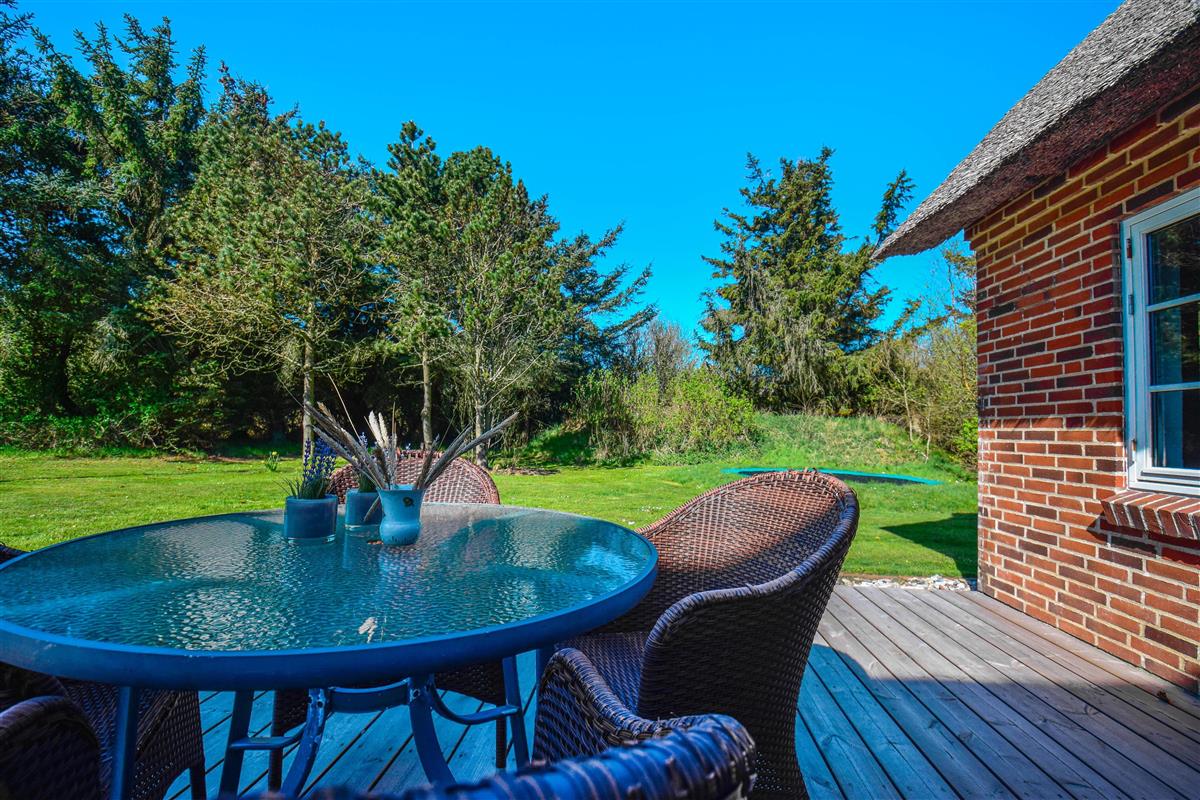 It's a wonderful place to romp and play. There is even a trampoline on the really large plot, which is partly natural and partly mown. There is always a sheltered spot on one of the three beautiful terraces and you are well protected from the wind by the surrounding trees and bushes. The beach is just a stone's throw away - the North Sea and the dunes are very close by.