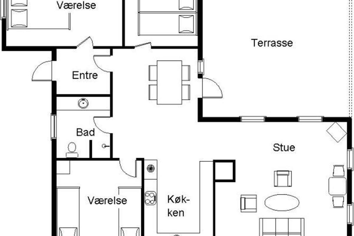 This holiday home is located in a quiet area of Vedersø Klit. This holiday region is characterised by the beautiful dune landscape, the wide beach and the pretty, star-shaped sea mark. There is a grocery shop, restaurant and ice cream parlour nearby.