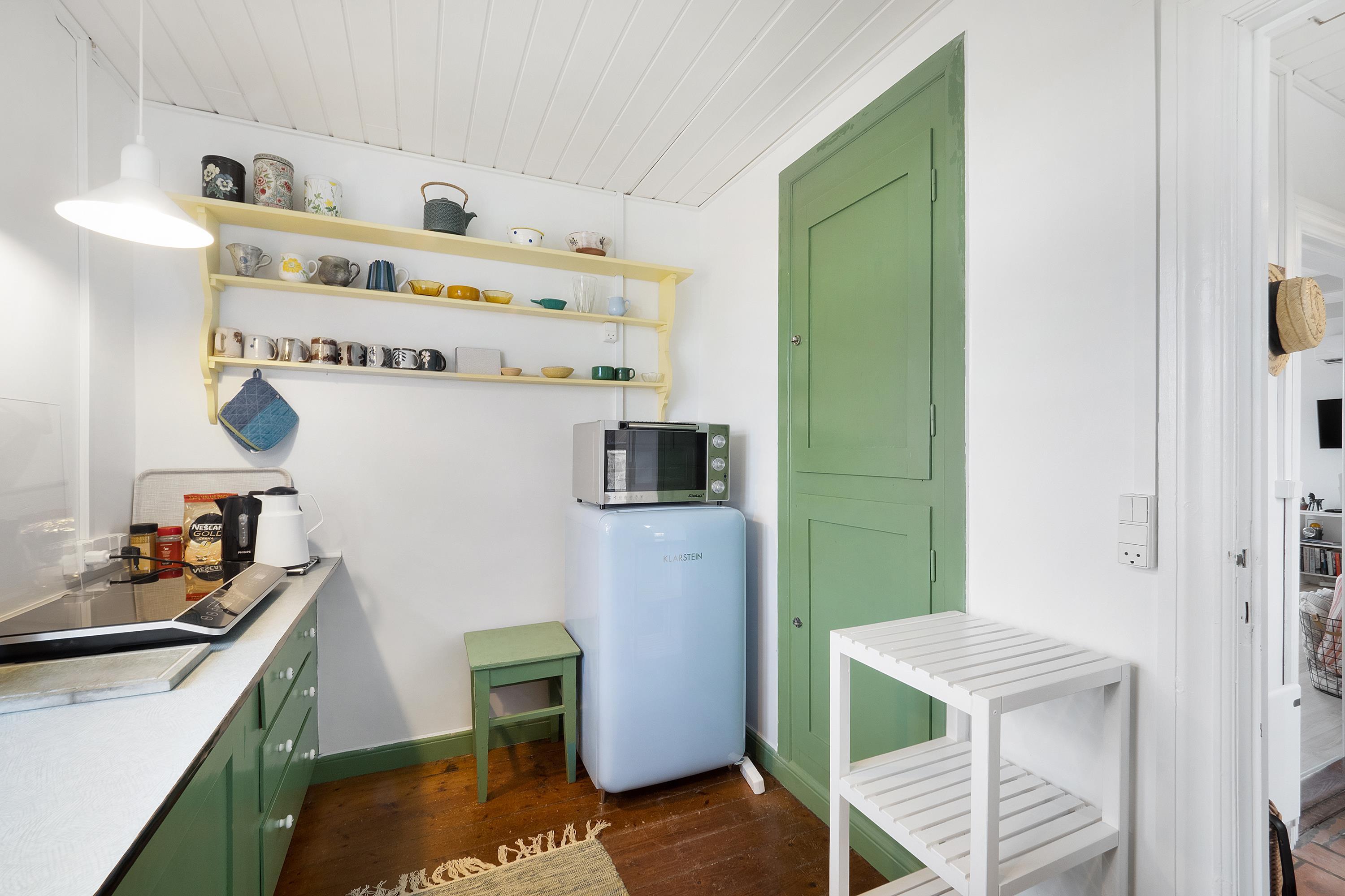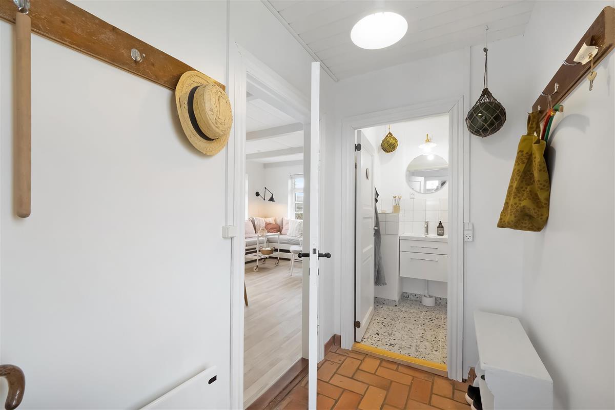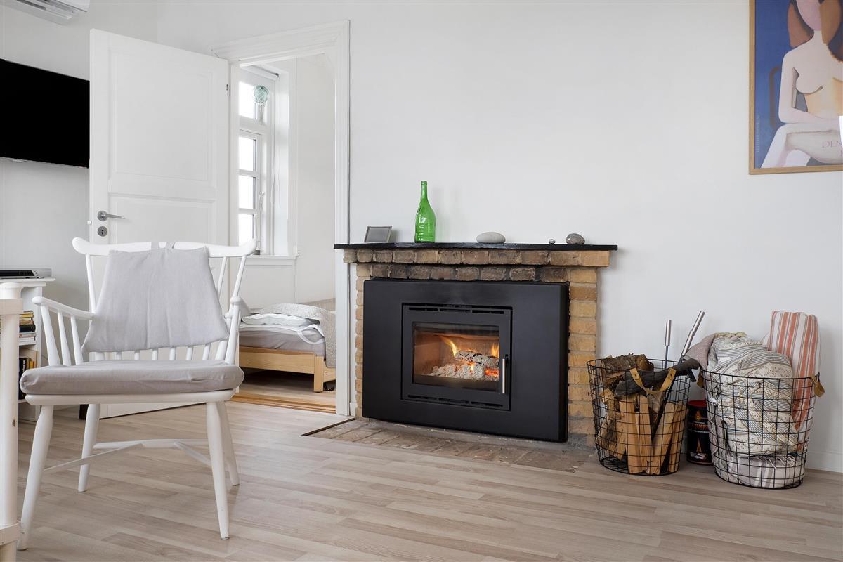 The entrance hall has space for a wardrobe and shoes. From the cosy, bright living room with a beautiful wood-burning stove and exposed ceiling beams, you have access to the lovely south-facing terrace. There is a bedroom with a good double bed and a beautiful new bathroom with shower.
