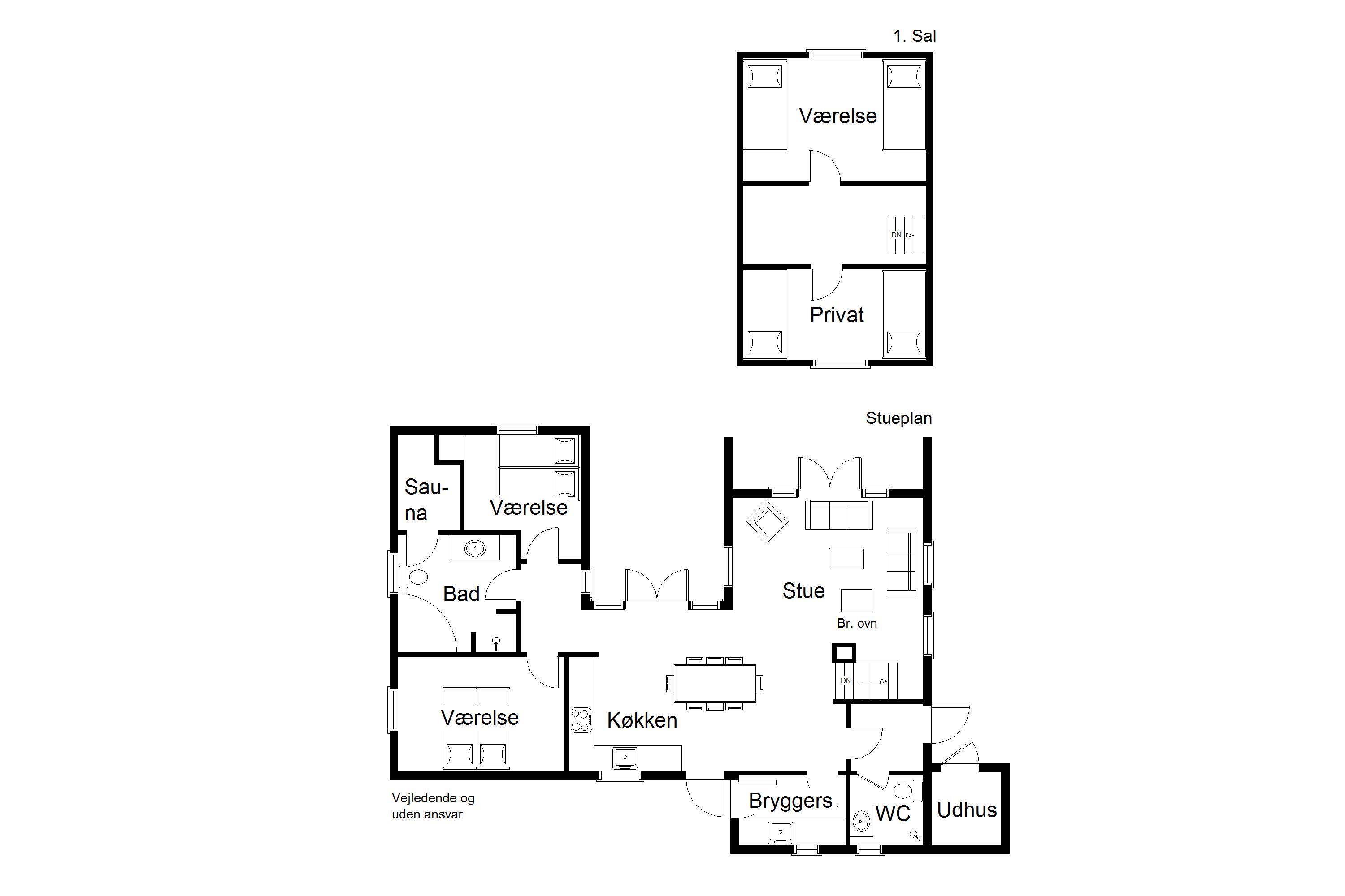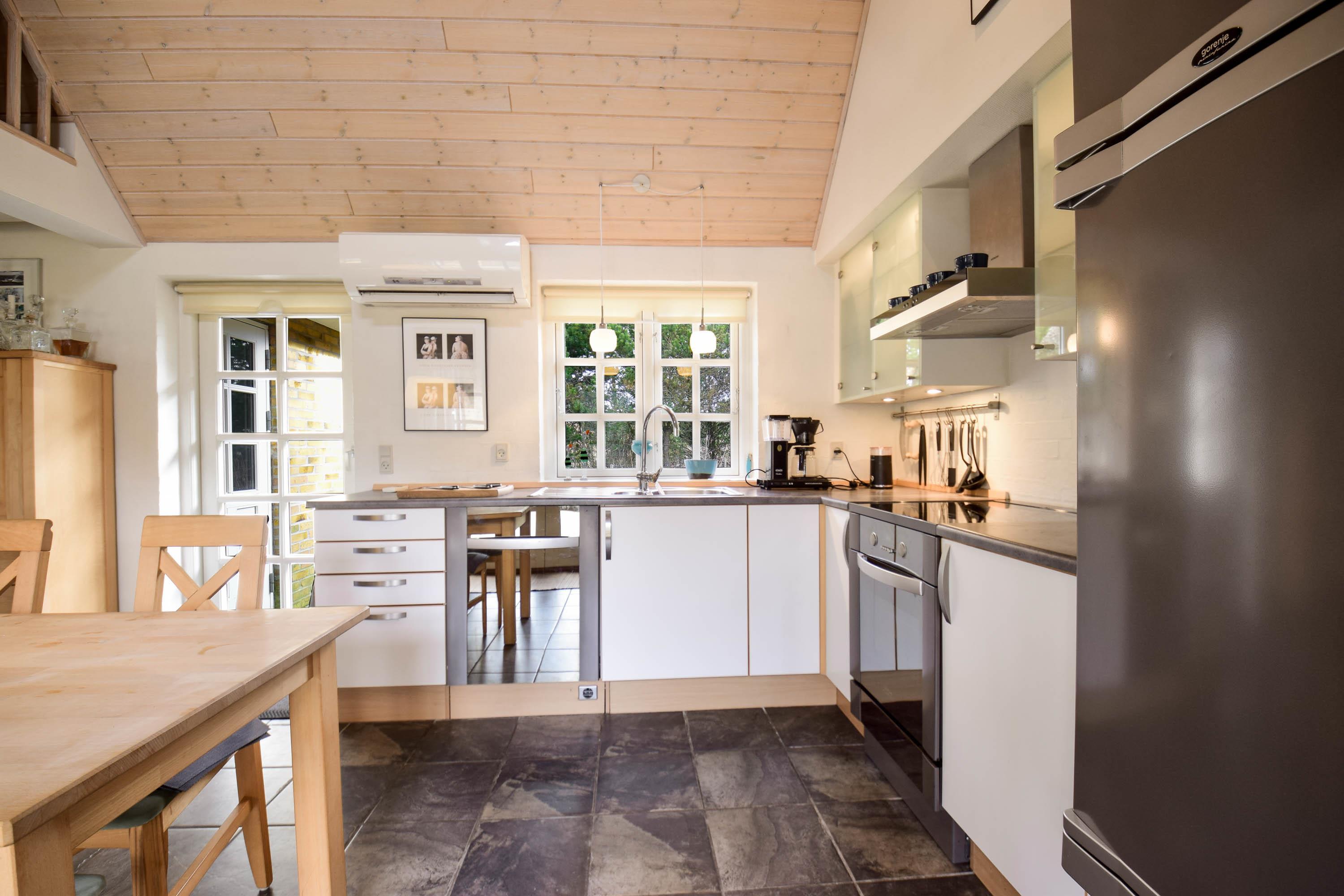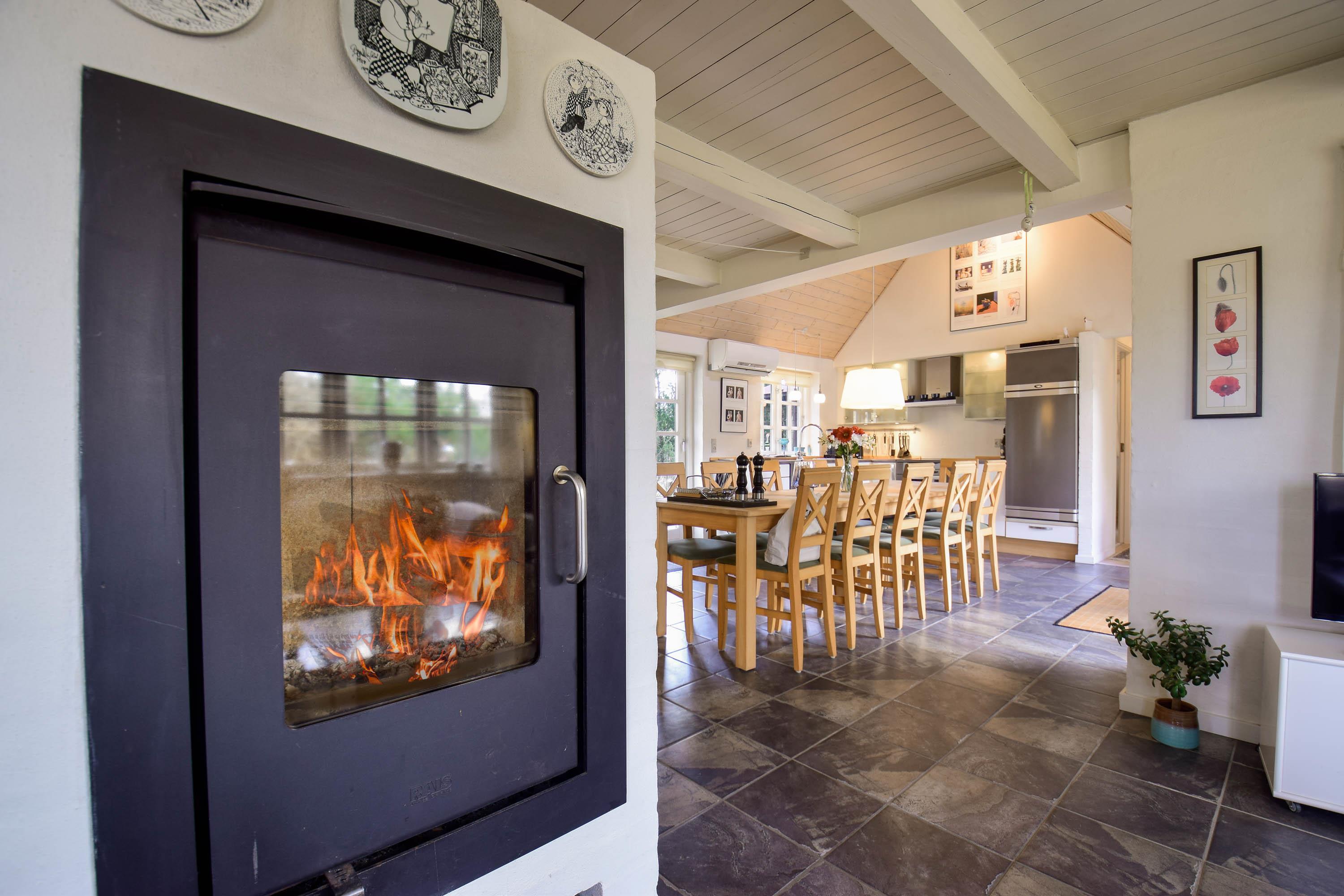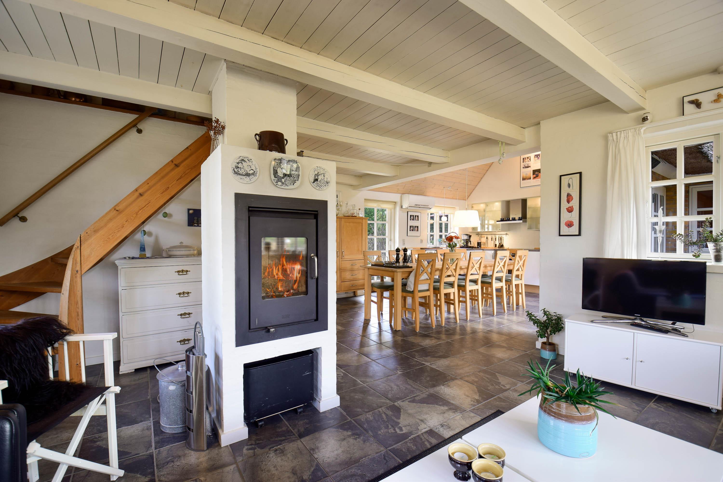 Layout: Entrance hallway with washing machine and tumble dryer. Beautiful, bright living room with integrated, modern kitchen, dining area and wood-burning stove. A total of 3 bedrooms, two with double bed on the ground floor and one with 2 single beds on the first floor.