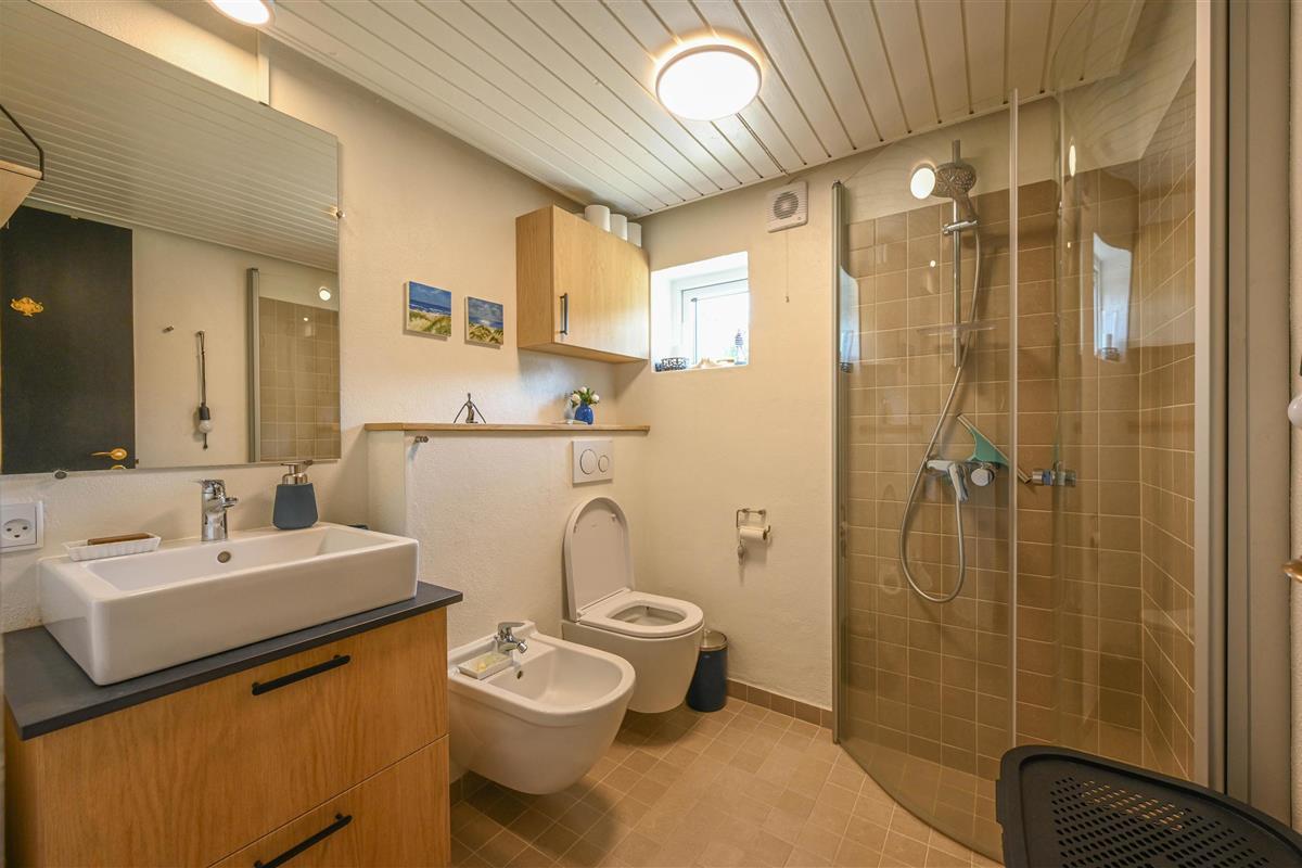 The holiday home presents itself as bright, modern, and lovingly decorated. The cozy kitchen with dining area is open to the living room, which invites you to relax with a sofa, armchairs, a wood-burning stove, and a TV - perfect after a walk by the sea. From the living room, you can directly access the south-facing terrace, where you can enjoy the sun from morning to evening.