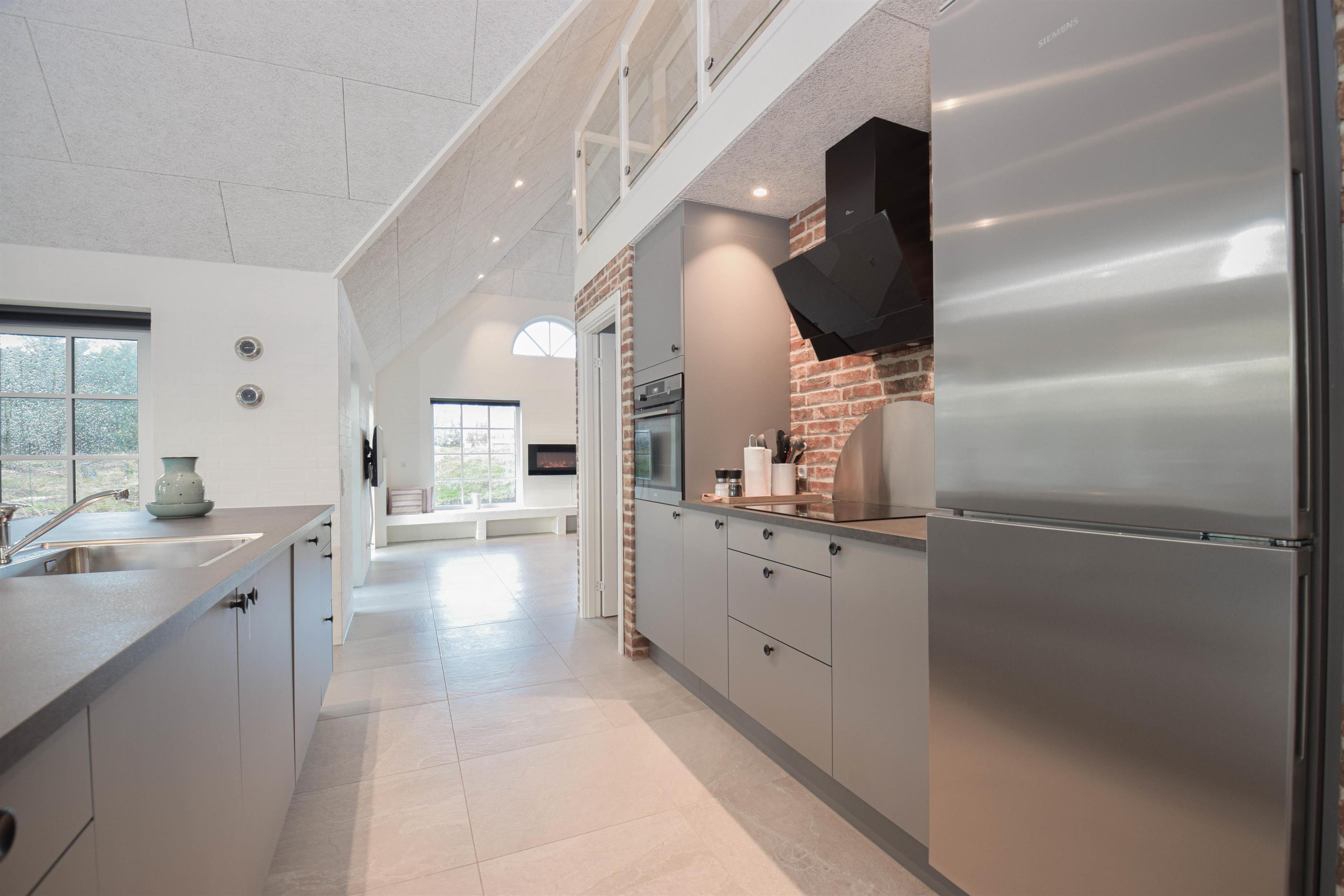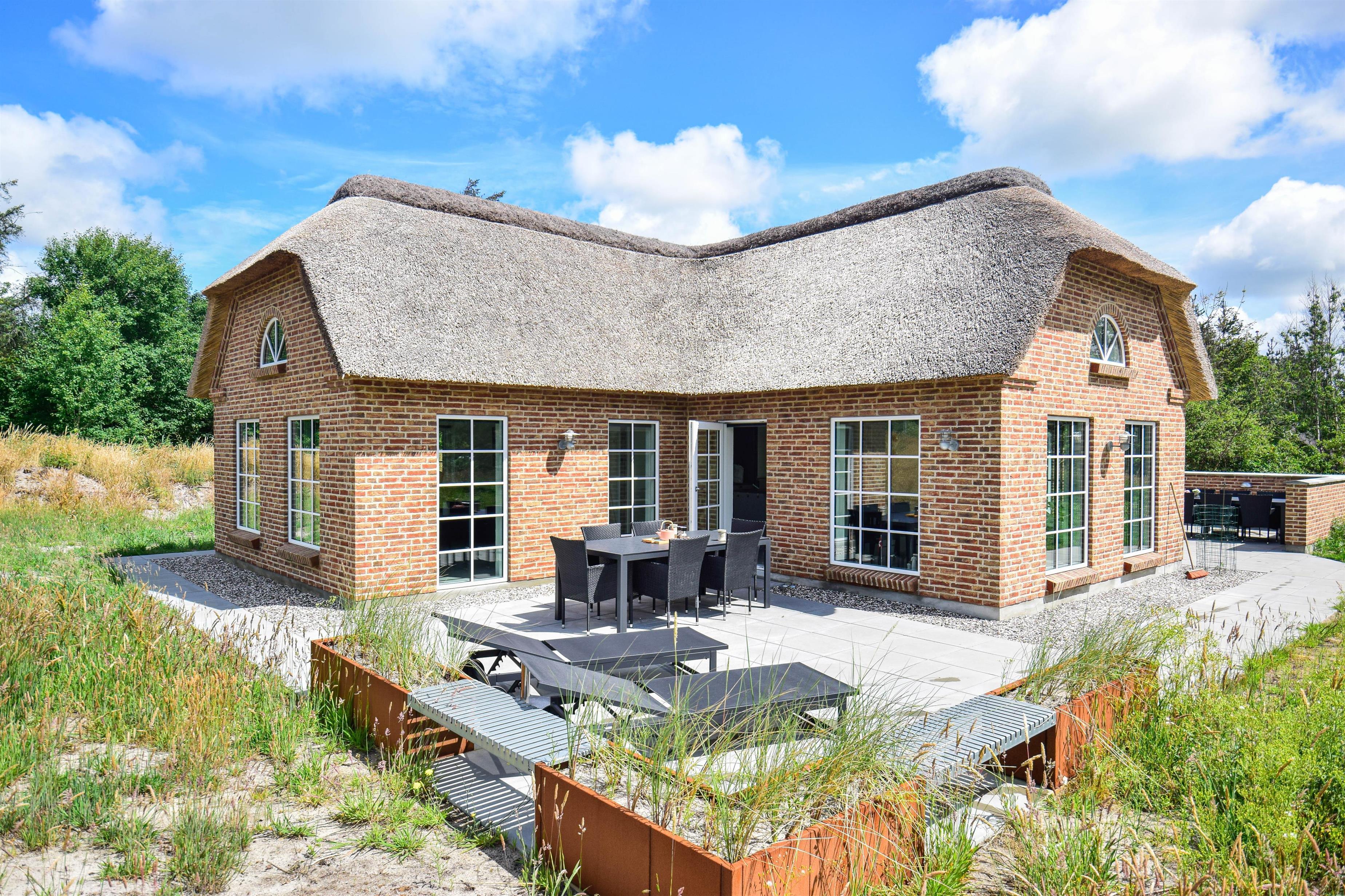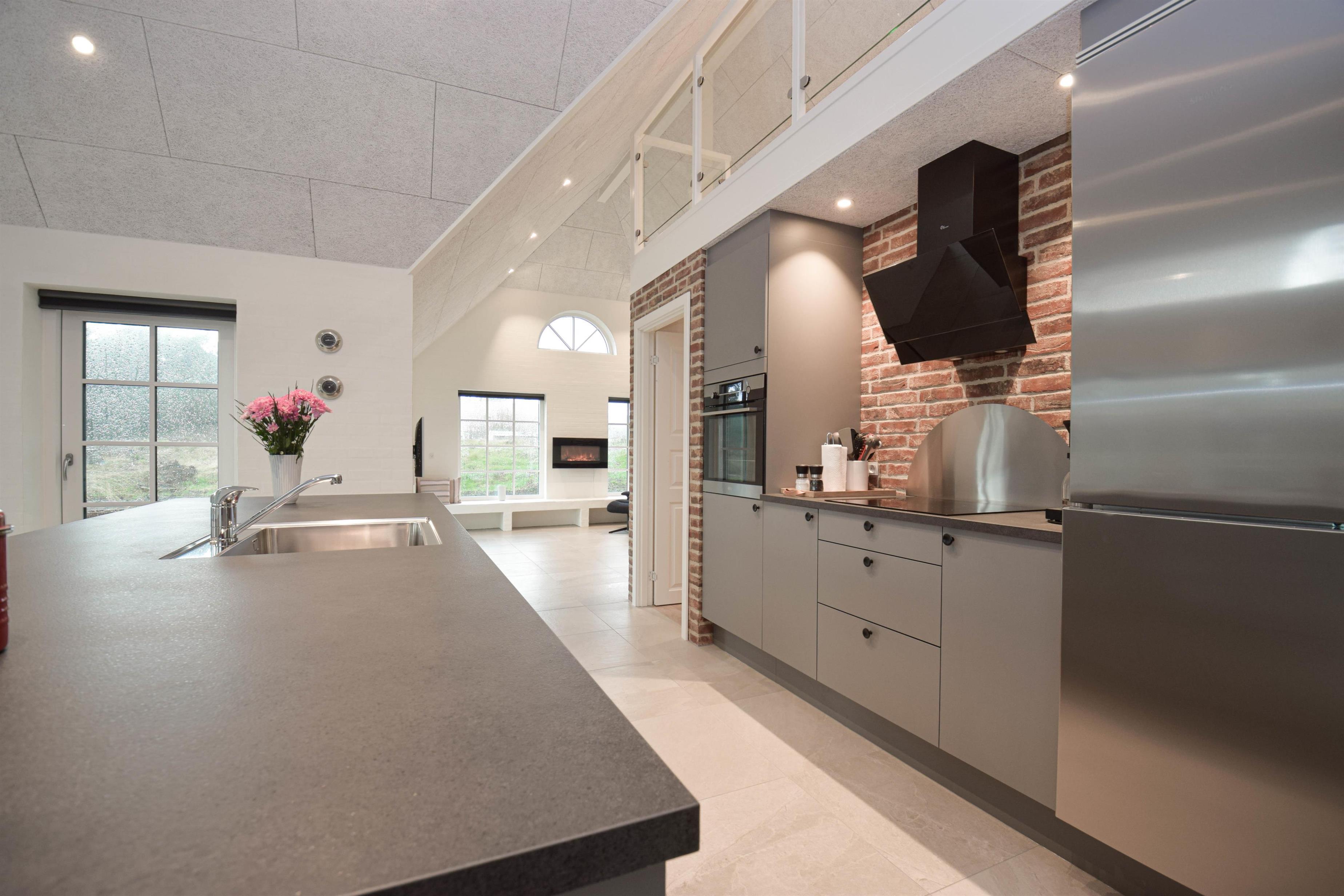 This house is a great mix of traditional and modern. Brushed steel and bricks - fantastic kitchen with free-standing kitchen block. Hot tub under the starry sky, sauna, panoramic windows and marvellous terraces with brick windbreak ...