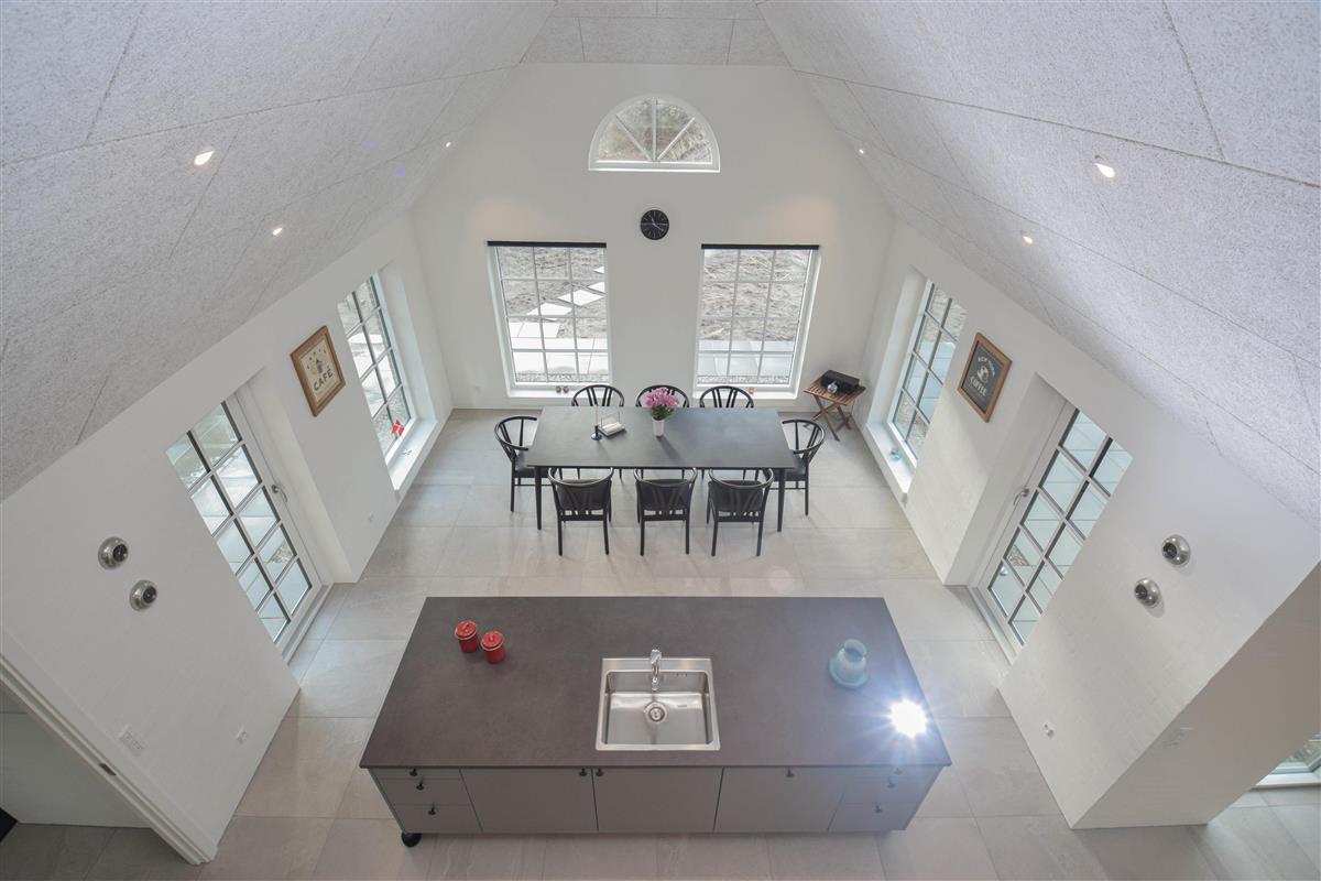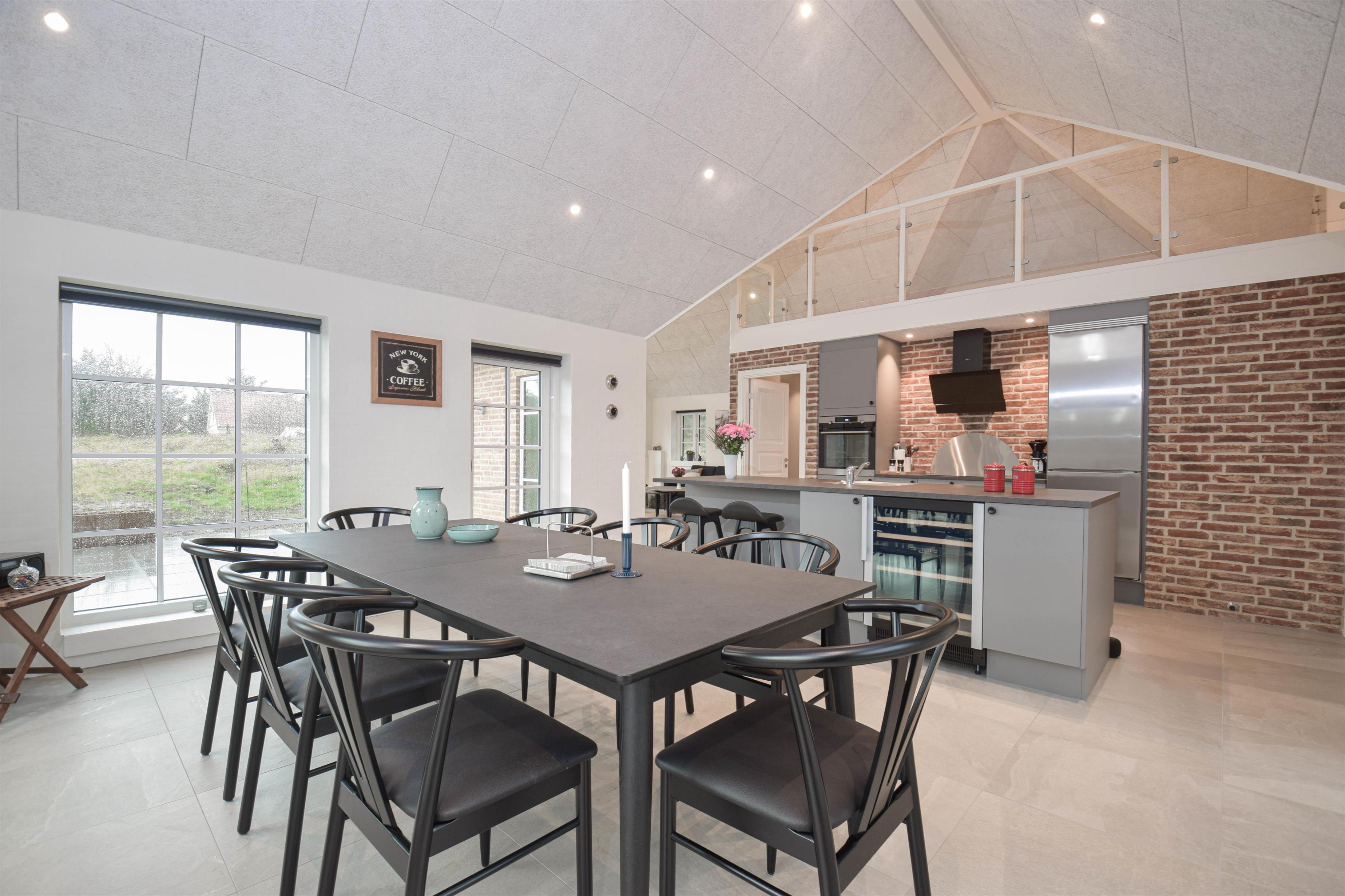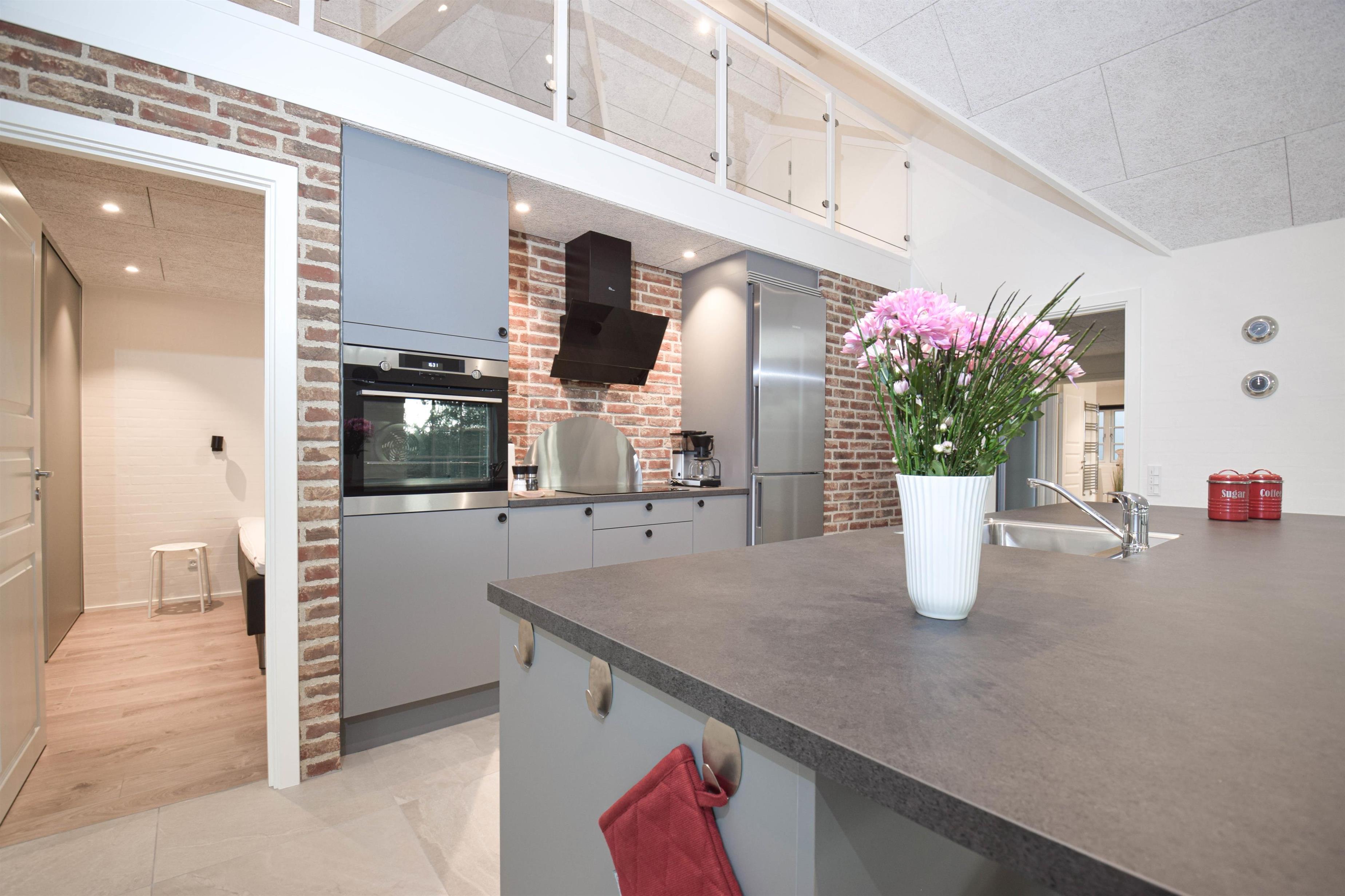 This house is a great mix of traditional and modern. Brushed steel and bricks - fantastic kitchen with free-standing kitchen block. Hot tub under the starry sky, sauna, panoramic windows and marvellous terraces with brick windbreak ...