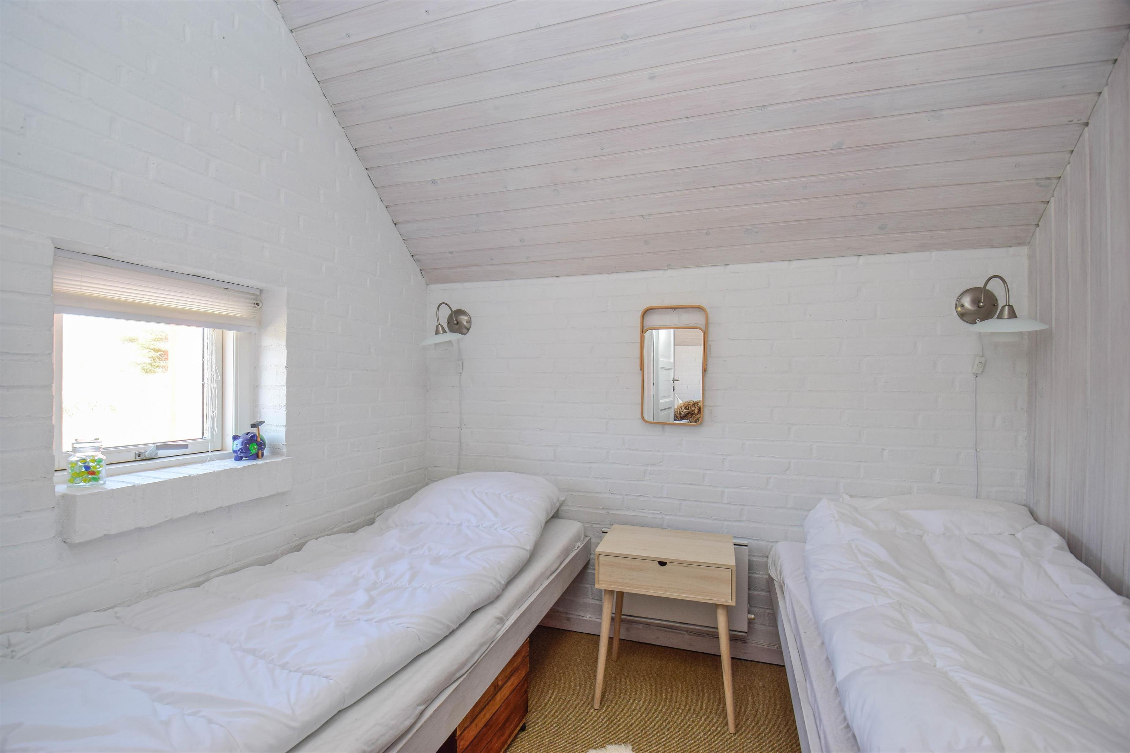 - Bedroom with two single beds (170 cm long).