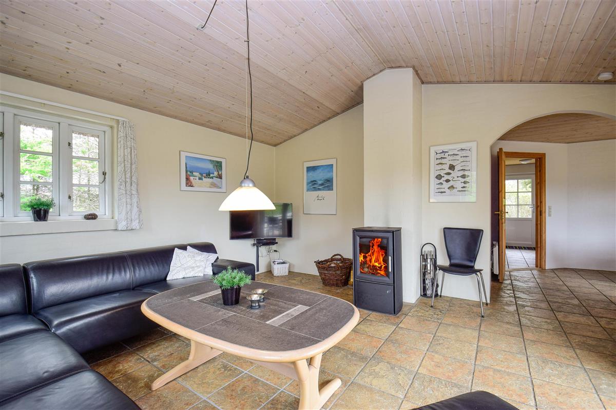 - Tastefully and cosily furnished living room with wood-burning stove, which creates a warm and cosy atmosphere on cooler evenings.