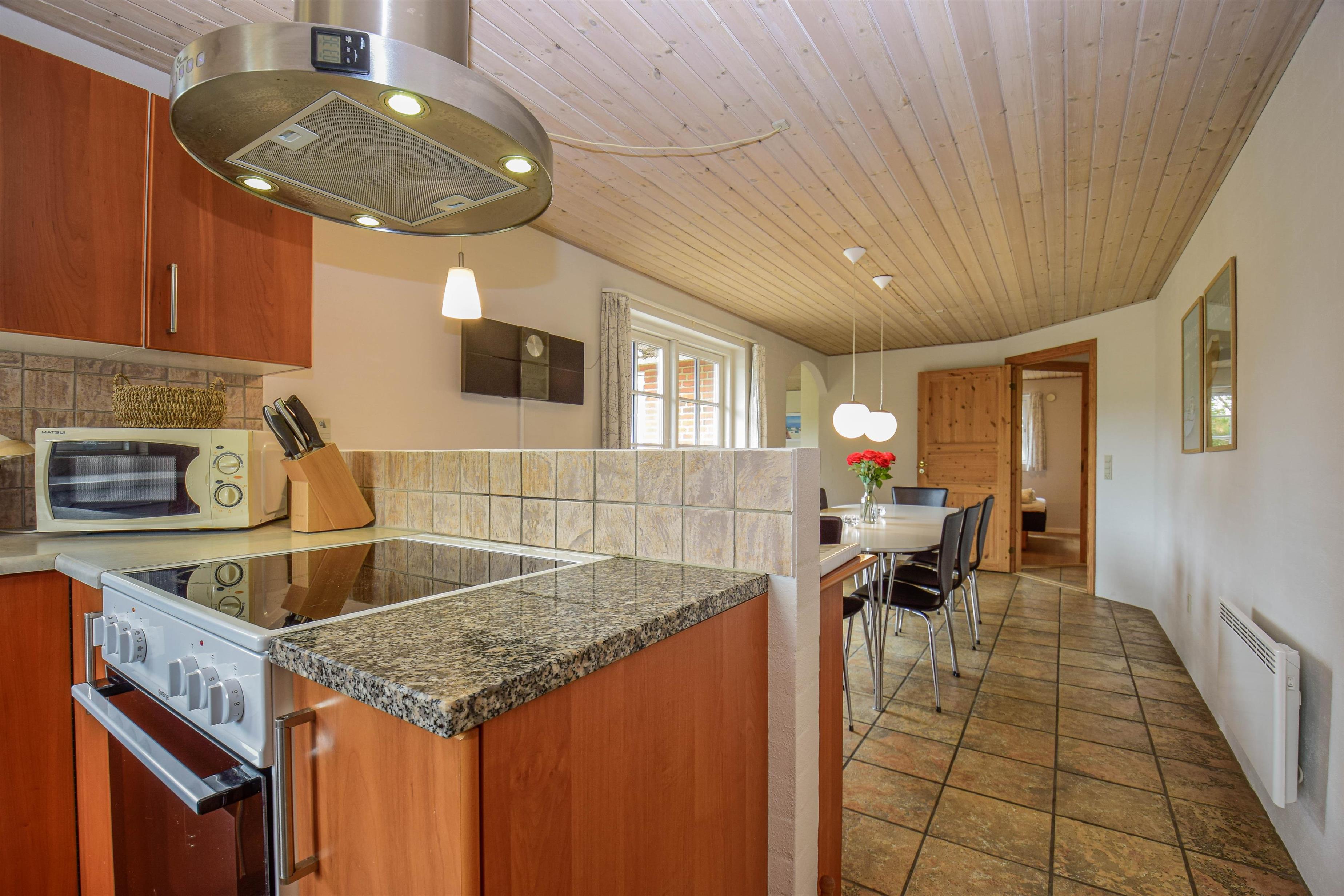 The high-quality house with 100 square metres of living space offers stylish and well thought-out furnishings. Walls in pleasantly muted colours characterise the light and inviting atmosphere. The living rooms have warm wooden floors, while the high-quality kitchen area with dining corner is laid with easy-care tiles.