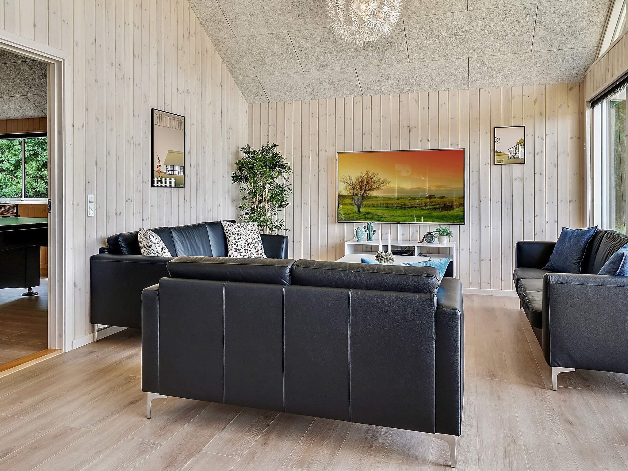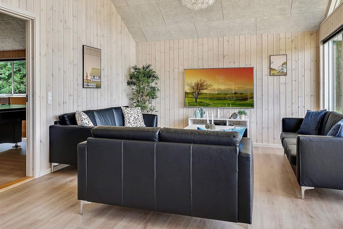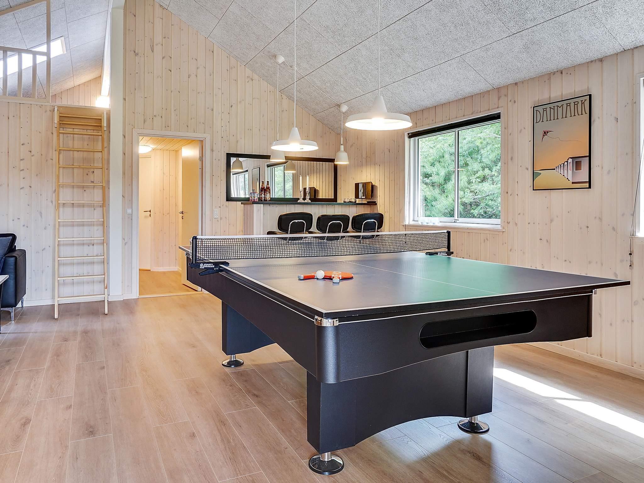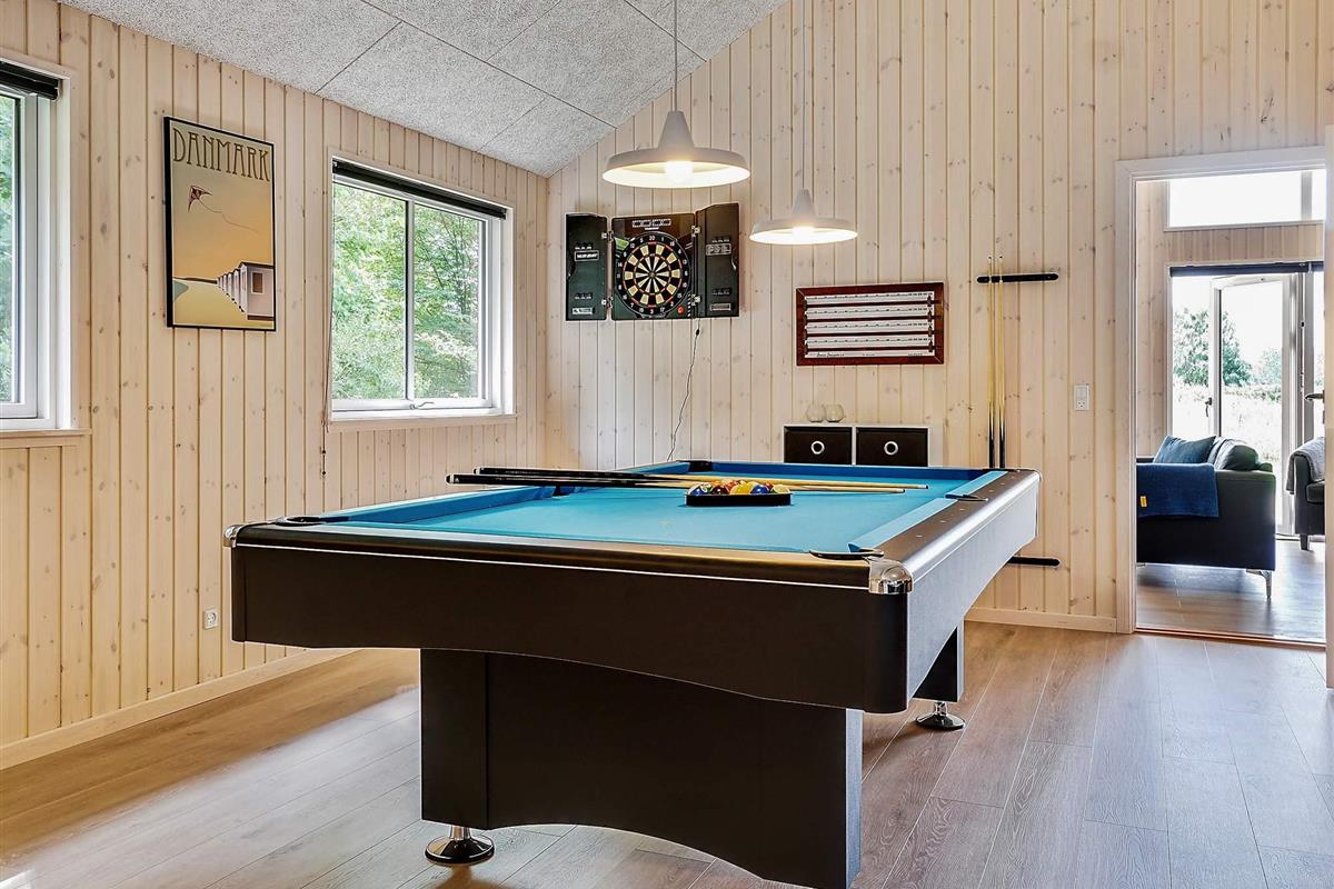 Auf der anderen Seite des zentral platzierten Küchen-Ess-Wohnbereichs befindet sich der Aktivitätsraum, in dem Sie sich bei Dart, Poolbillard, Tischtennis oder am Kicker herausfordern können. Auch eine Stereoanlage, PlayStation5 (Spiele sind mitzubringen) und ein Flachbildschirm mit Viasat-Empfang sind hier vorhanden.
