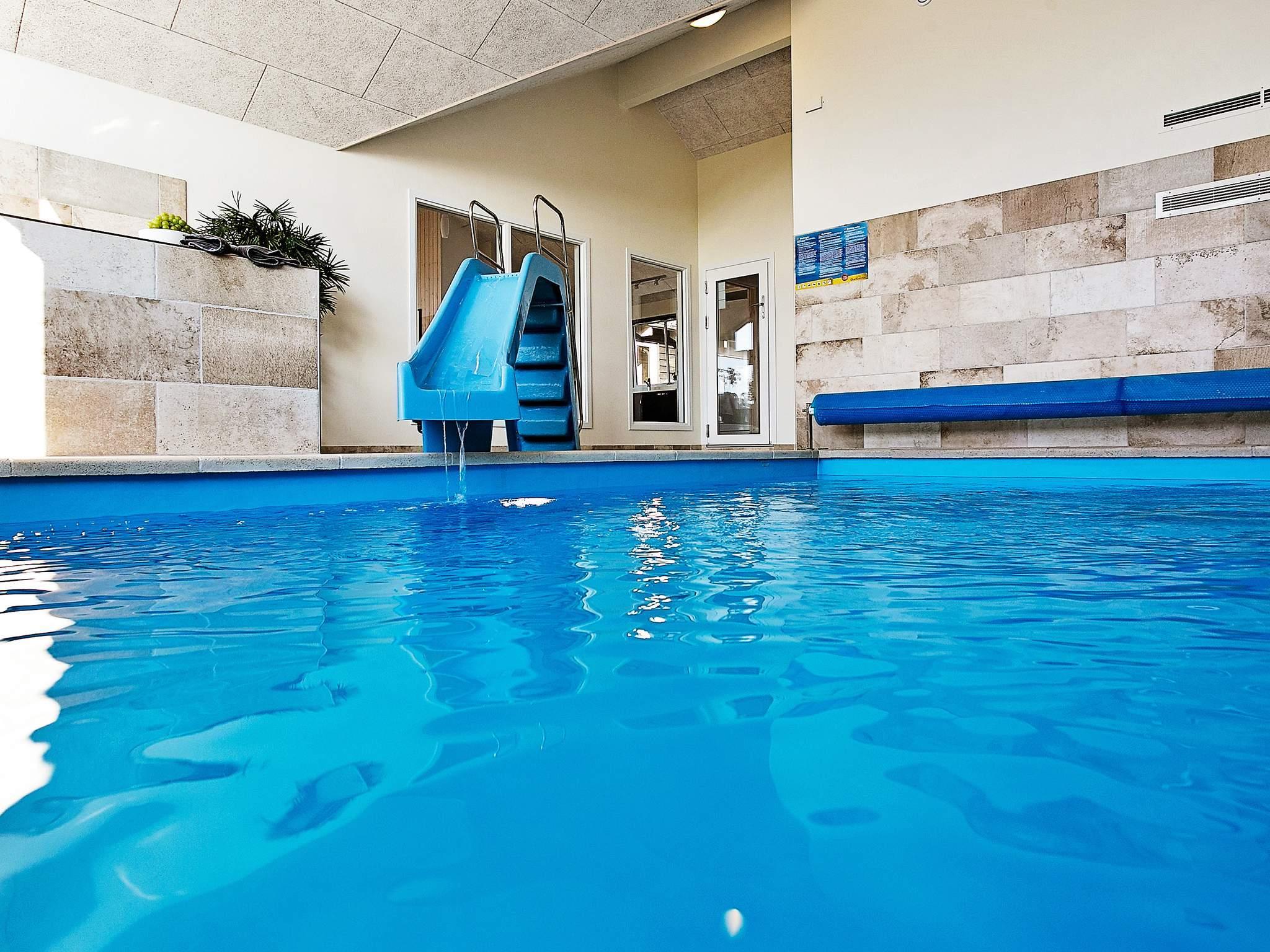 Wasserrutsche für Kinder und Gegenstromanlage für aktive Schwimmer.