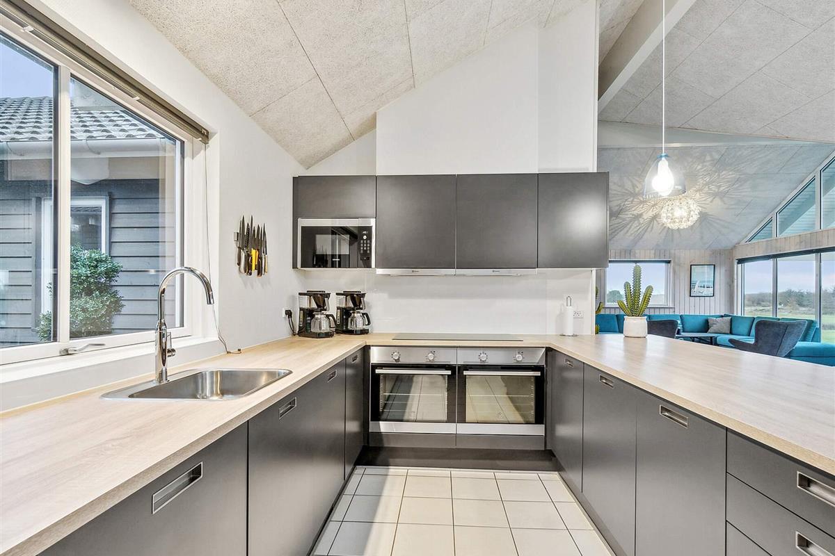 Es gibt zwei Schlafbereiche mit je einem Badezimmer und einen Hems, der sicherlich sofort von den Kindern eingenommen wird. Im Küchen-Ess-Wohnbereich können sich alle versammeln, gemütlich plaudern, kochen und die Mahlzeiten einnehmen. Die Einrichtung ist geschmackvoll und komfortabel. Ein Holzofen verbreitet bei Bedarf wohlige Wärme.