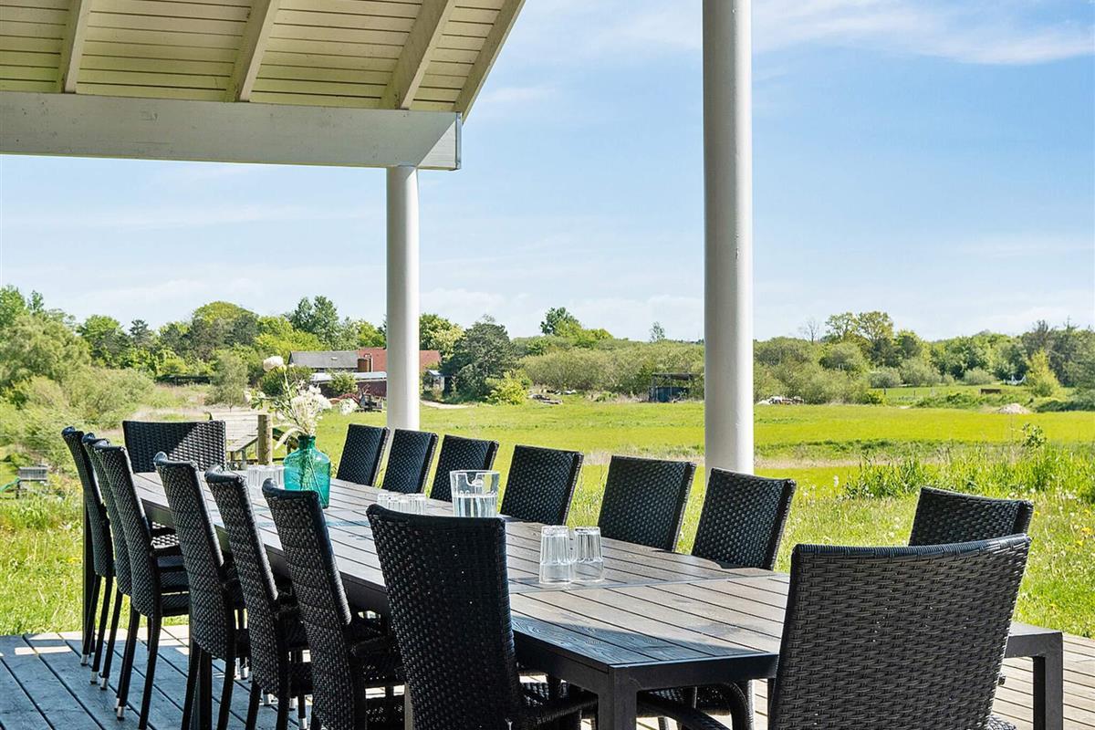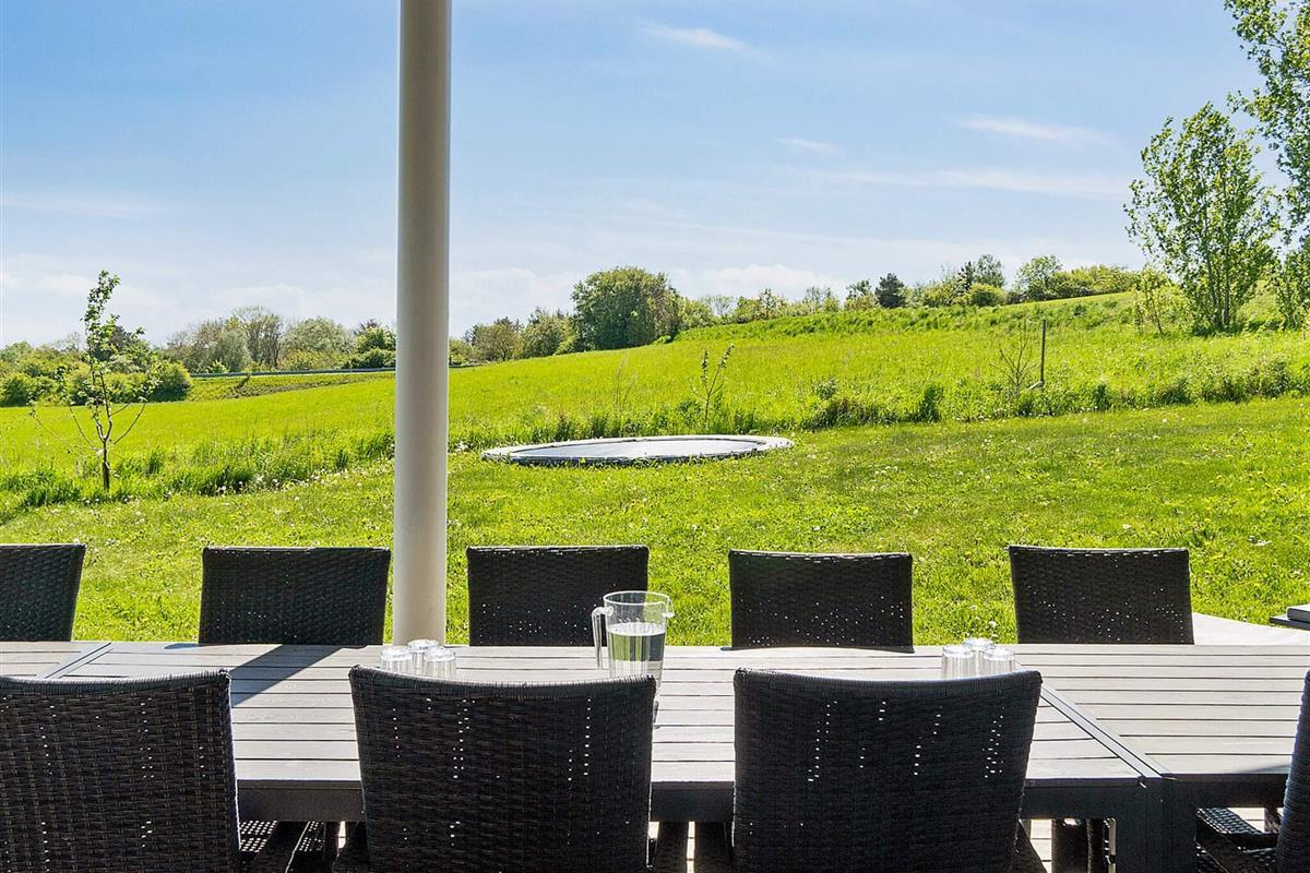 Draußen auf der großen, teilweise überdachten Terrasse lassen sich die Sommertage in den Gartenmöbeln genießen. Auf dem großen Grundstück wurden Schaukel und Sandkasten für die Kinder aufgestellt.