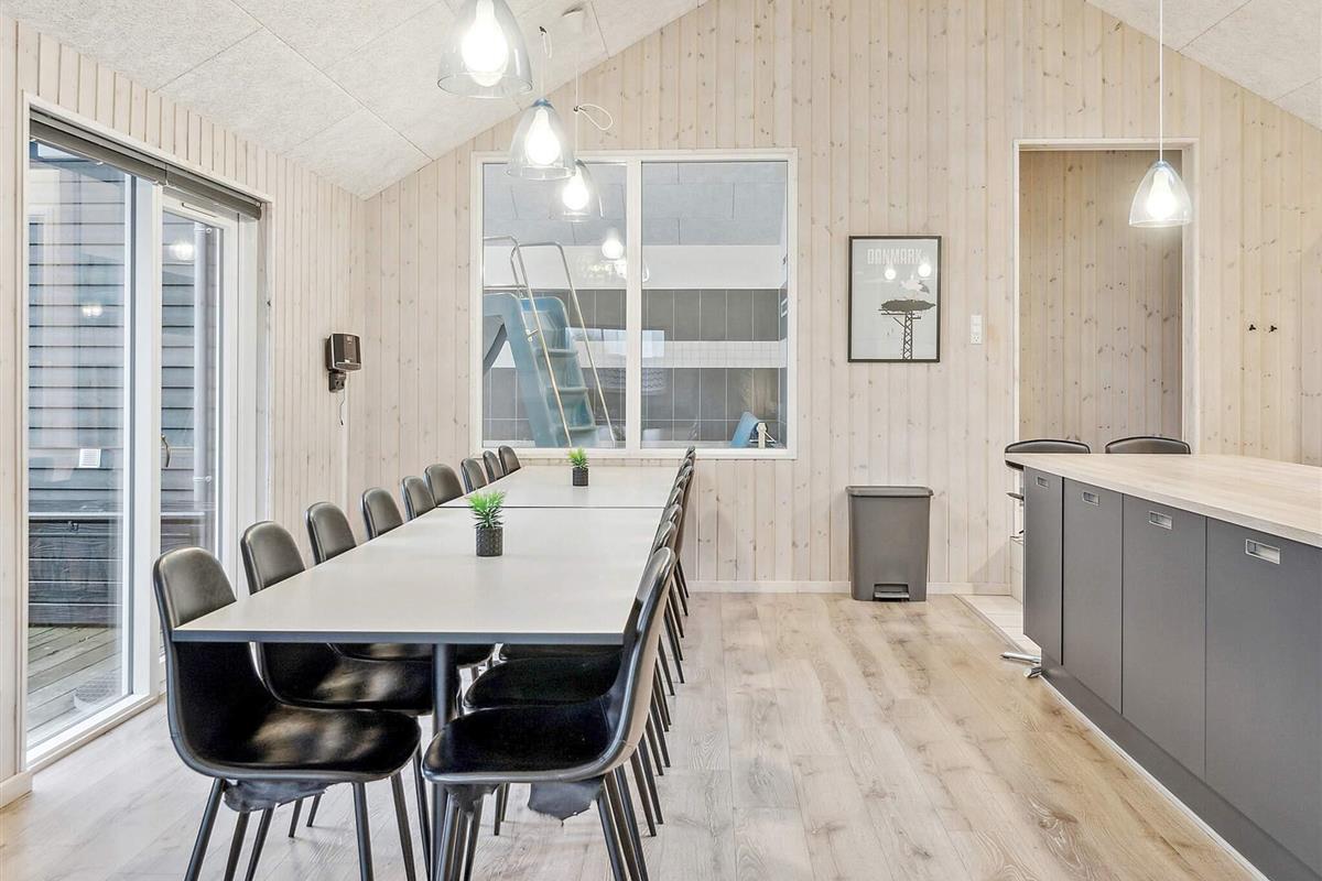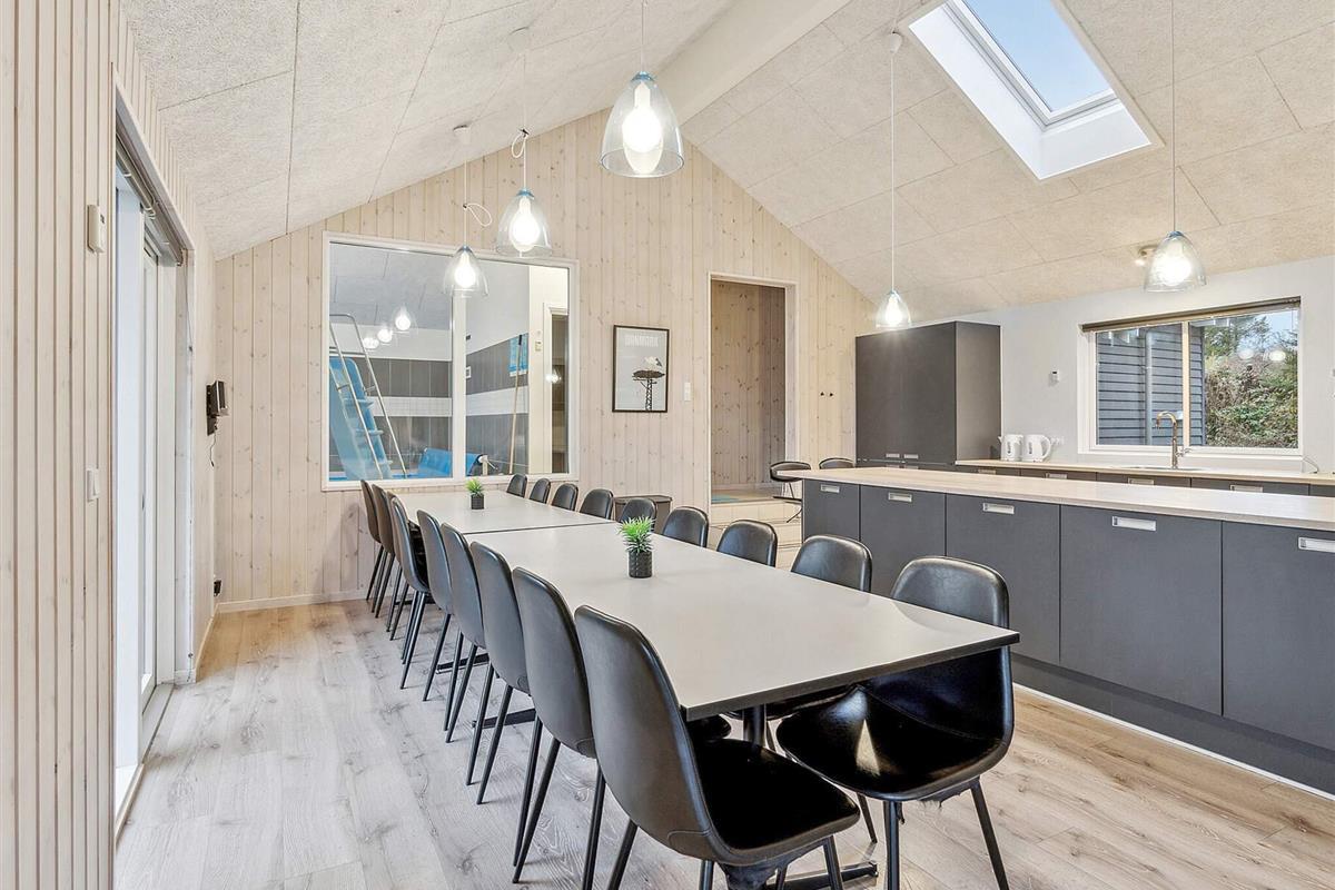 Neben dem Wohnzimmer liegt der Aktivitätsraum, in dem Sie beispielsweise Dart, Poolbillard und Kicker spielen oder es sich im Sofa vor dem Flachbildschirm gemütlich machen können. Stufen vom Eingang zur Küche.