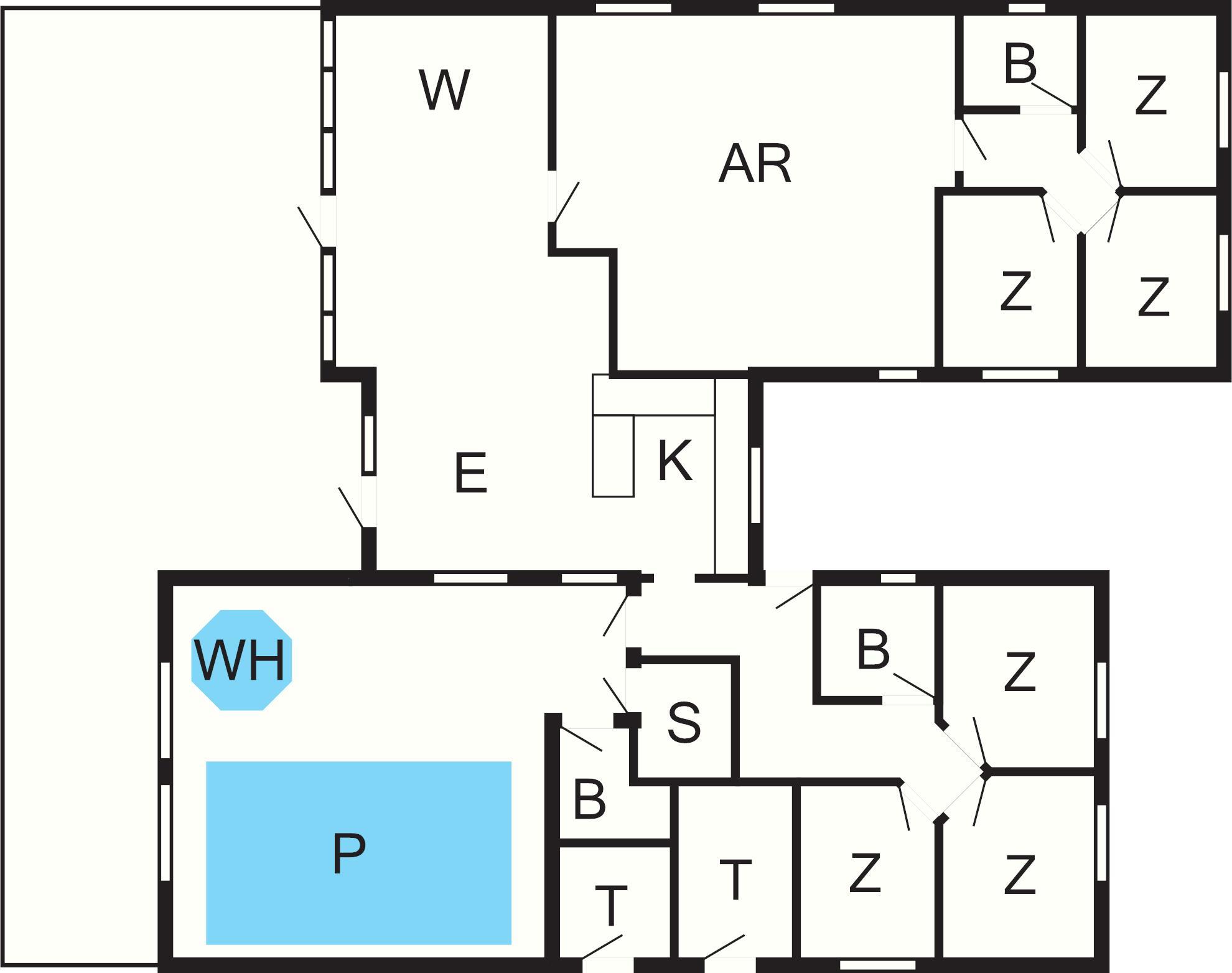 Poolbereich, wo auch die Sauna zugänglich ist. Die Schlafzimmer sind mit