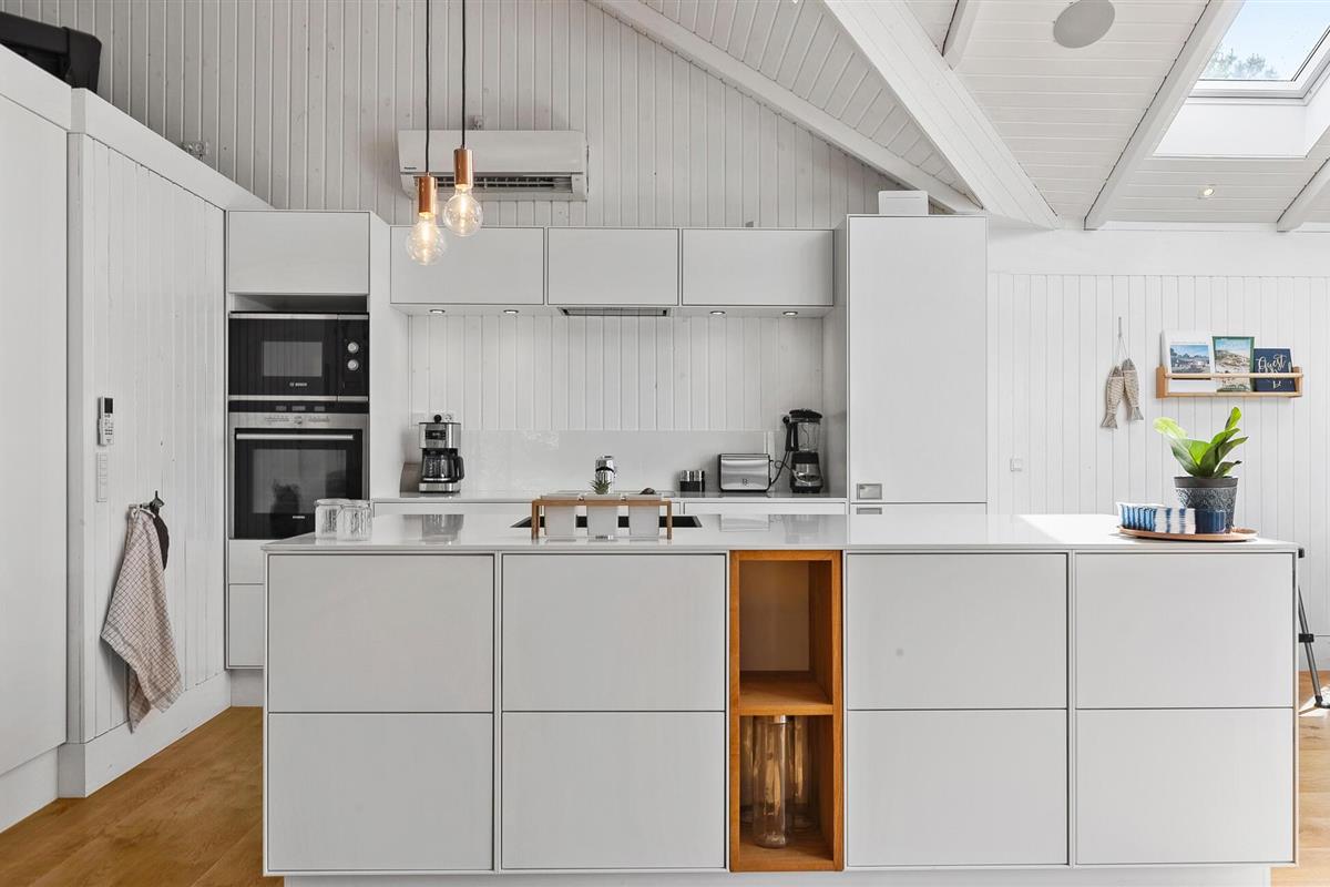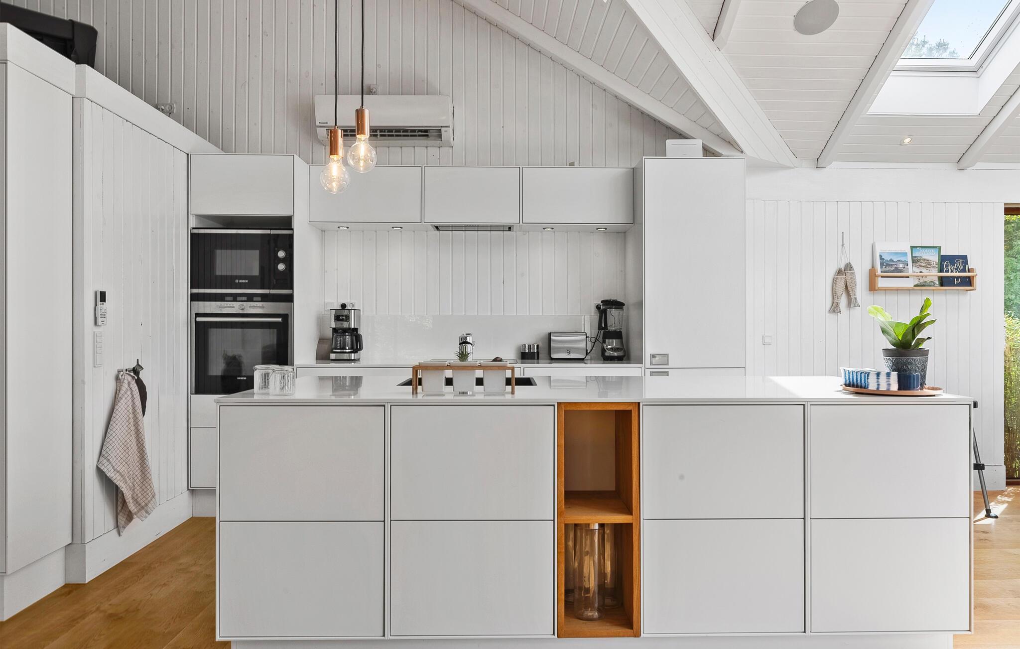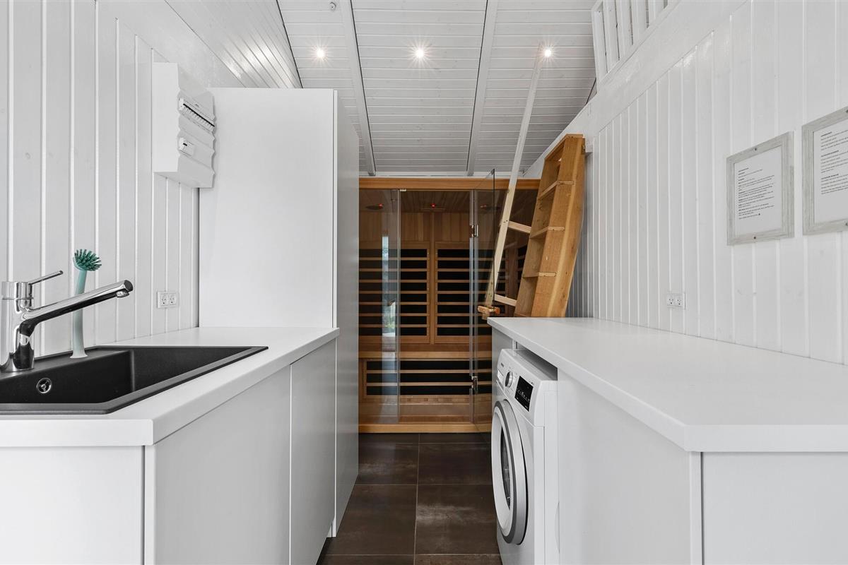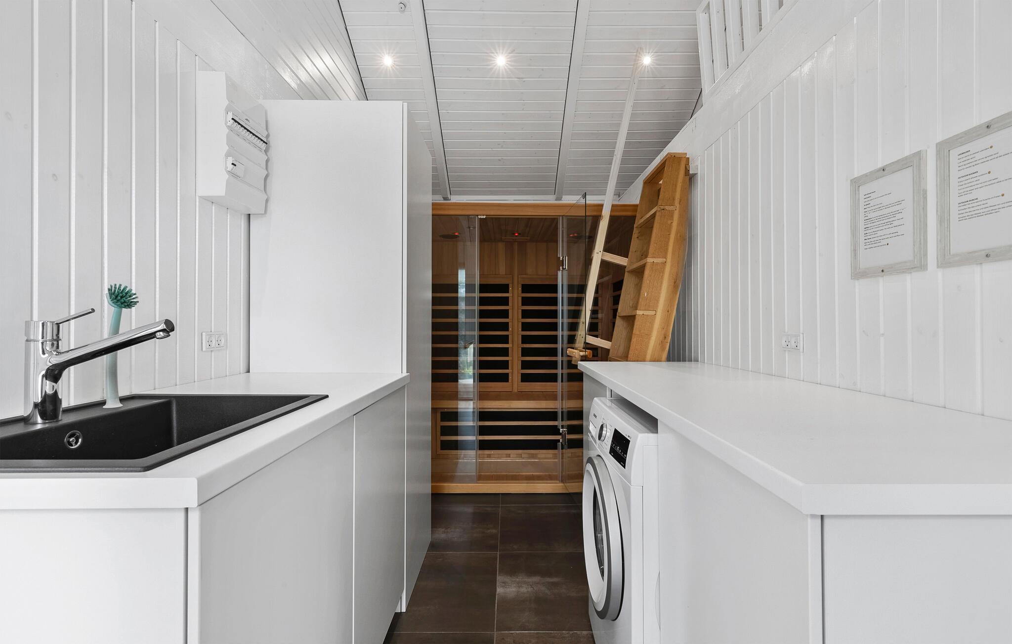 In dit moderne vakantiehuis kun je een lichte, open sfeer verwachten met meubilair van hoge kwaliteit en veel ruimte om je thuis te voelen. Breng je tijd door in de smaakvol ingerichte woonkamer met houtkachel, grote zithoek en directe toegang tot het terras. Speel een potje tafelvoetbal of minitafeltennis en gebruik de moderne keuken met kookeiland om samen te koken. De aangrenzende eethoek met dakramen wordt overspoeld met licht. Trakteer jezelf op ontspannende uren in de whirlpool en sauna.